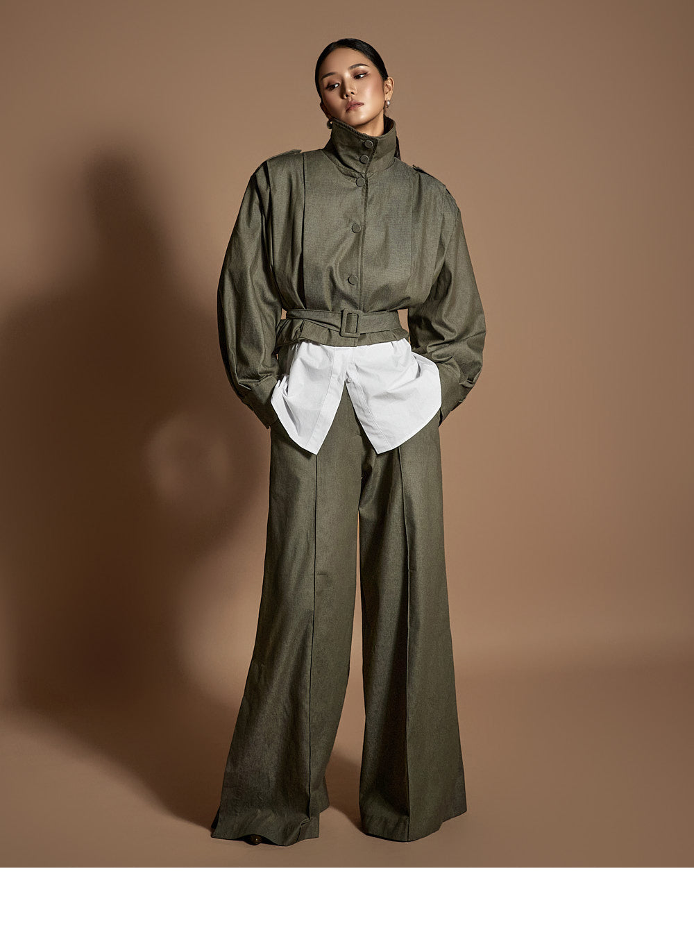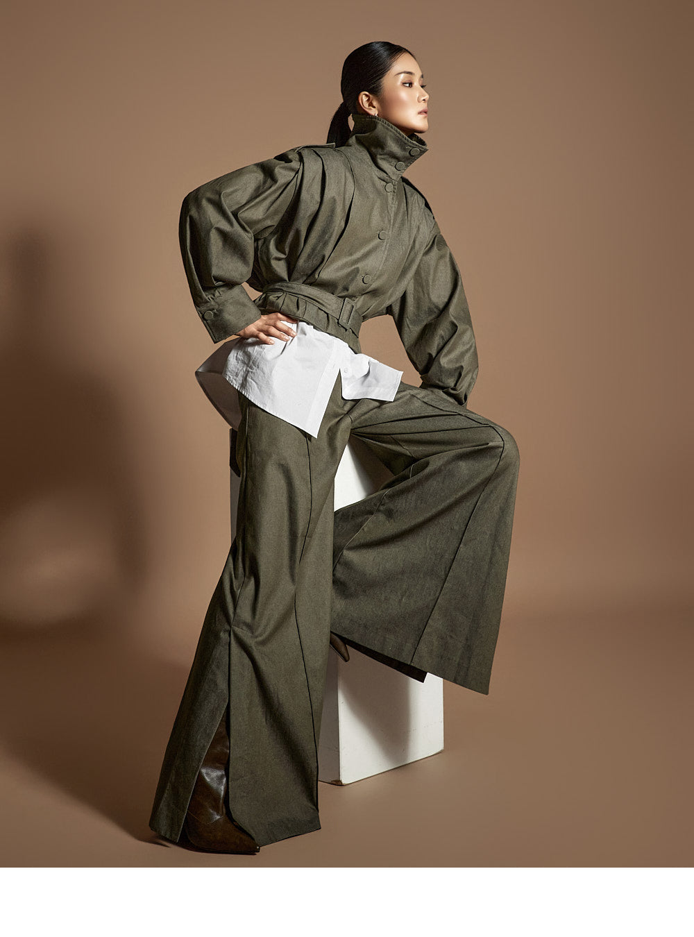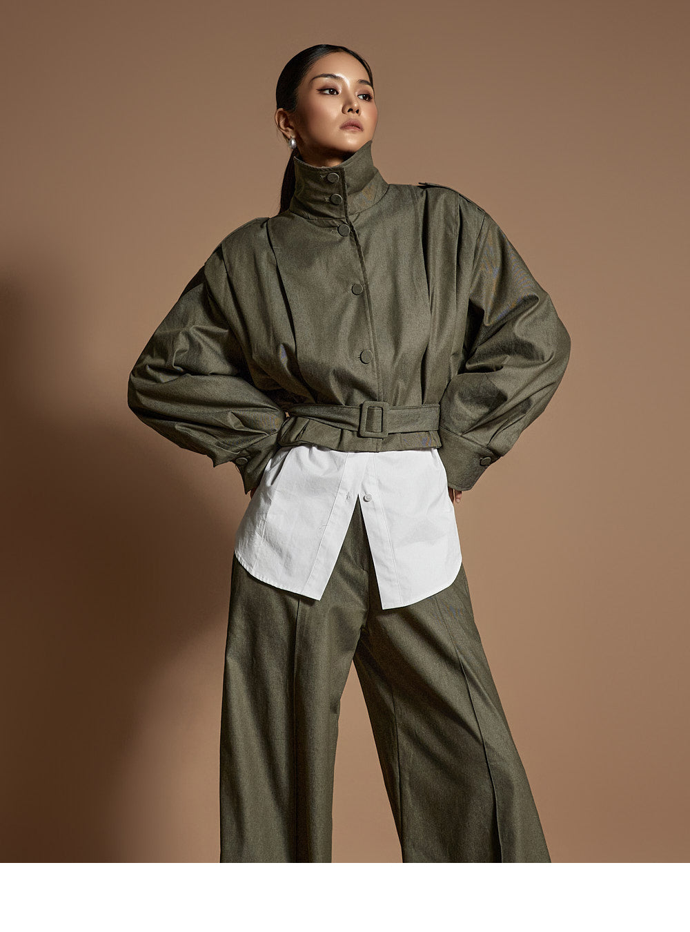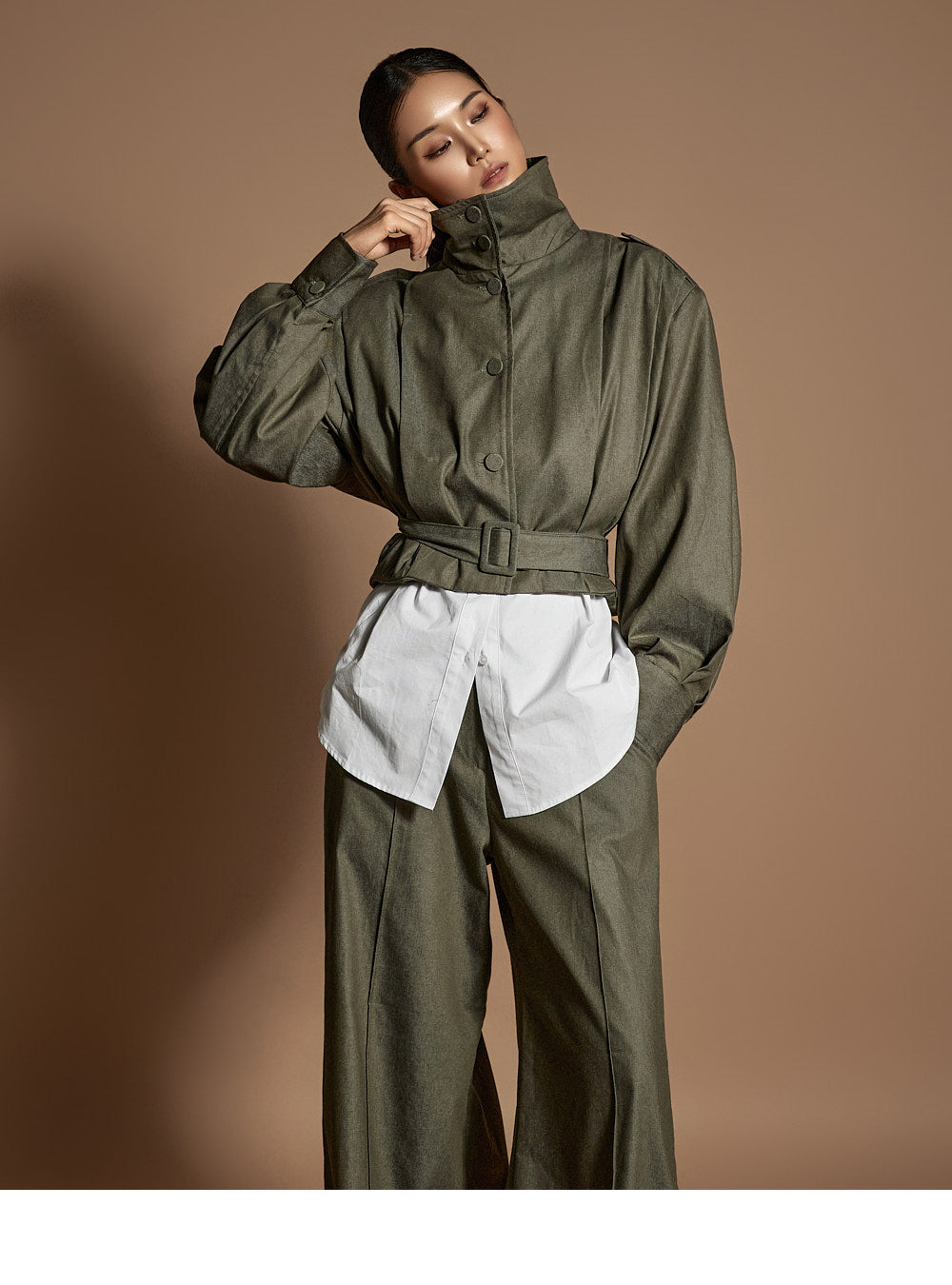 Model height: 173cm, wearing ONE SIZE in khaki.
