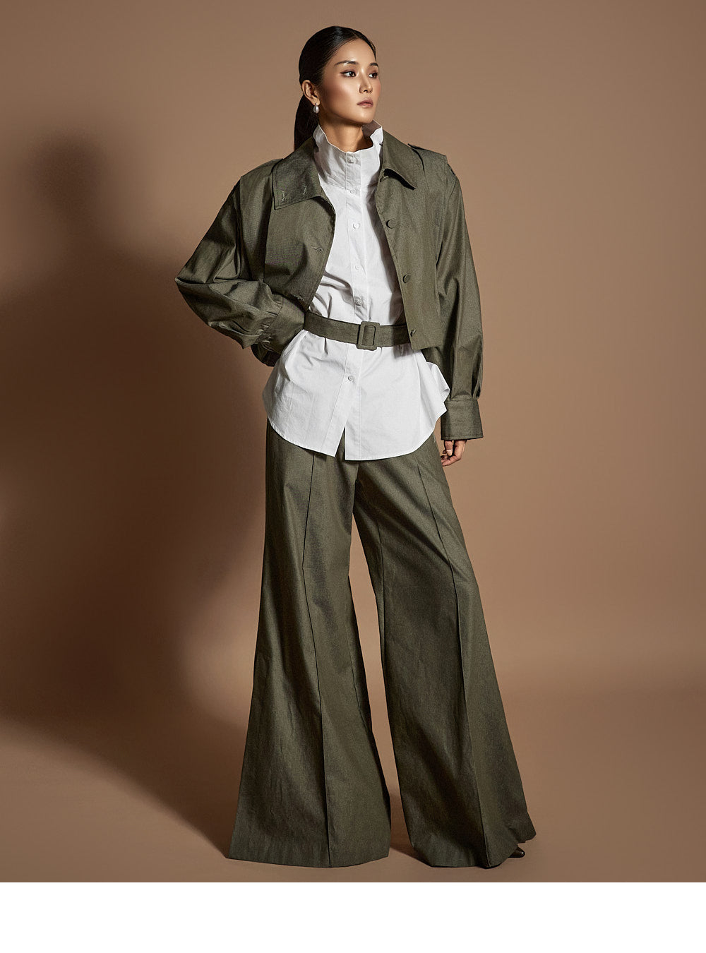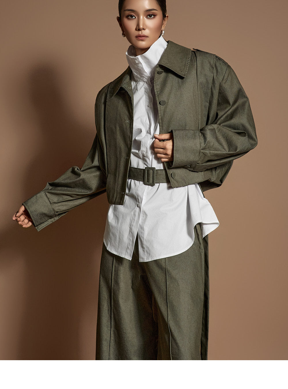 The cropped design with front and back pleat details