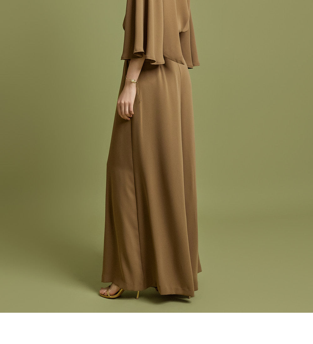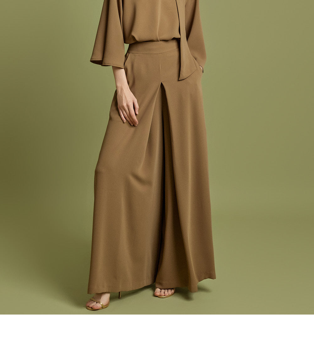 This sophisticated blouse and slacks set is crafted from polyester,