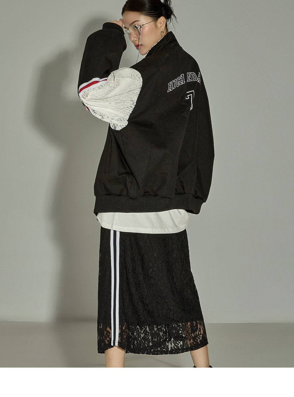 has a loose-fitting silhouette that creates a comfortable yet stylish look.