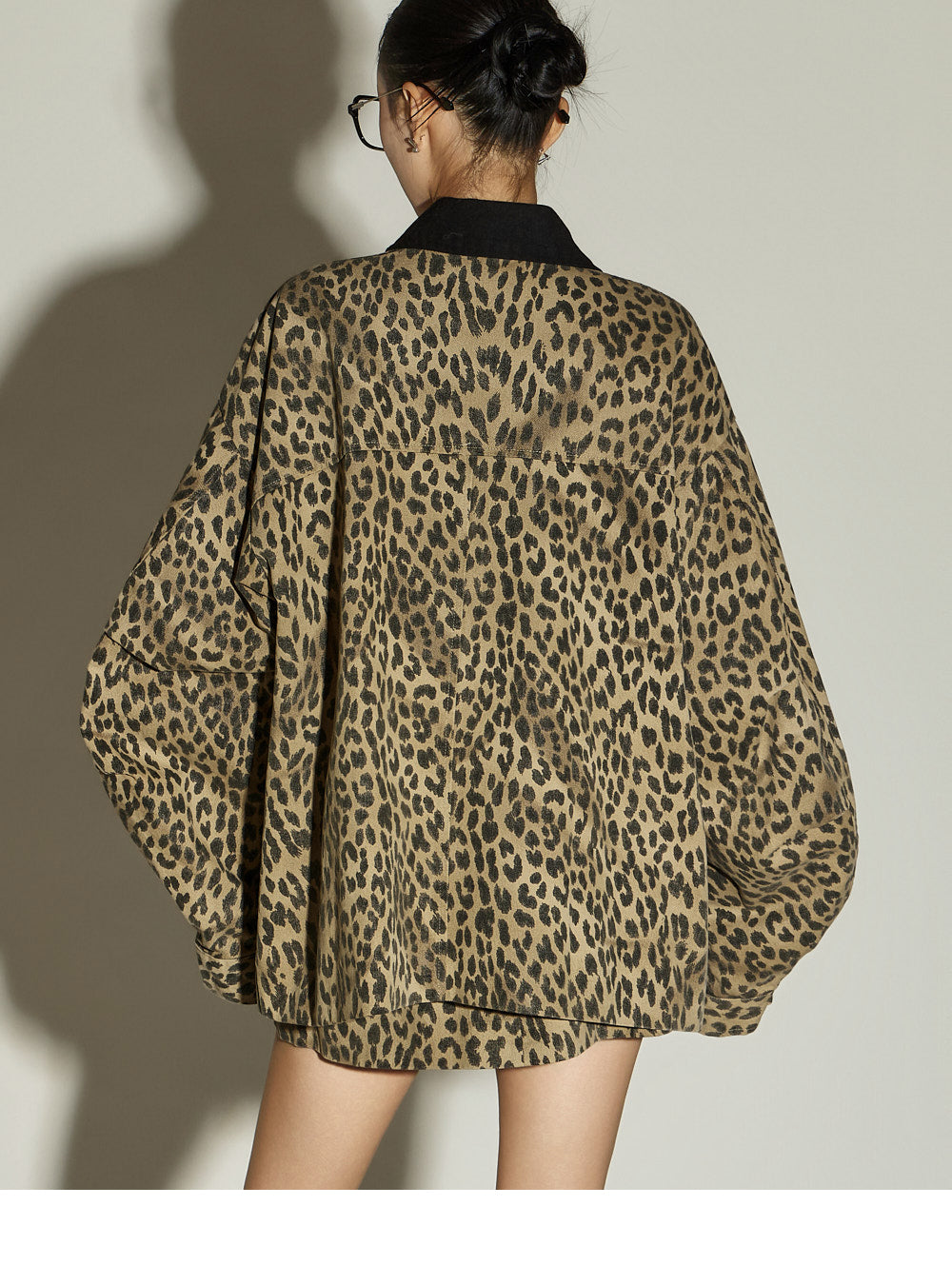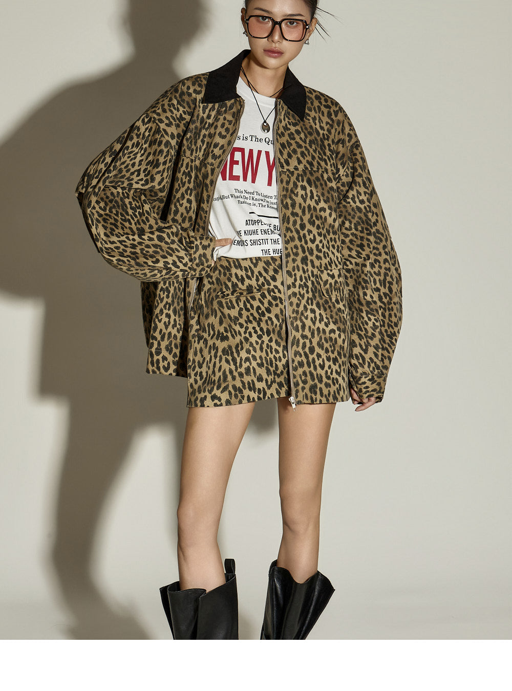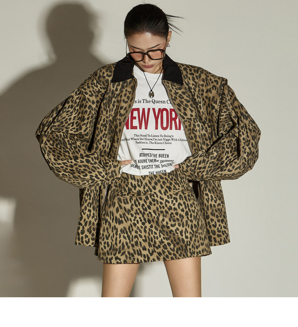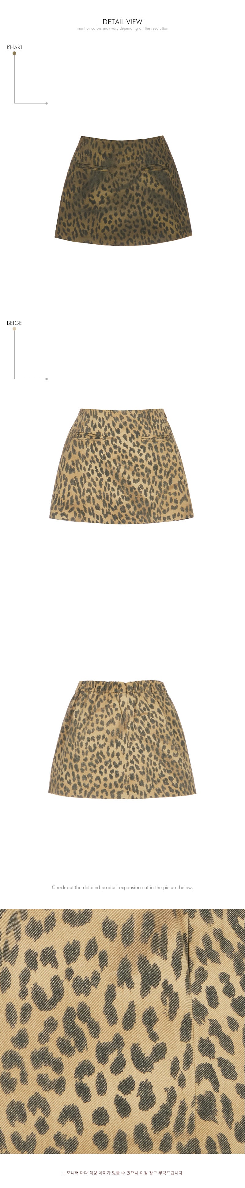 The skirt is a mini-length with a leopard print pattern,