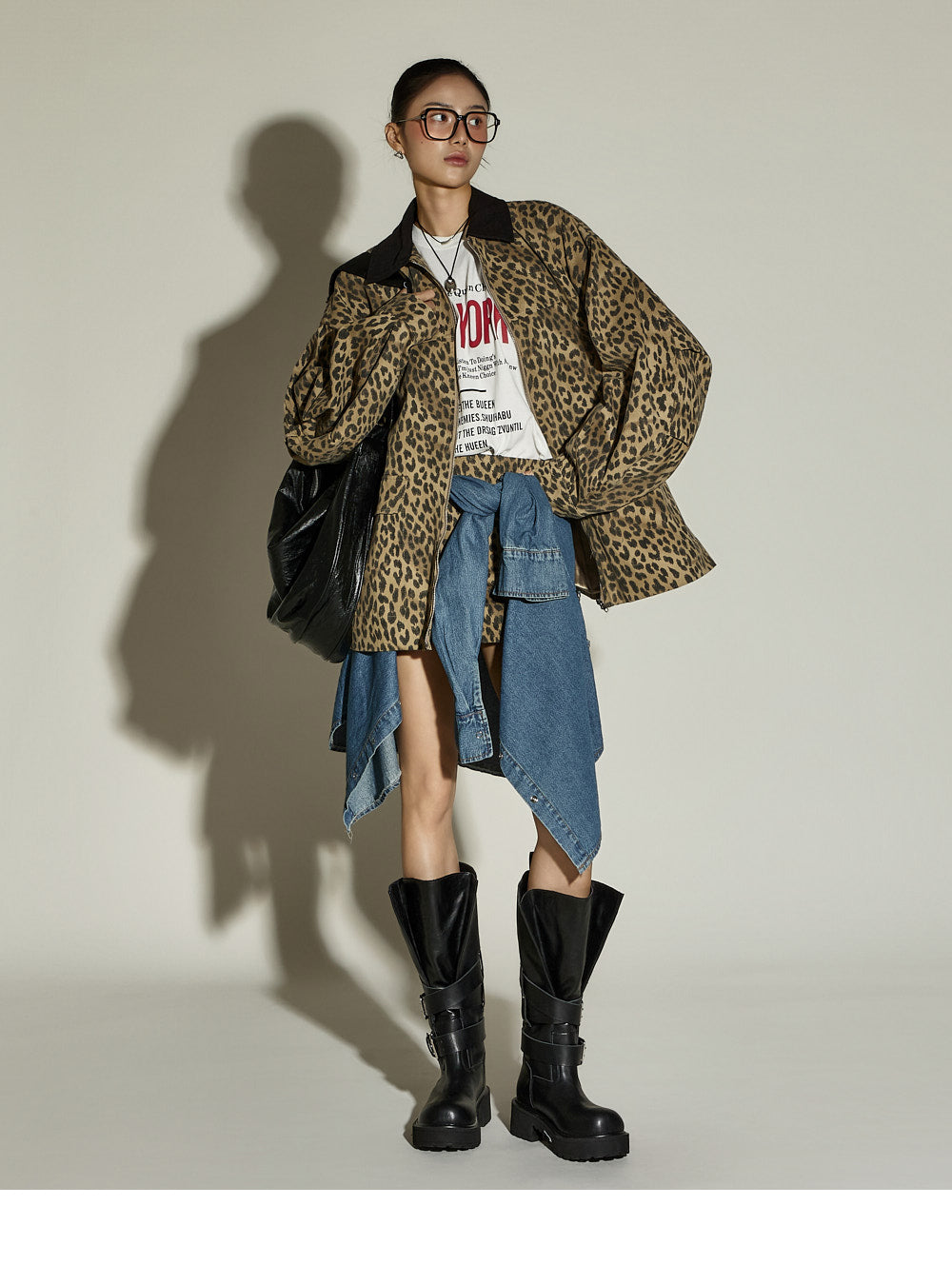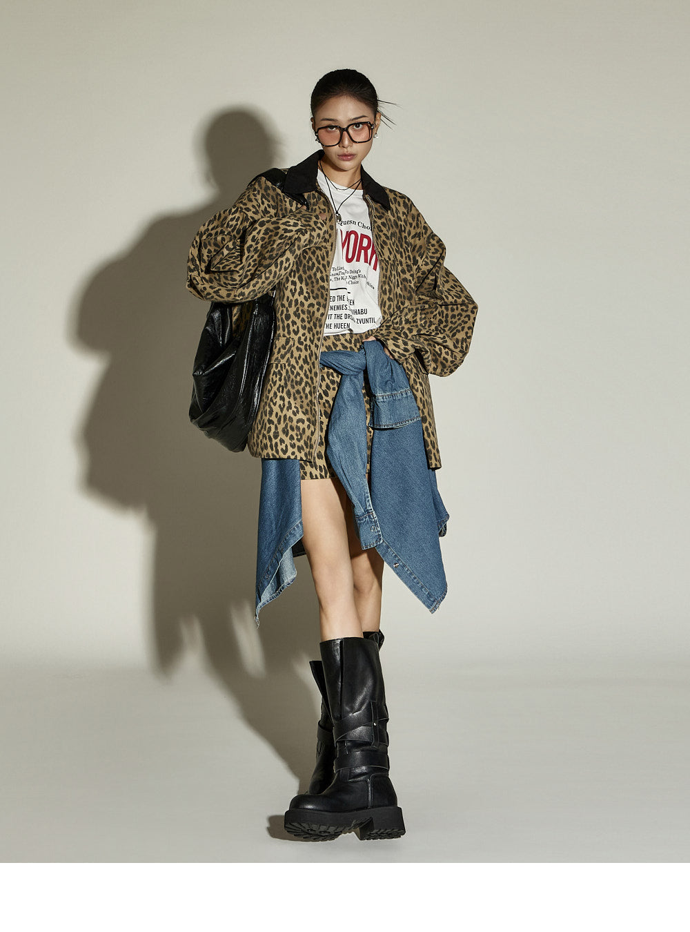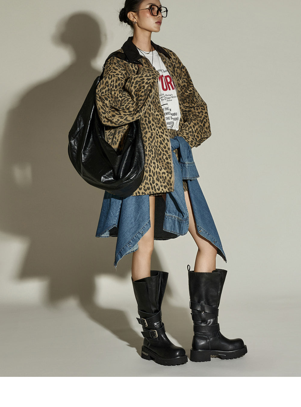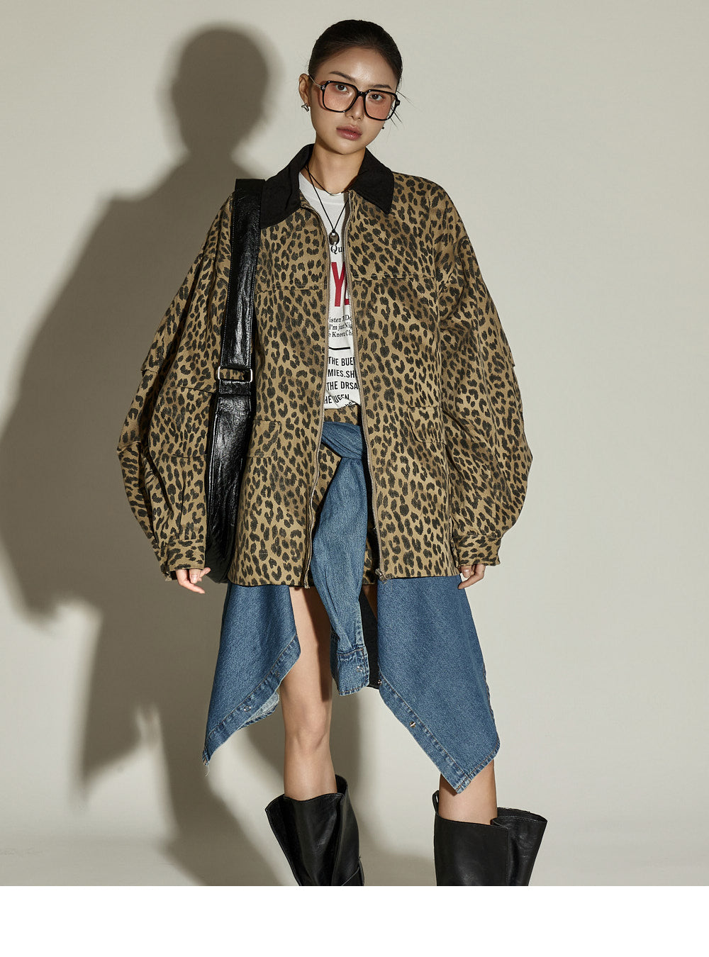 The skirt is a mini-length with a leopard print pattern,