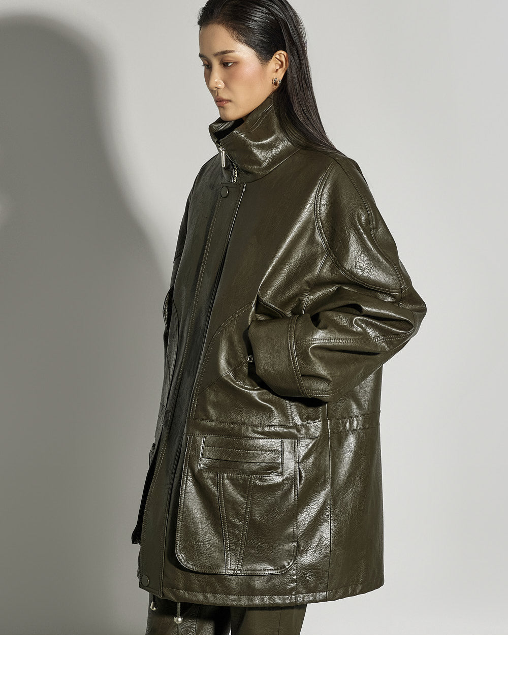 The foldable sleeves allow for versatile styling.
