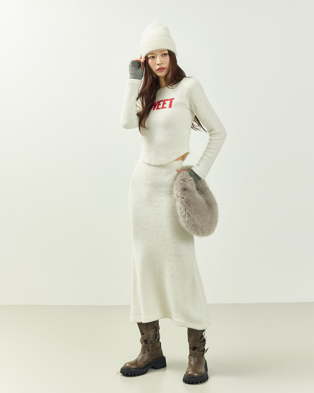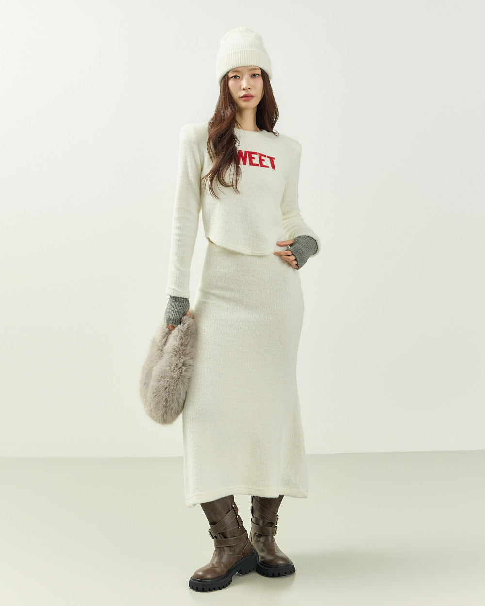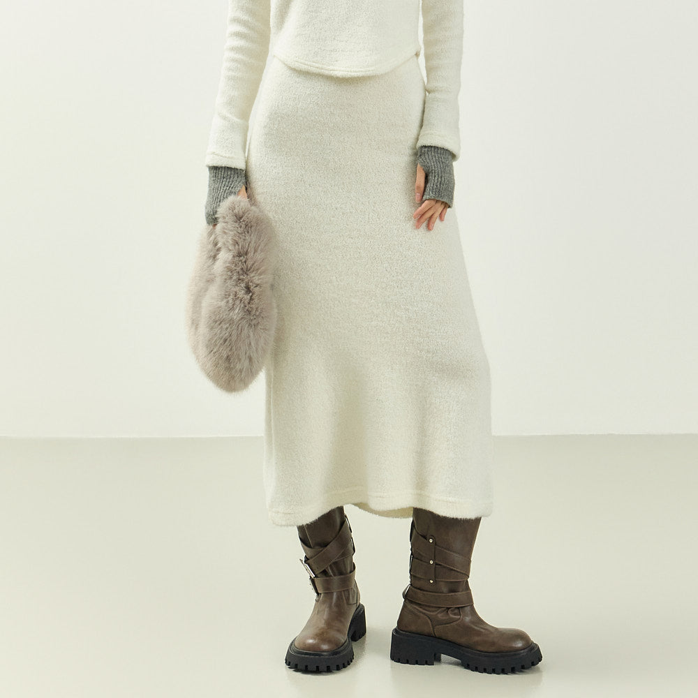 the long mermaid-silk skirt combine to create a clean yet sophisticated overall look.