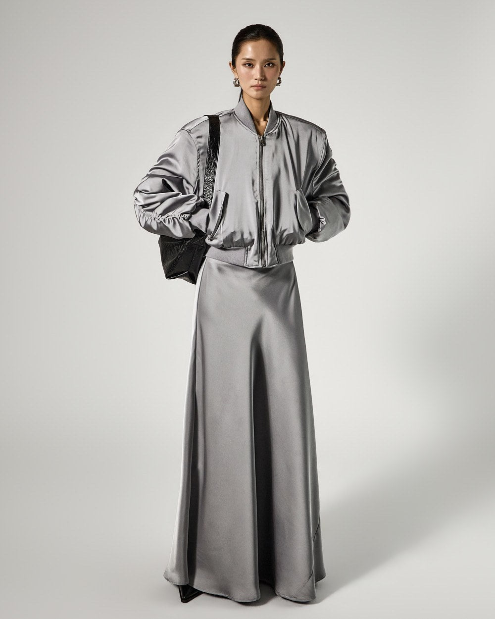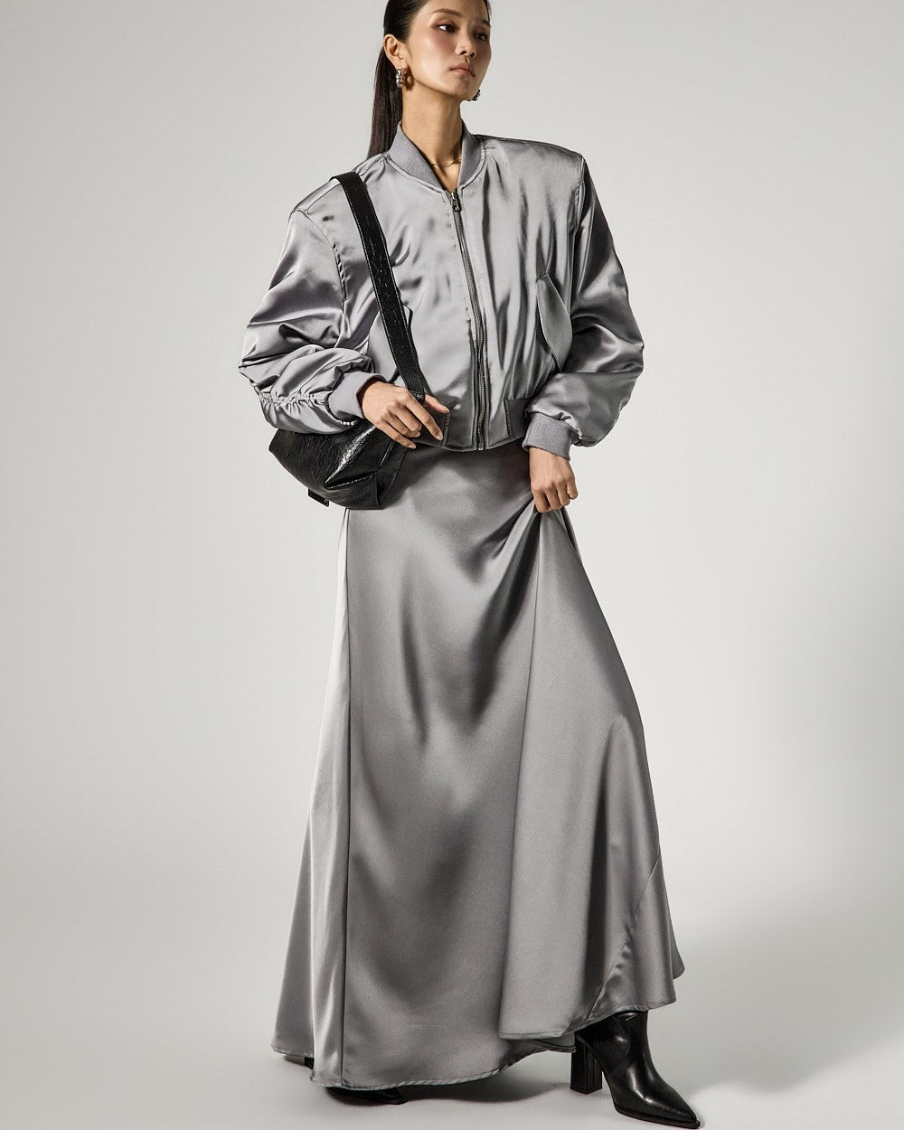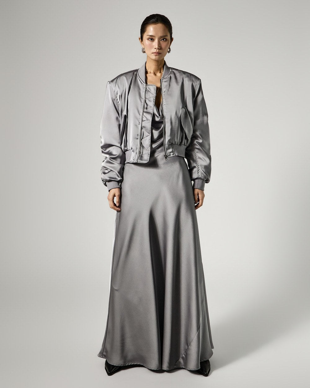 Crafted from lustrous satin material,