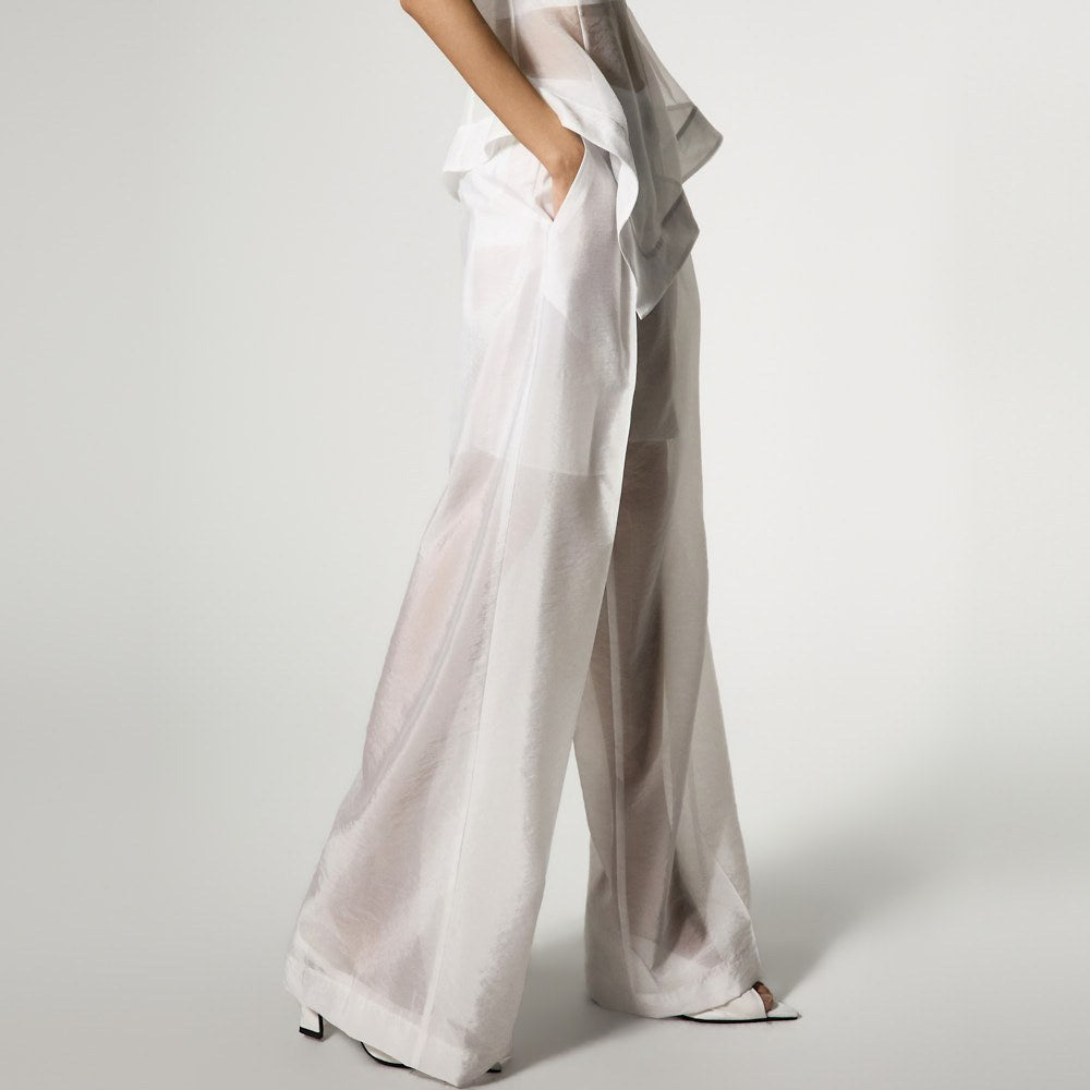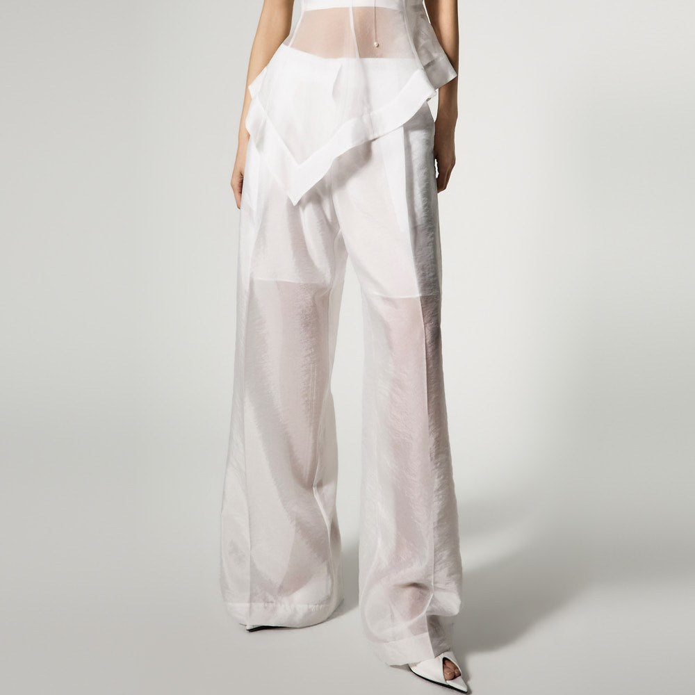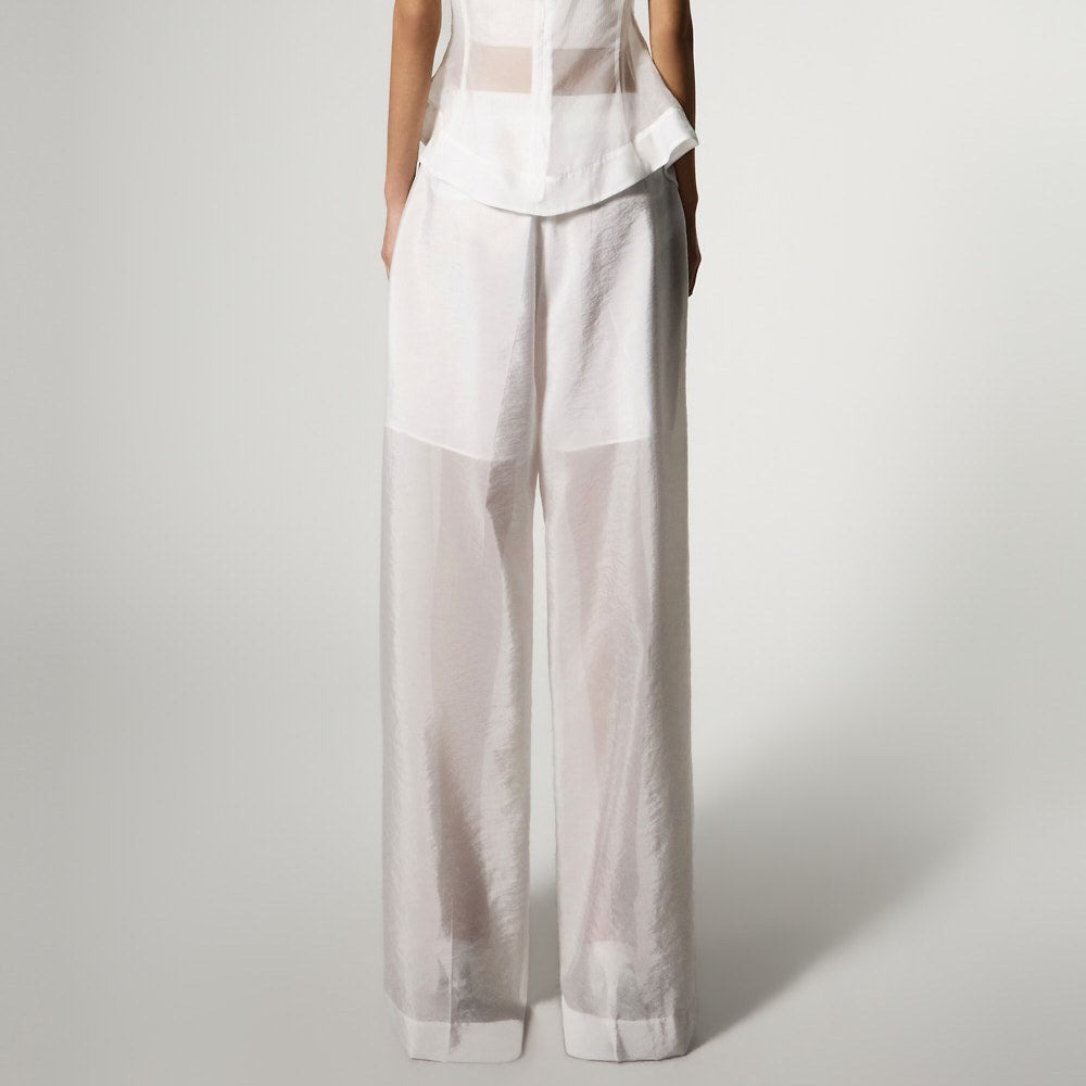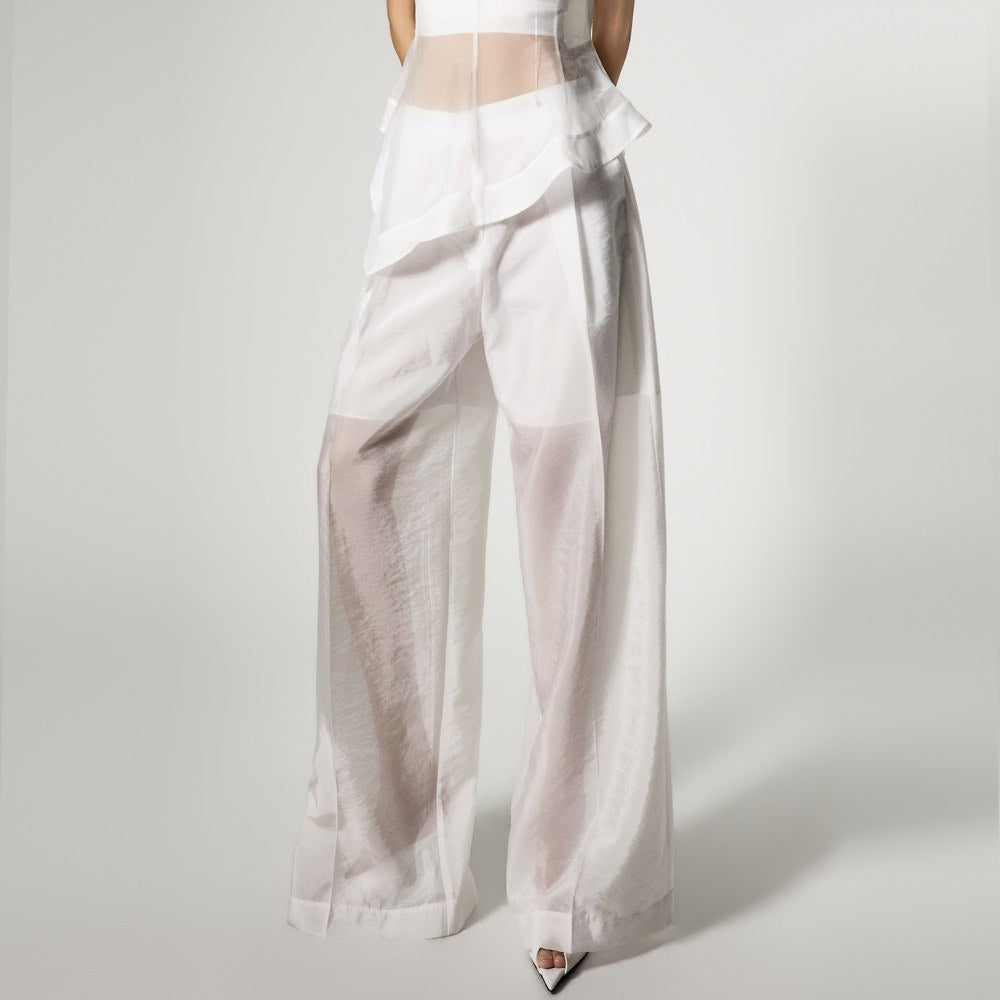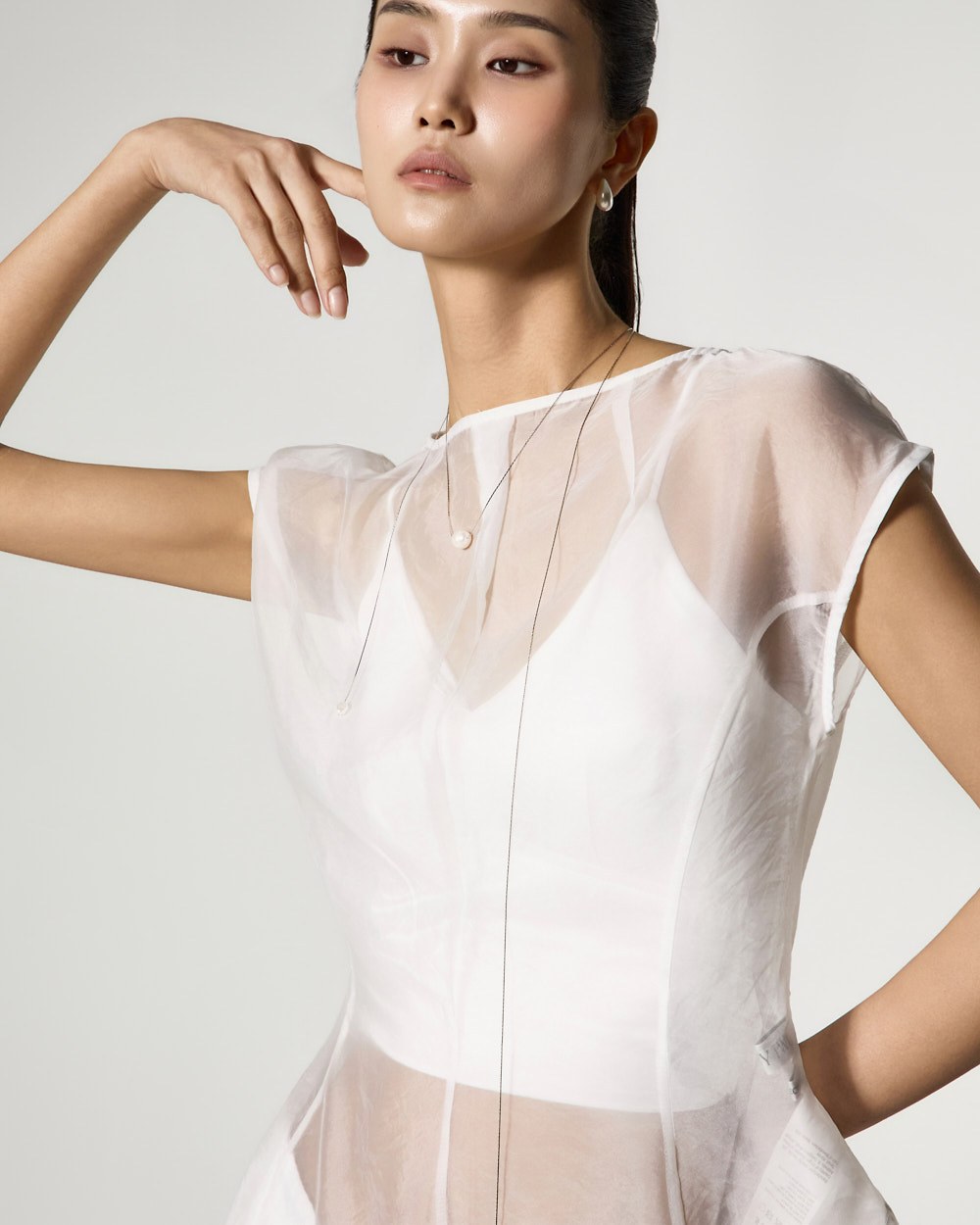 The top is a slim-fit organza blouse that