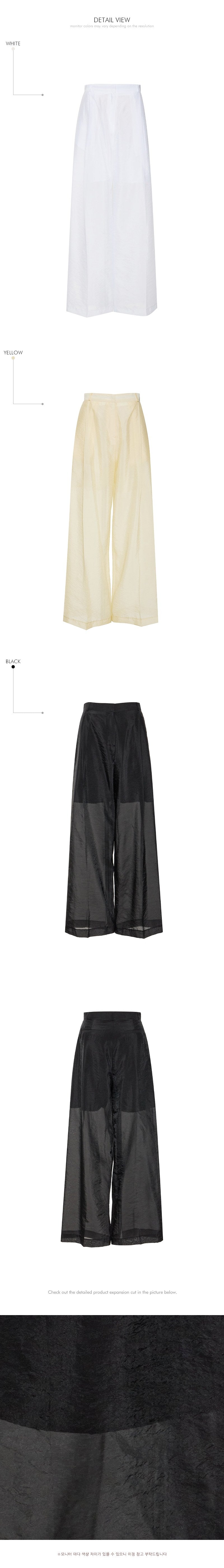The bottoms are wide-fit slacks that fall with a relaxed fit,