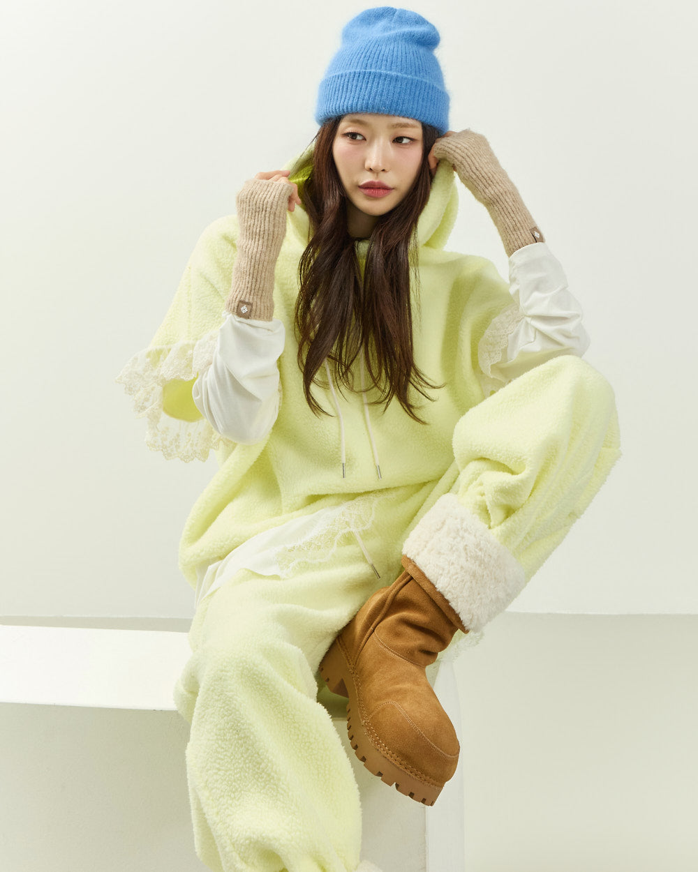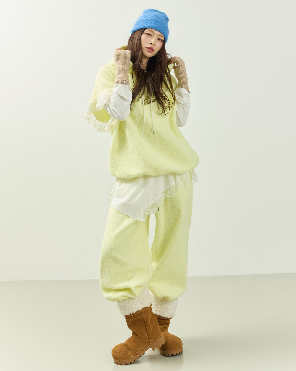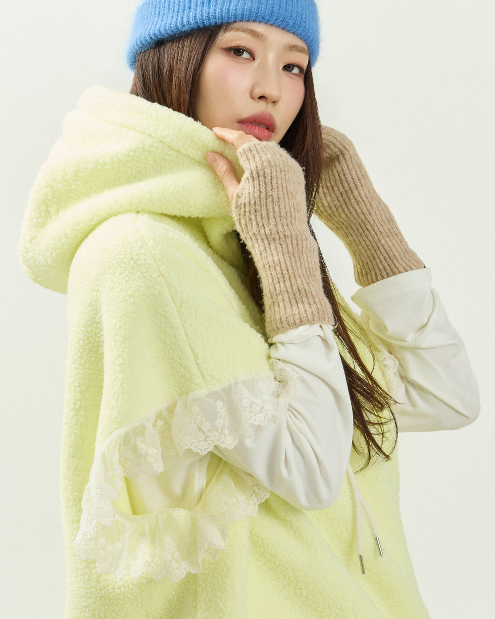 Cozy fleece material with lace details