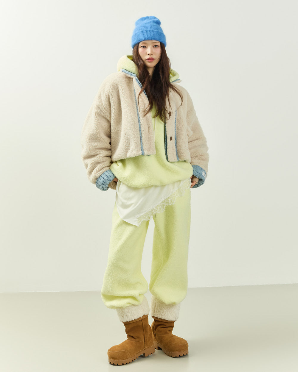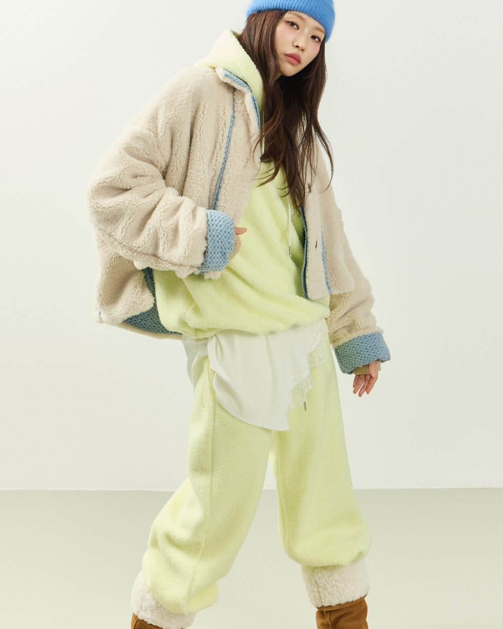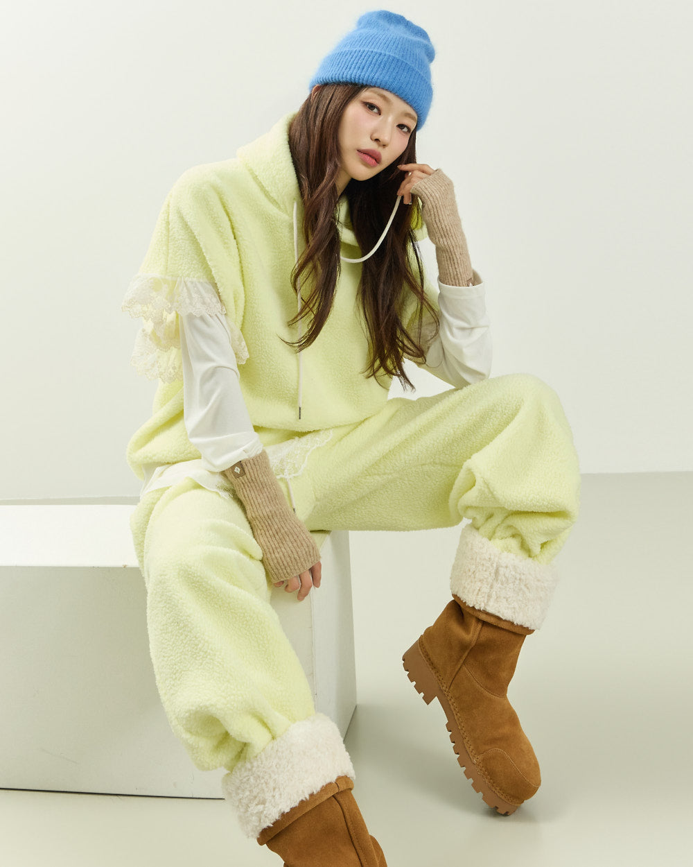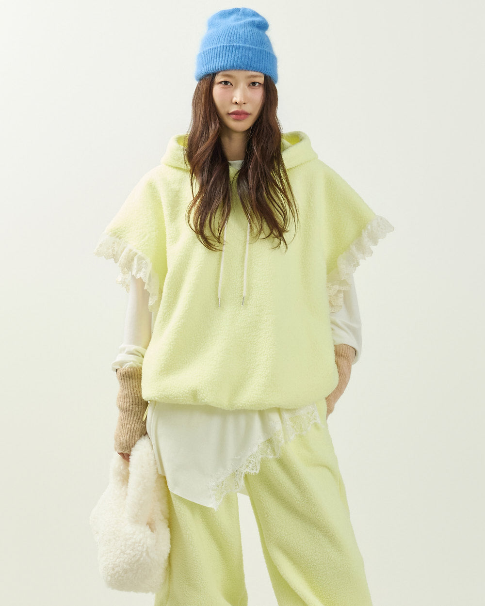 Cozy fleece material with lace details