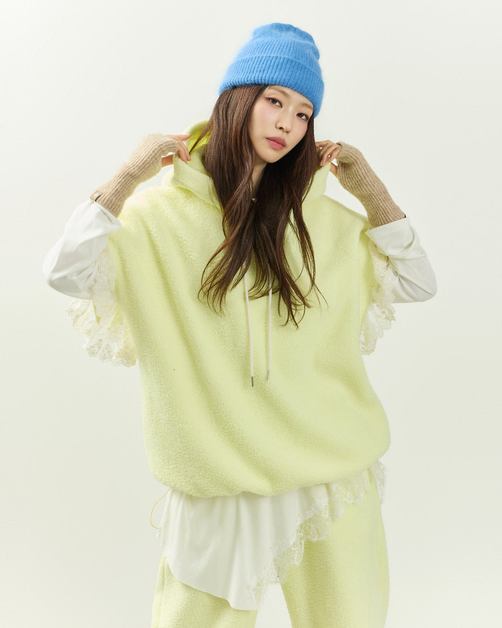 The hooded vest design allows for versatile layering with various innerwear