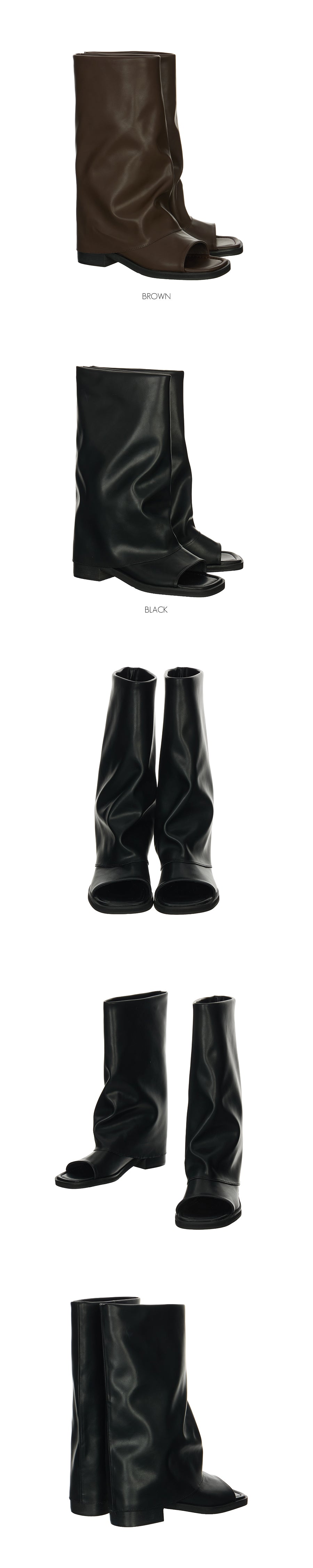 AR-3544 Open-Toe Leather Slouchy Boots