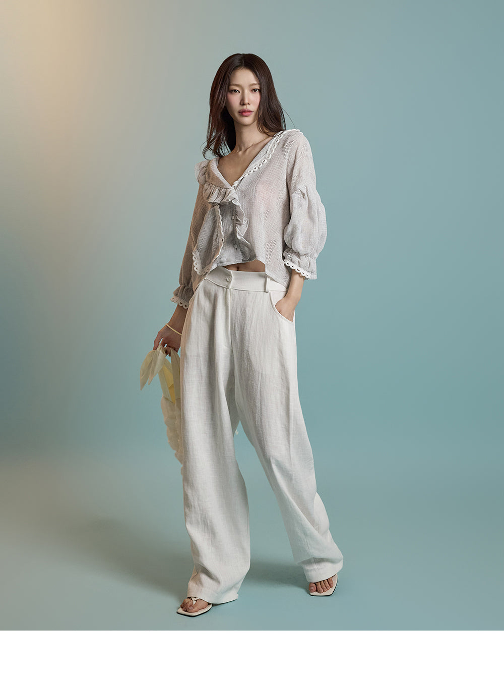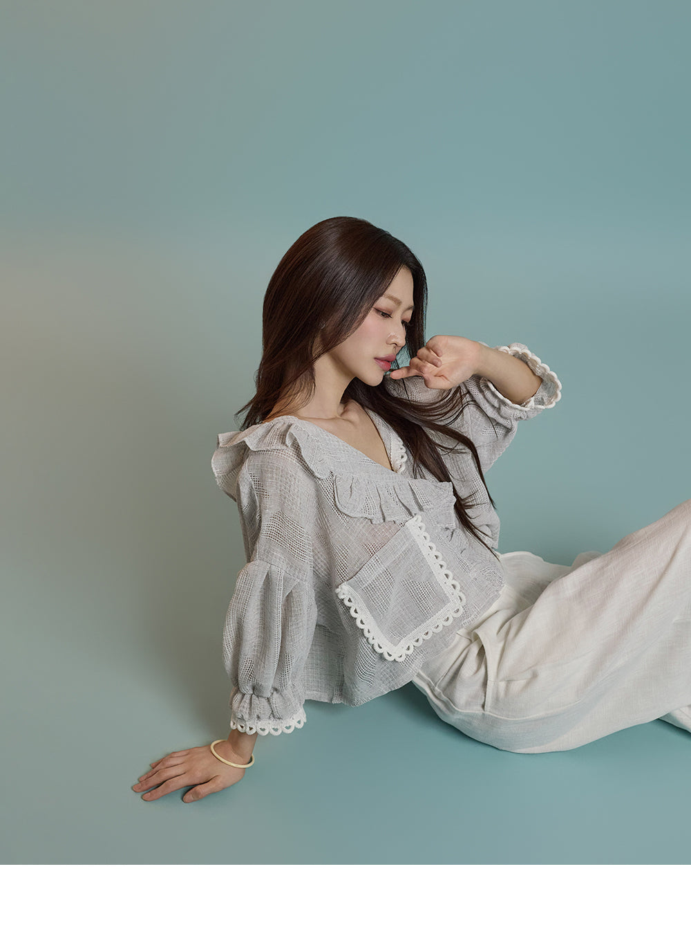 B3061 リネンフリルブラウス