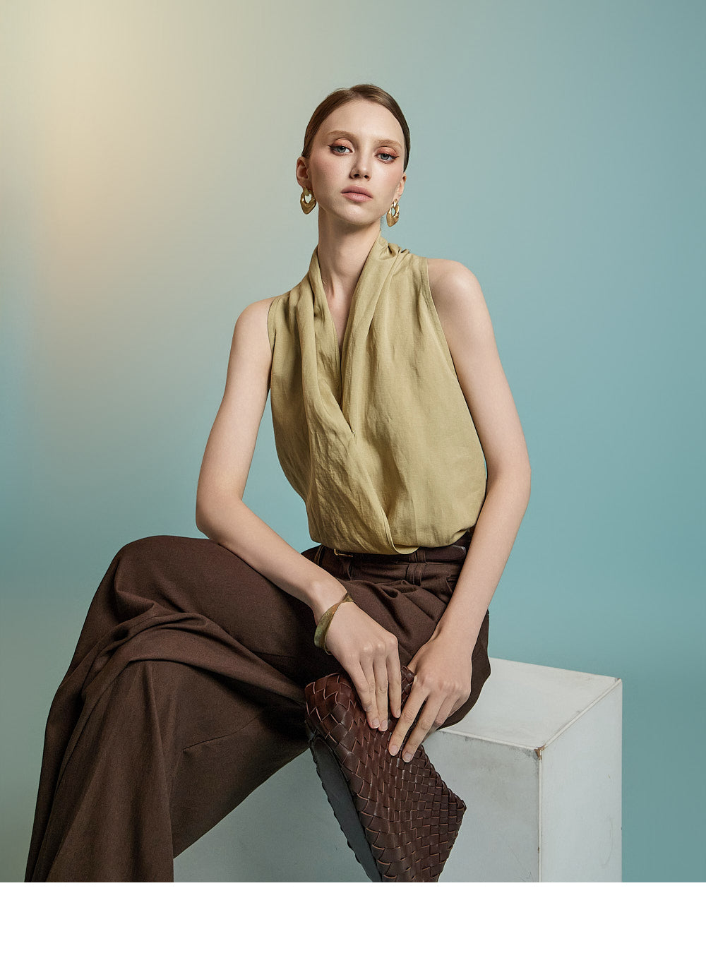 フォーマルなボトムスと合わせてドレスアップしたシーンにも。