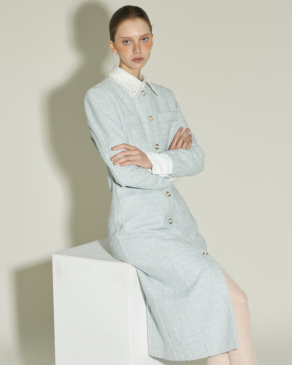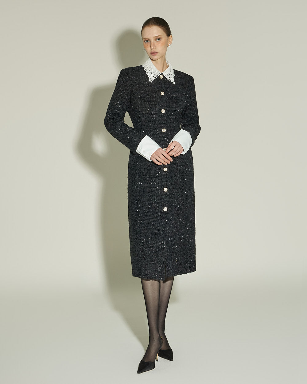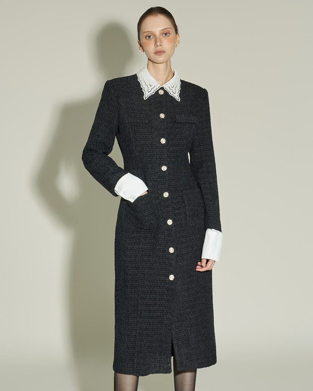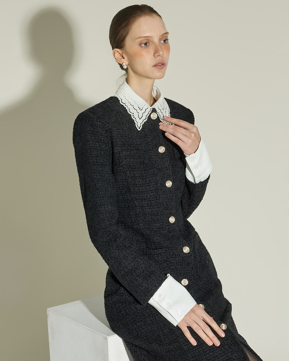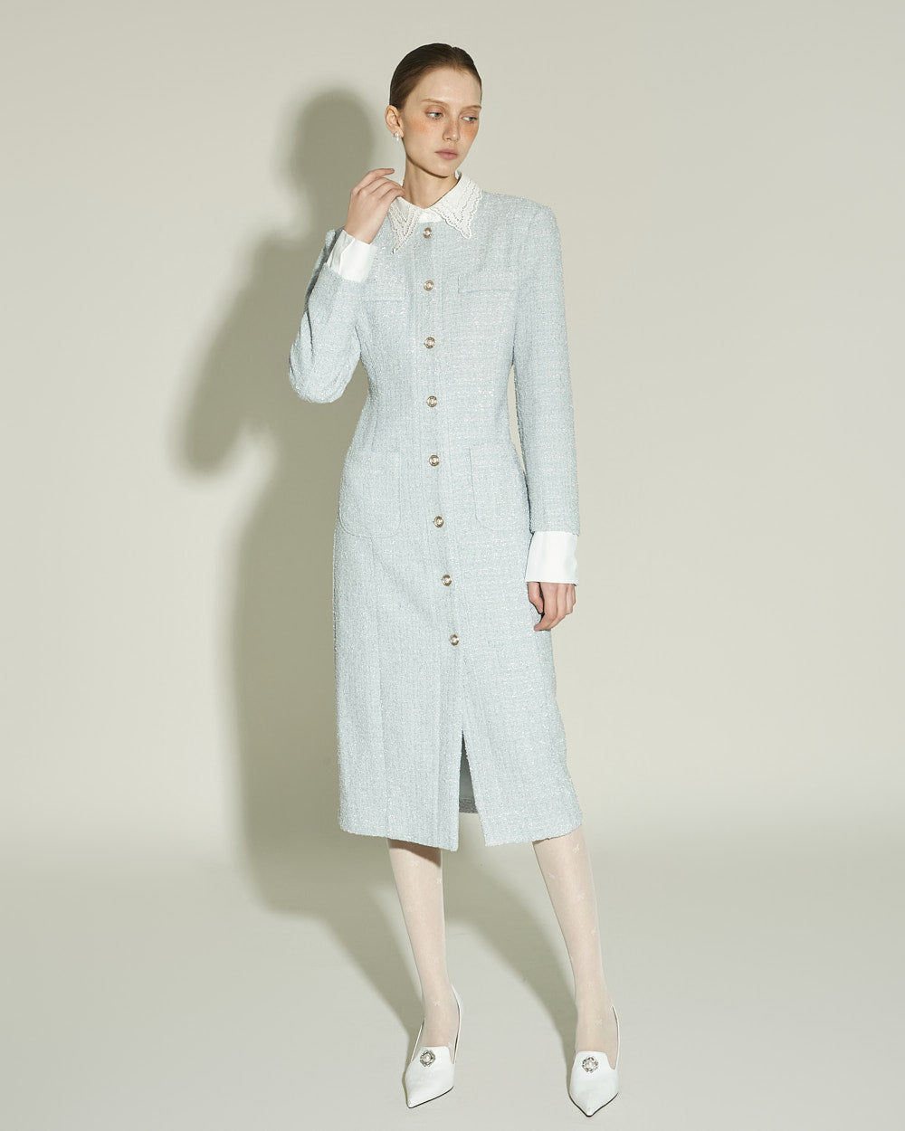 The perforated lace detailing along the collar adds a lovely, romantic touch,