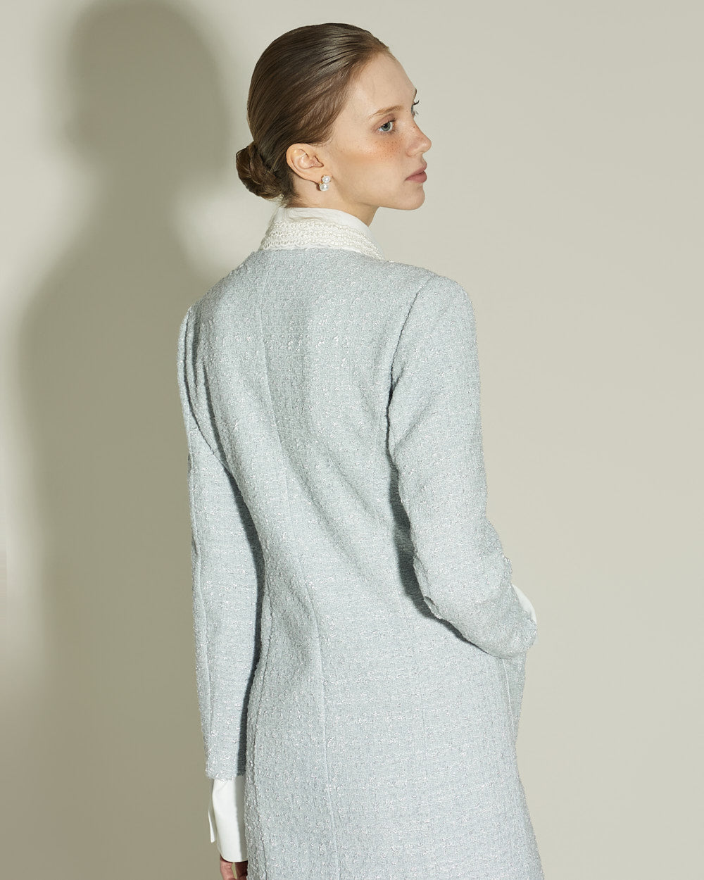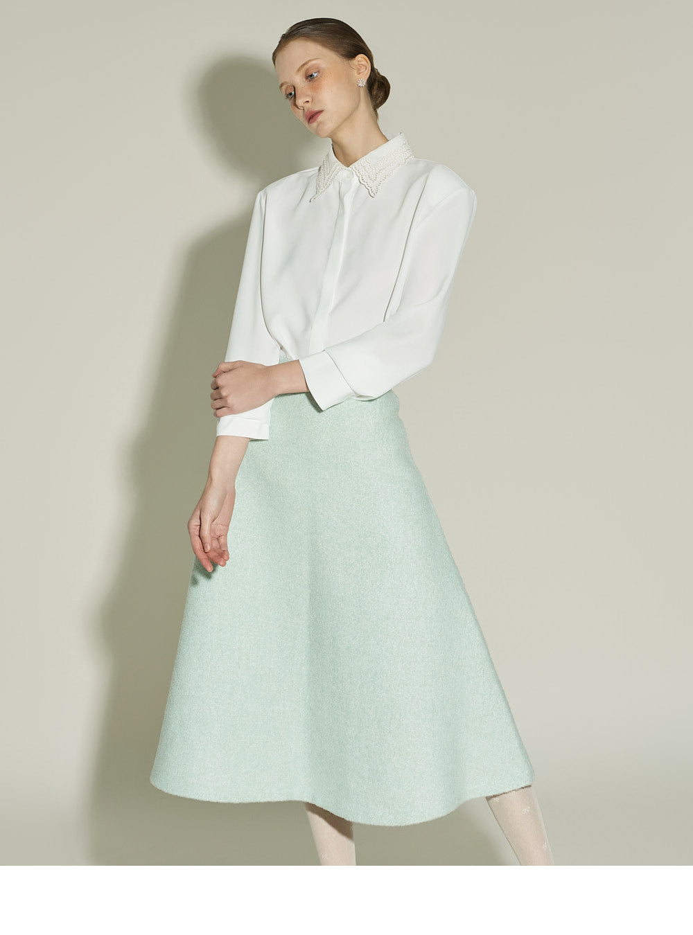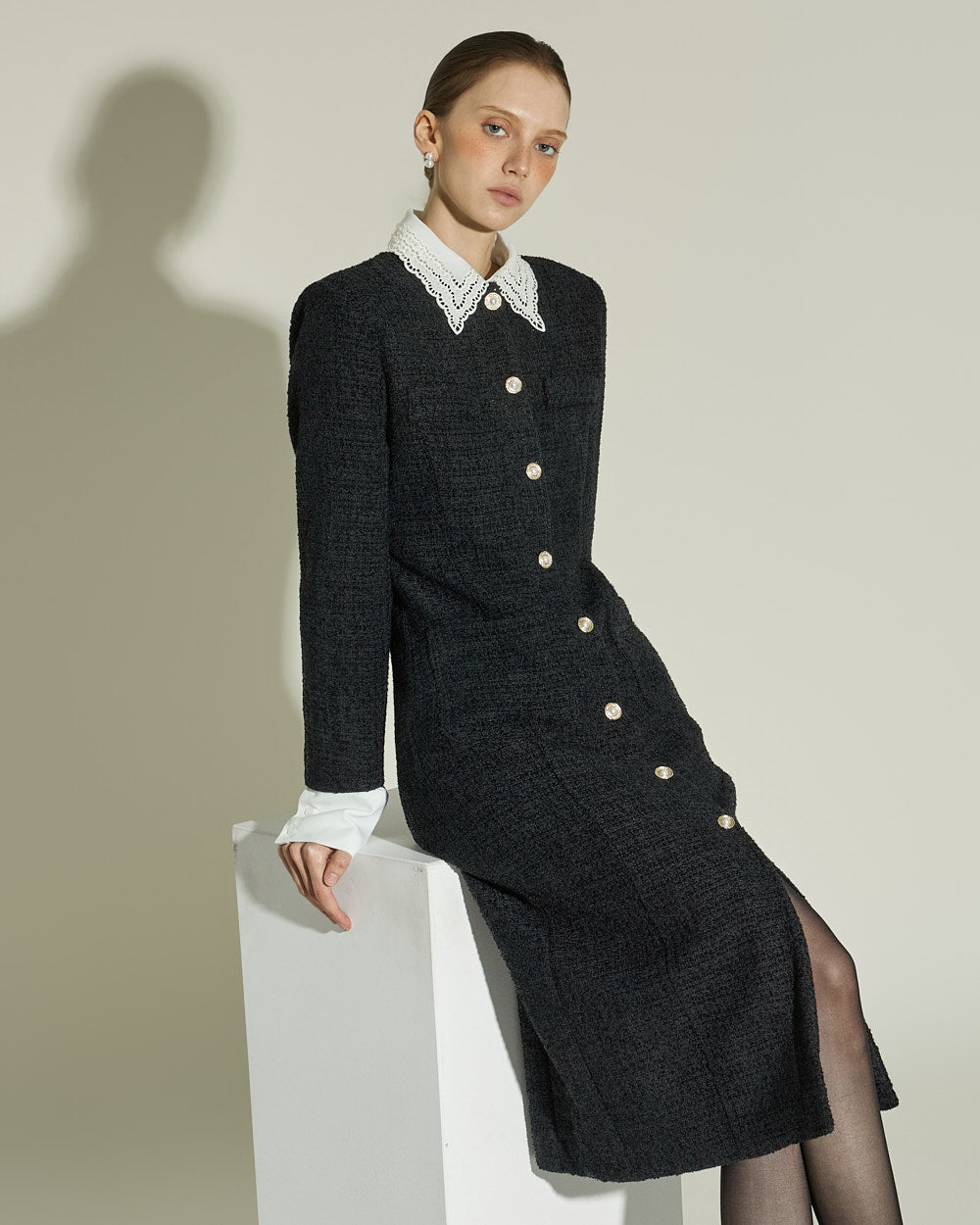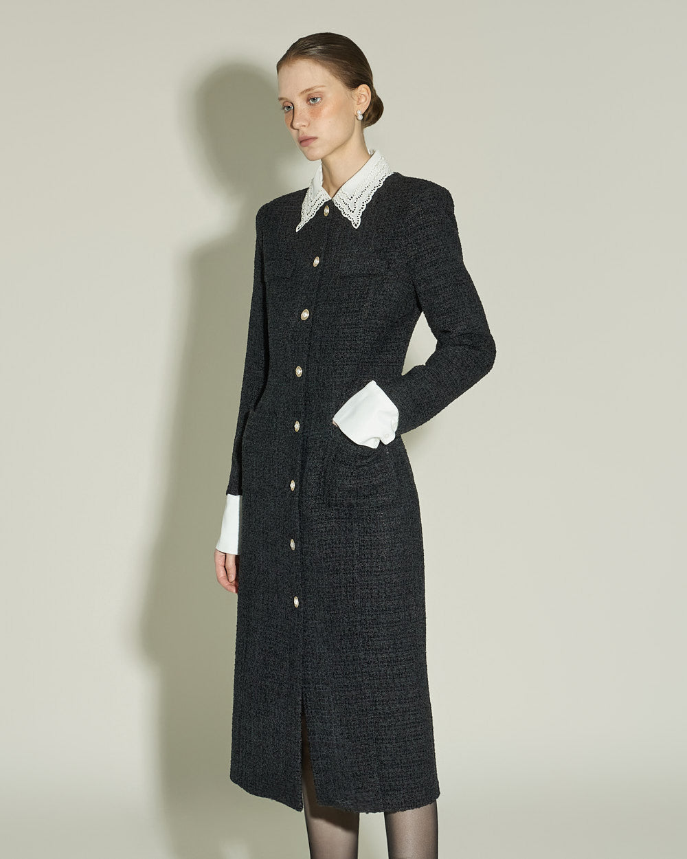 The perforated lace detailing along the collar adds a lovely, romantic touch,