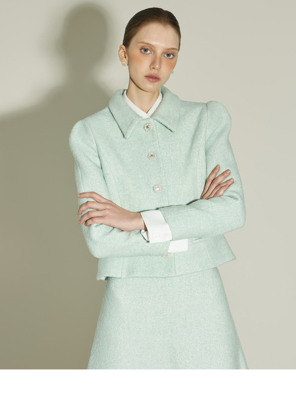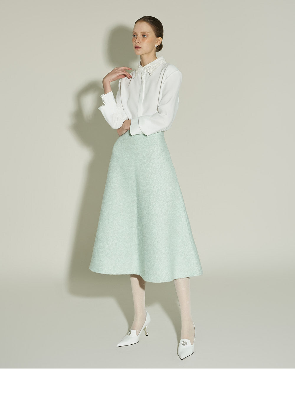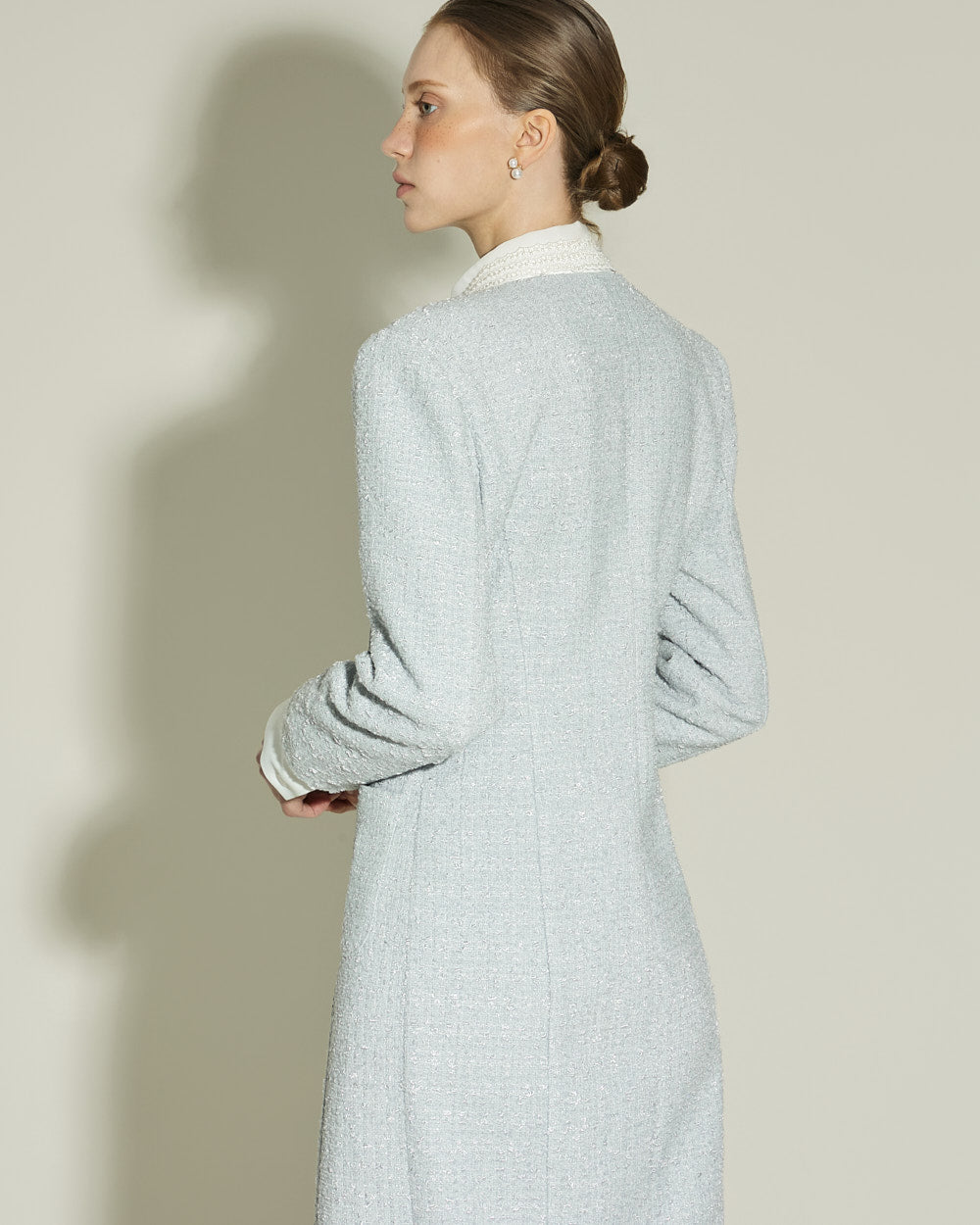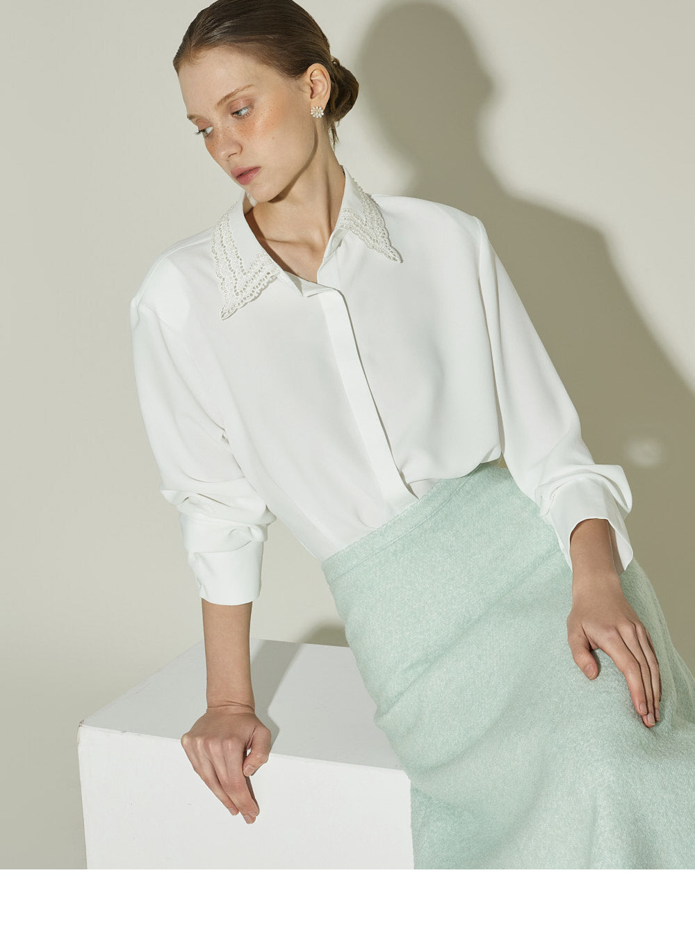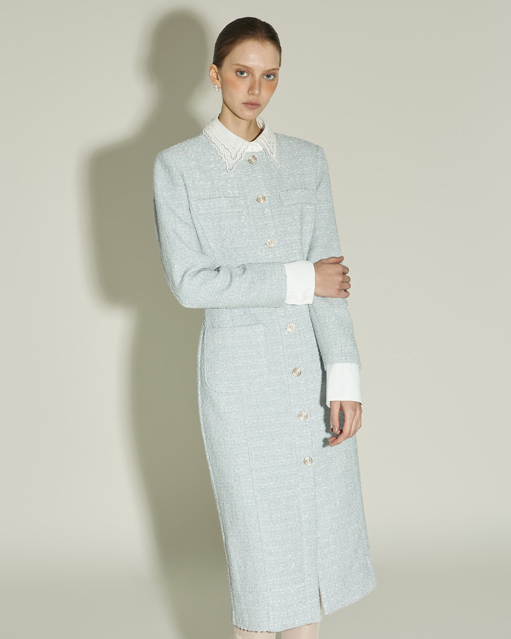 The perforated lace detailing along the collar adds a lovely, romantic touch,