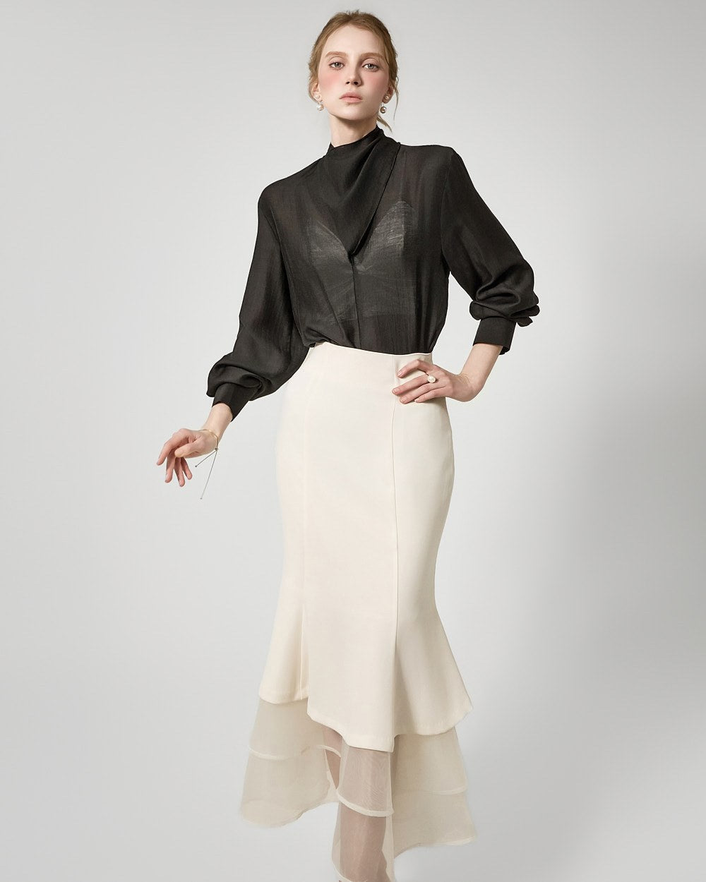 Vネックのラップデザインは様々なスタイリングが可能です。