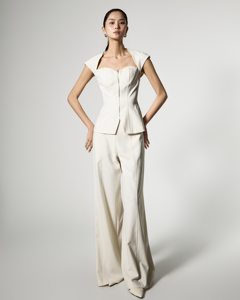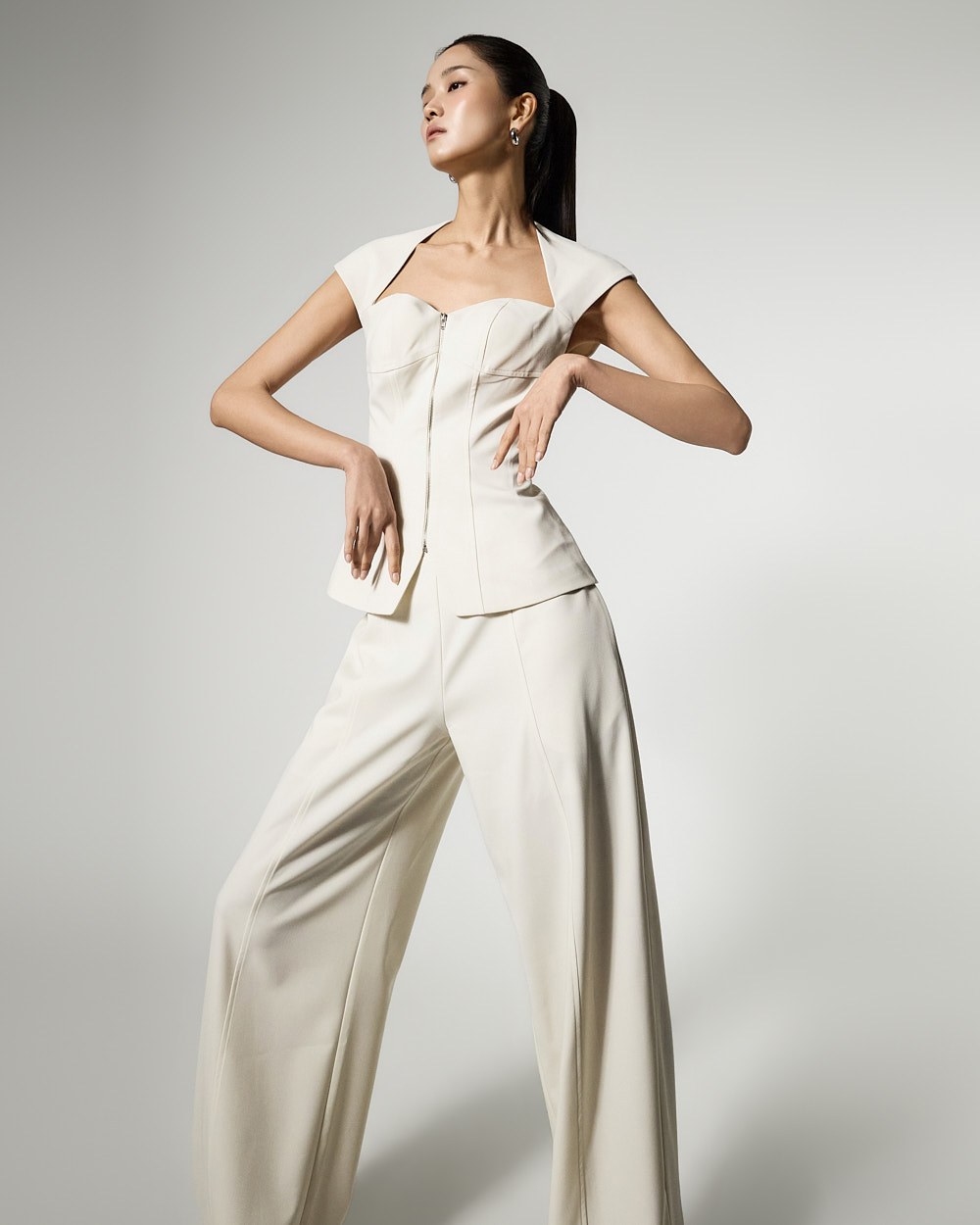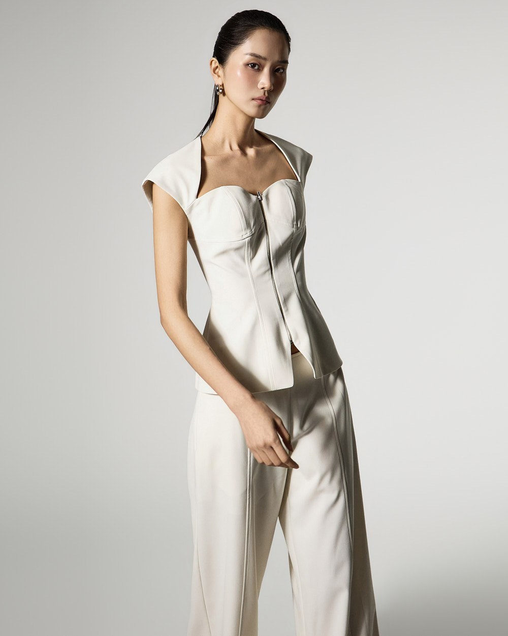 モデル(173cm)はクリームカラーのSサイズを着用しています。