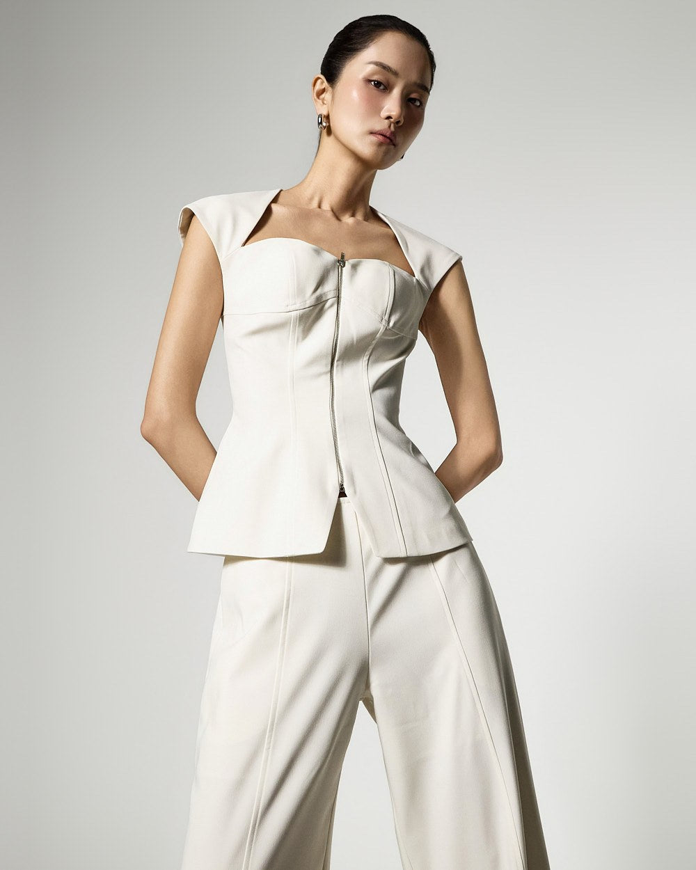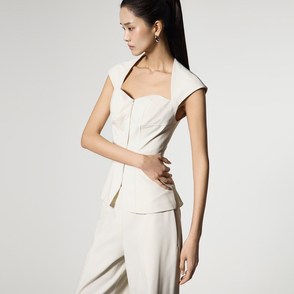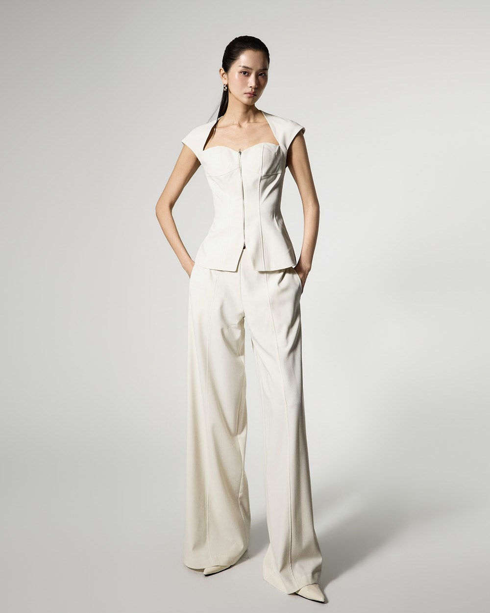 モデル(173cm)はクリームカラーのSサイズを着用しています。