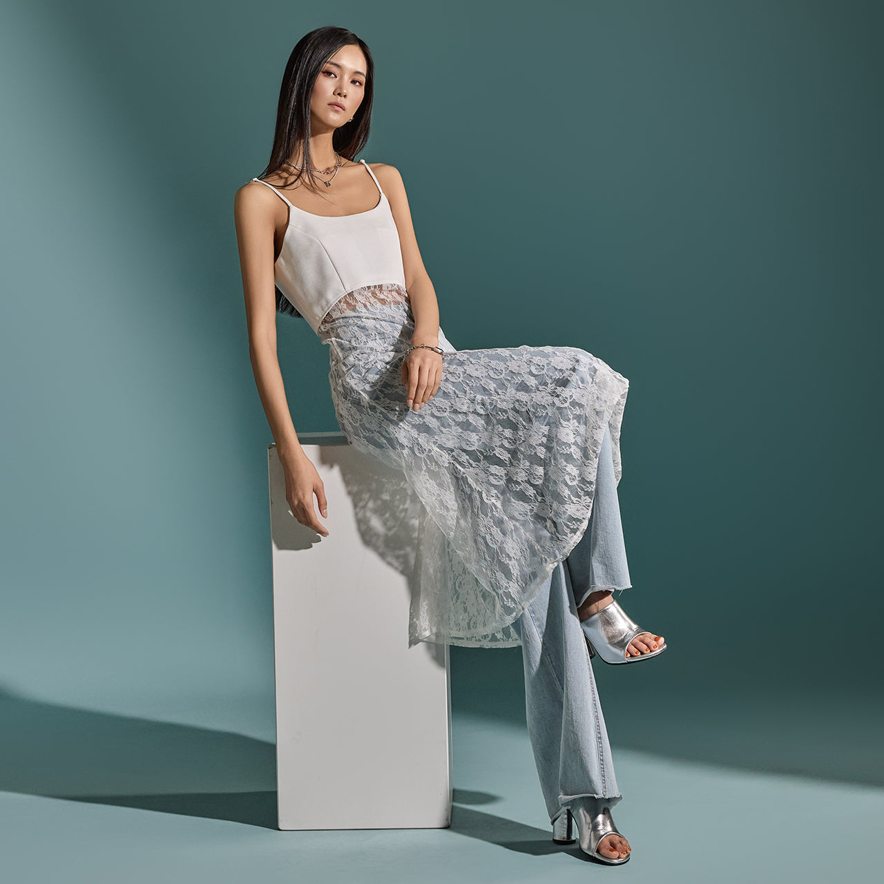 フェミニンな雰囲気を醸し出すレースドレス。ワンサイズ展開。