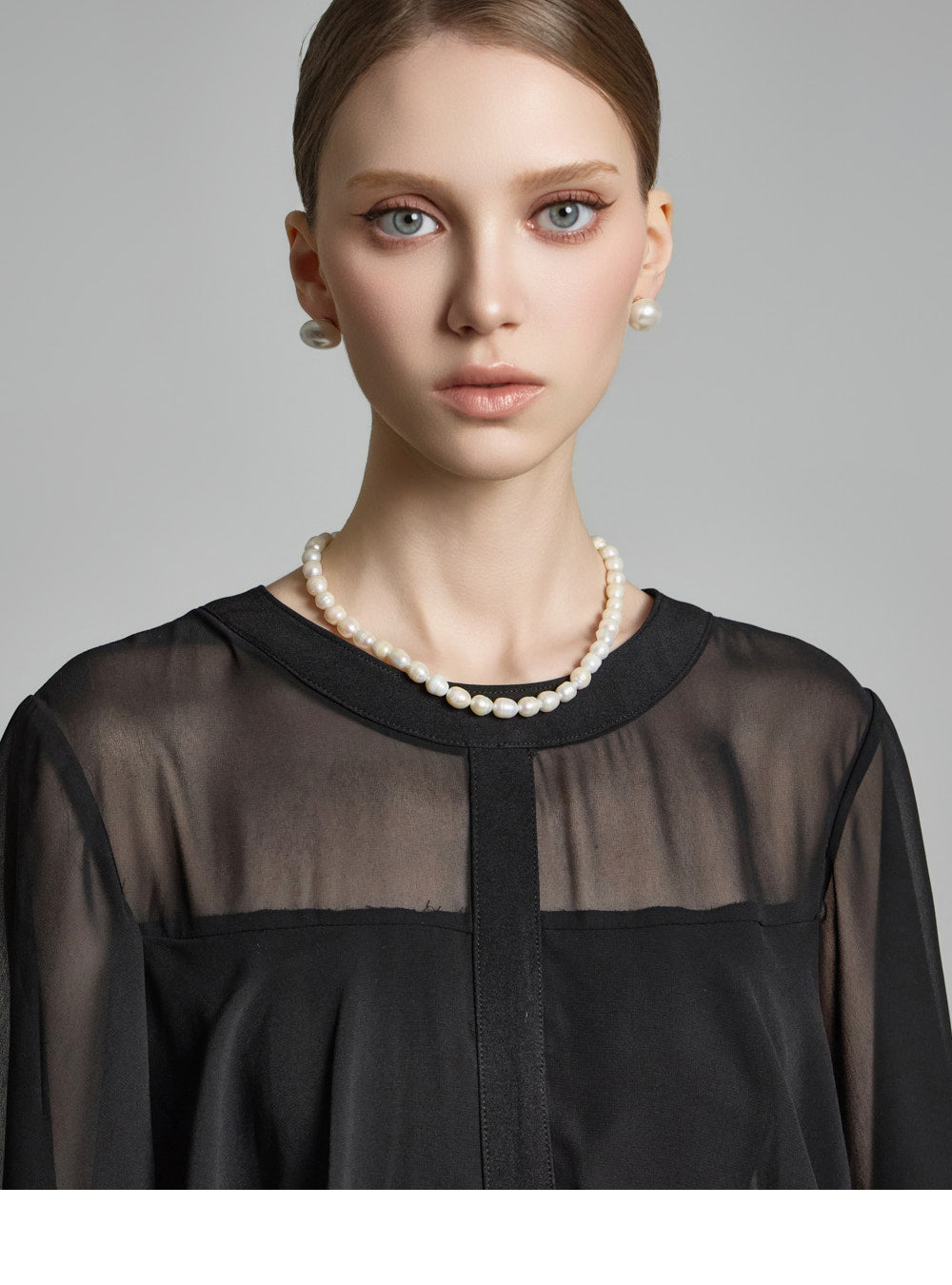 肩のラインの透け感のあるディテールがさりげないアクセントになっています。