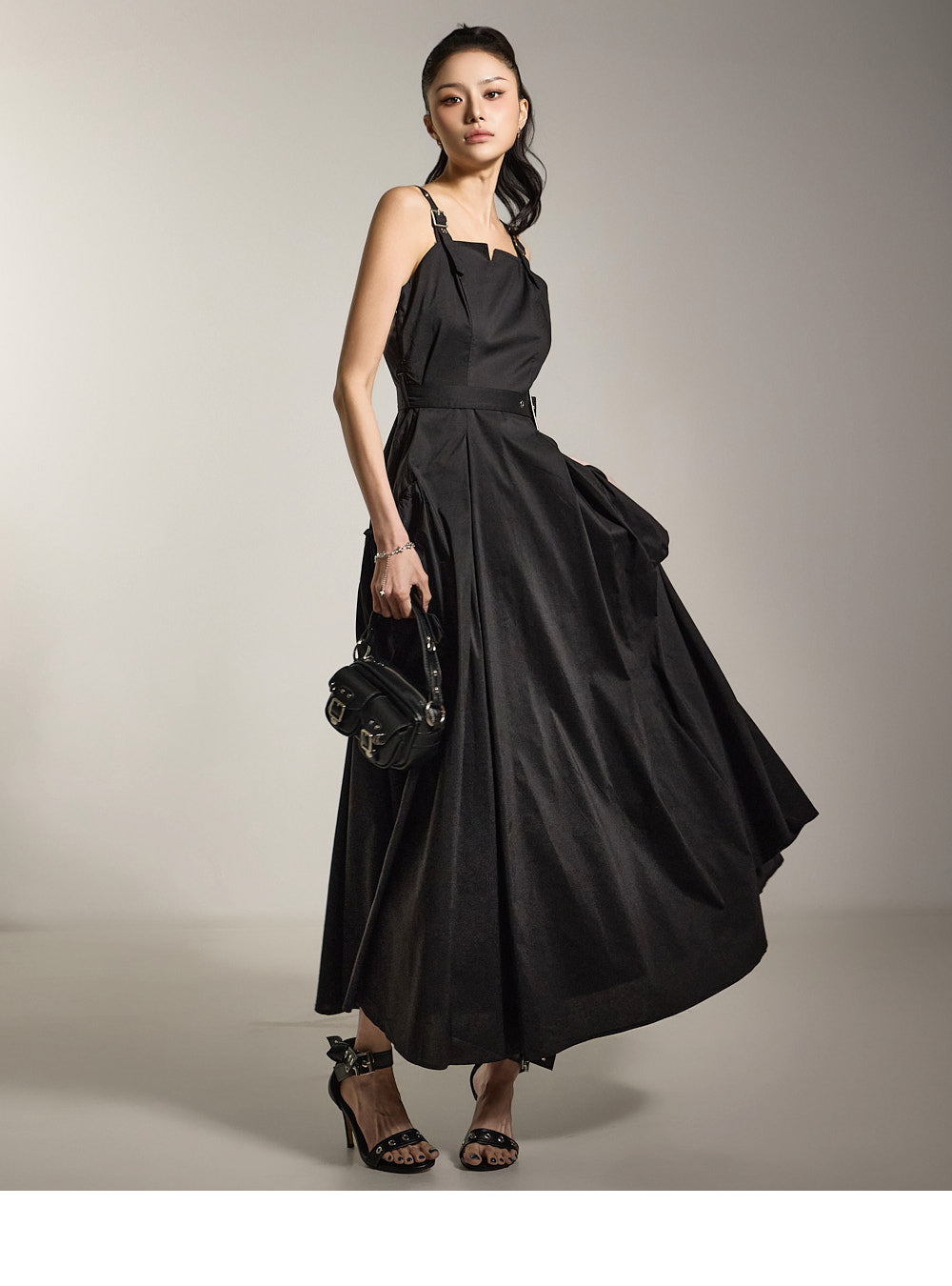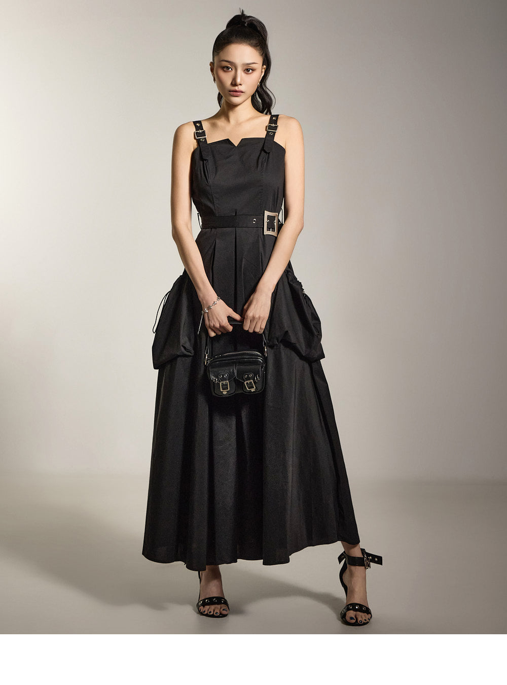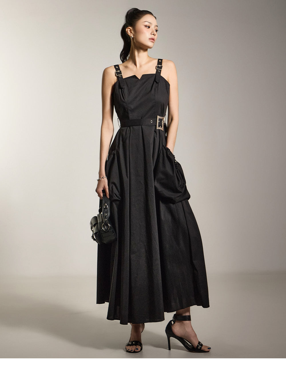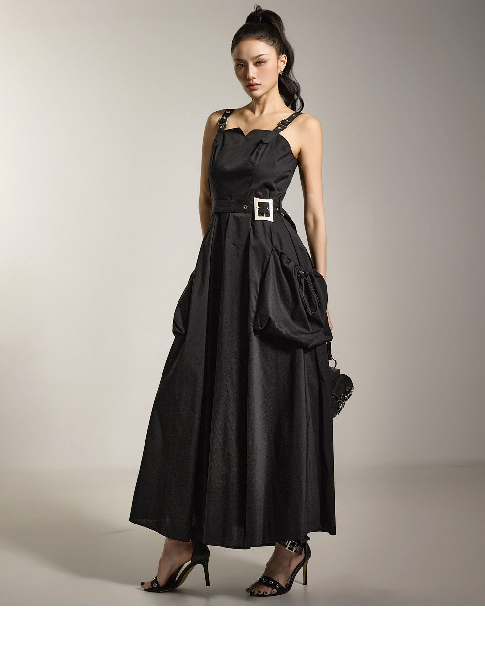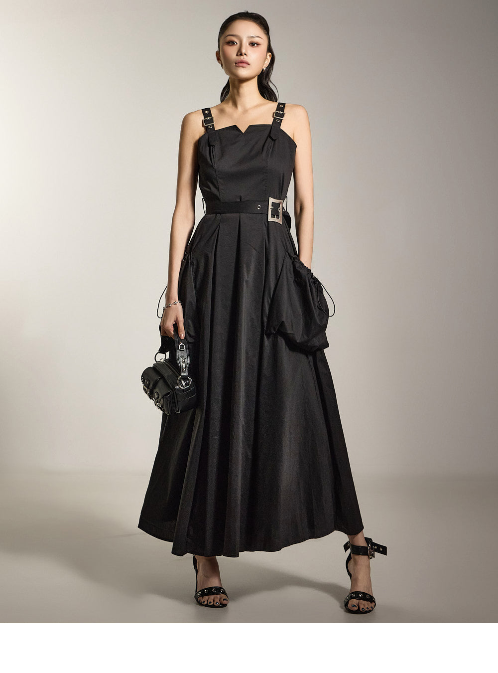 ベルトセットと合わせた、独特な雰囲気のあるドレスです。