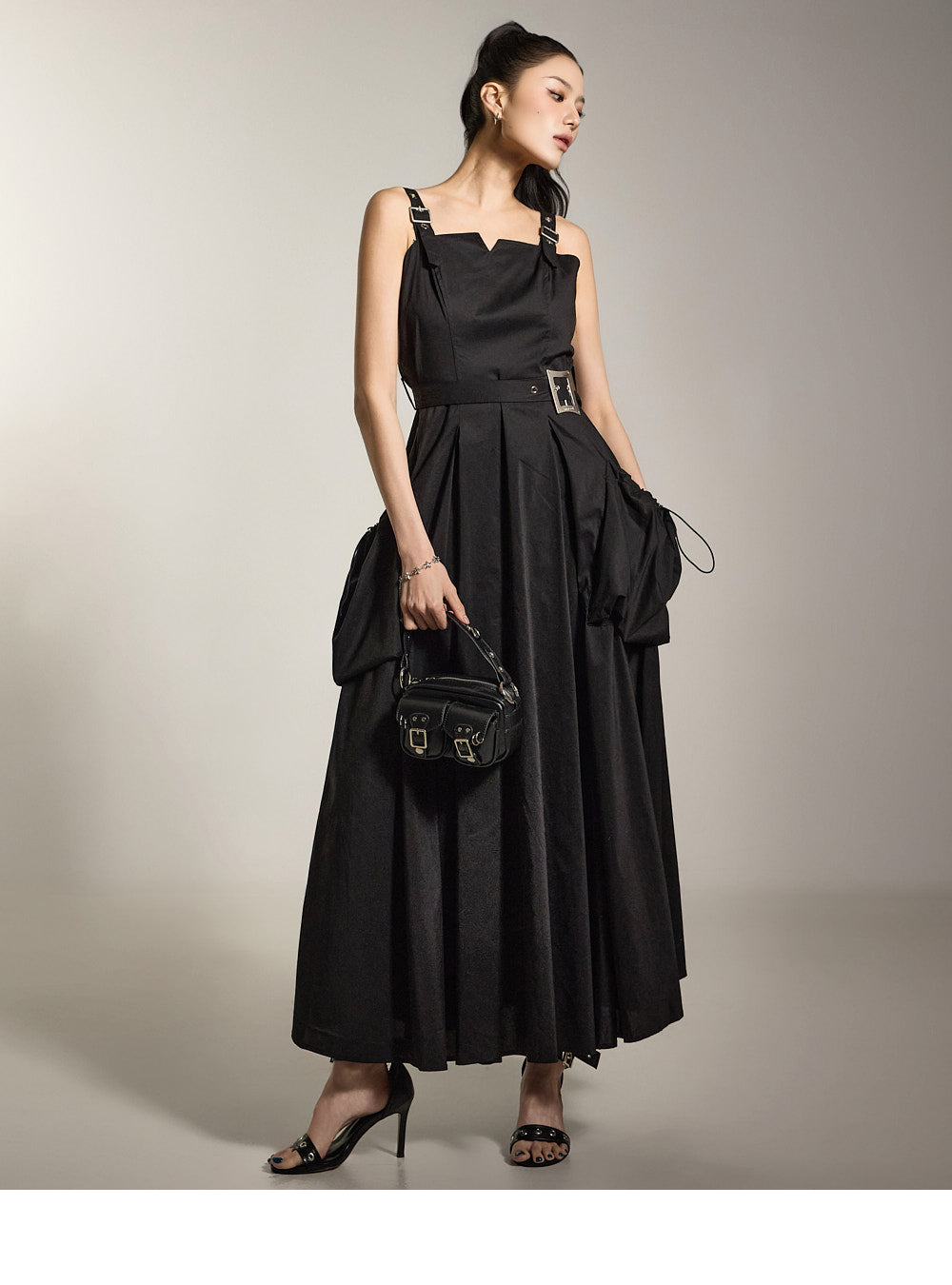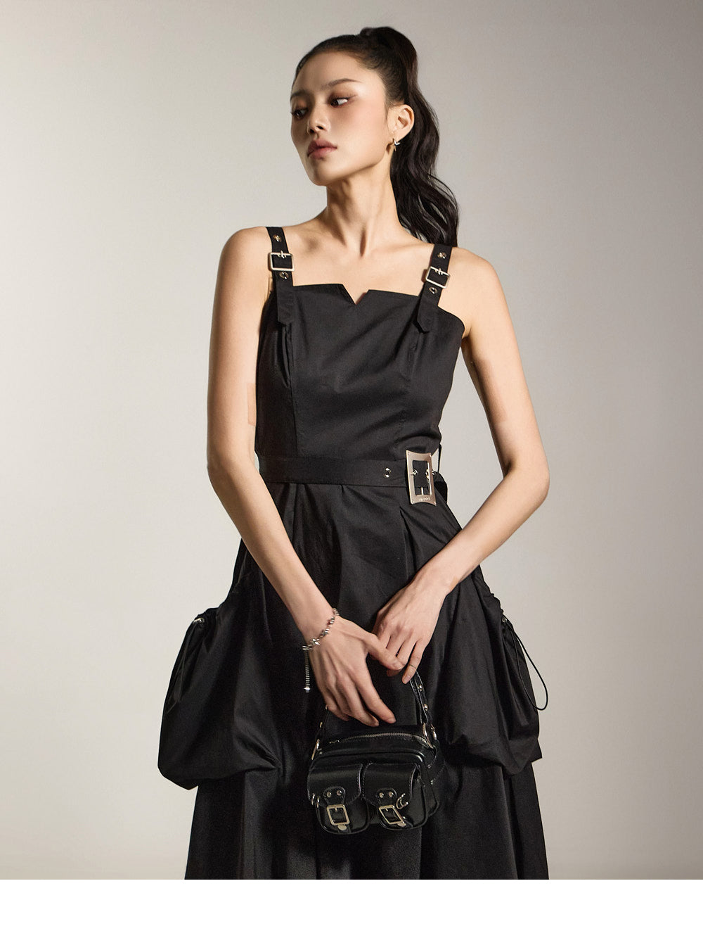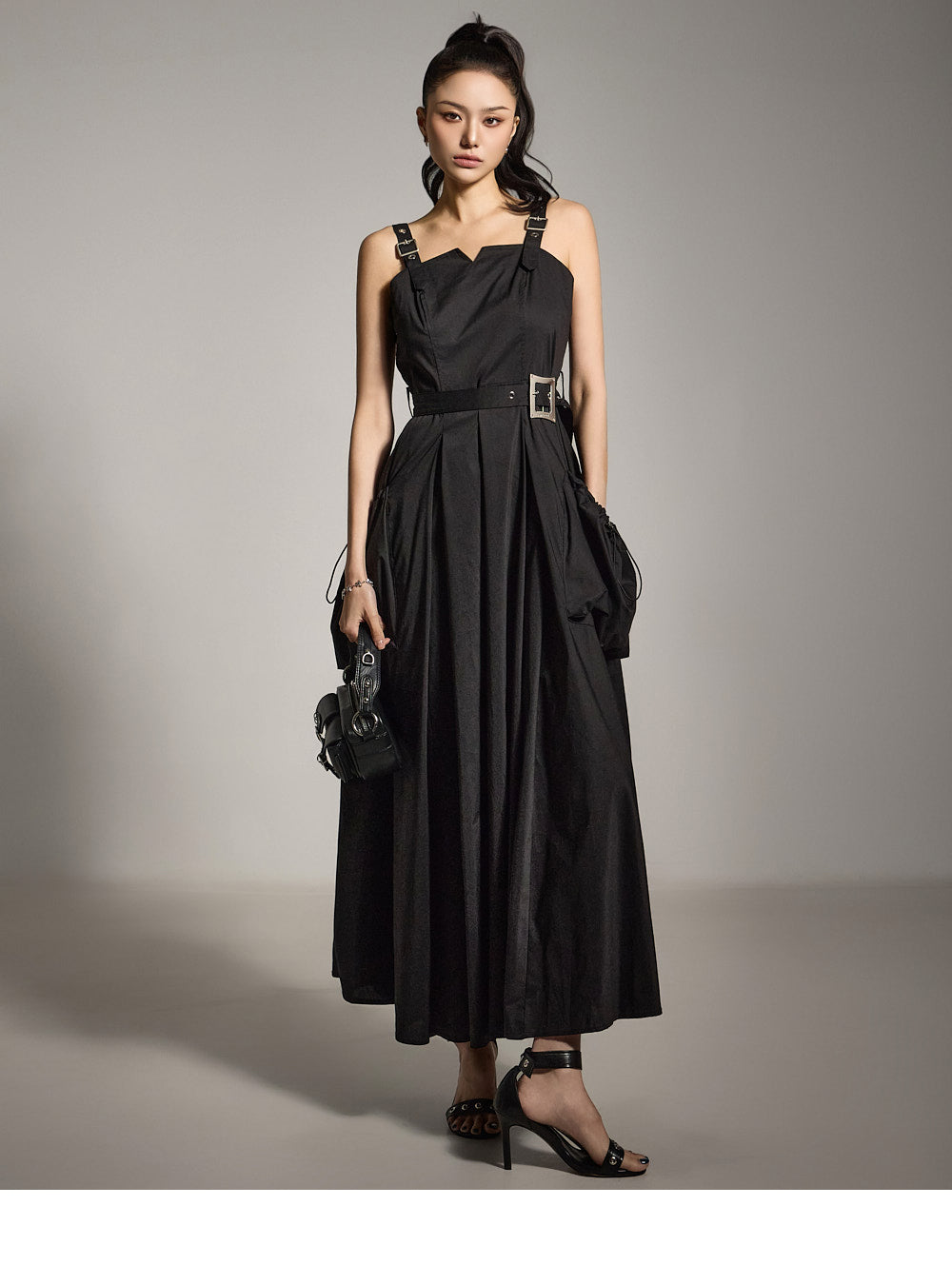 サイドポケットと付属のベルトが実用性とスタイルの両方を高めます。