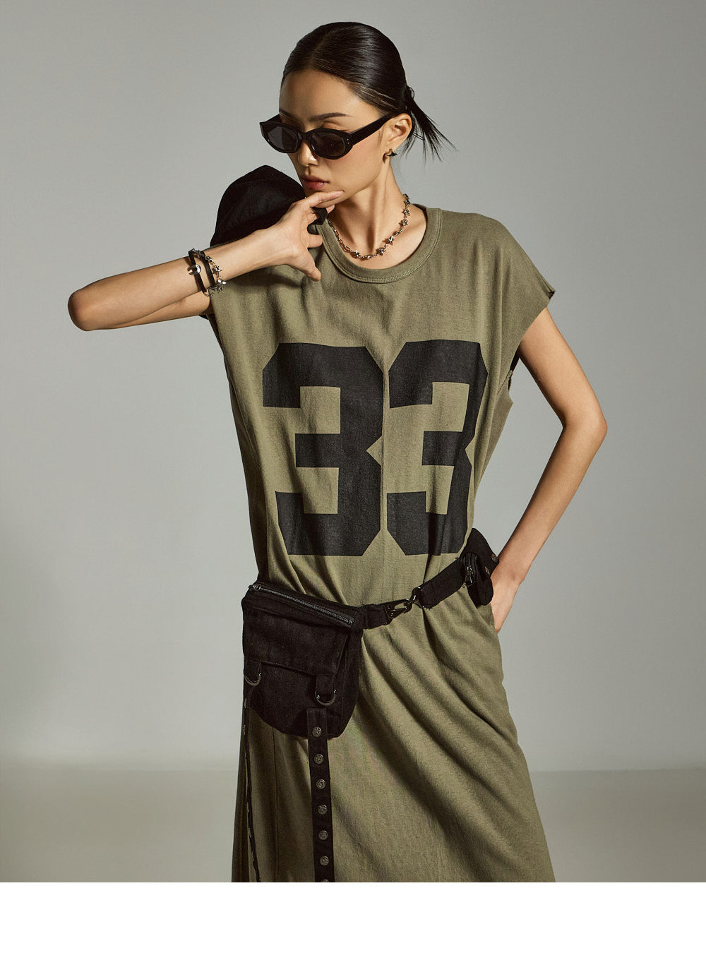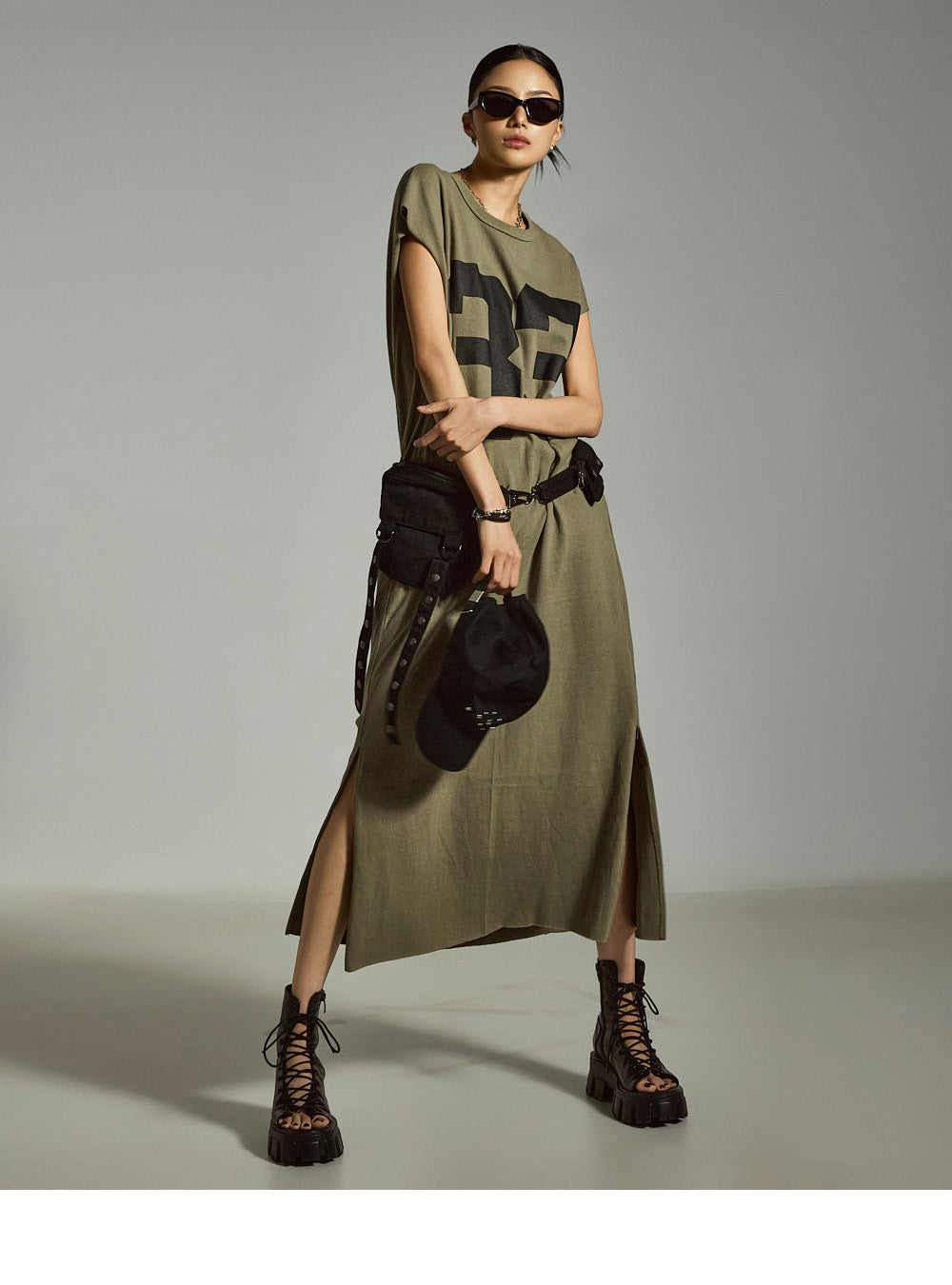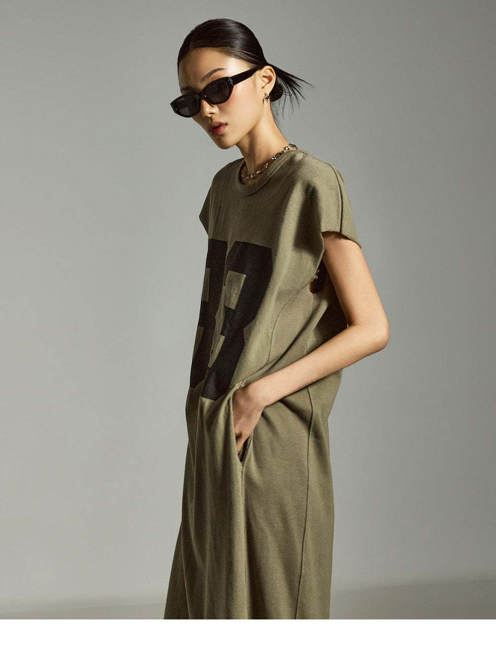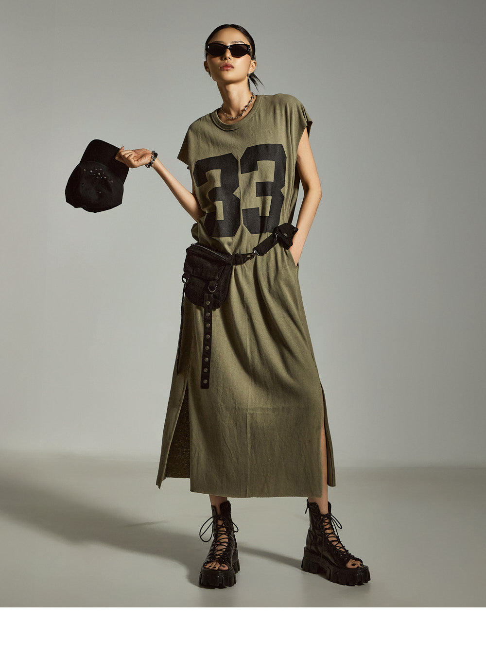 フロントのレタリングプリントと切りっぱなしのディテールが