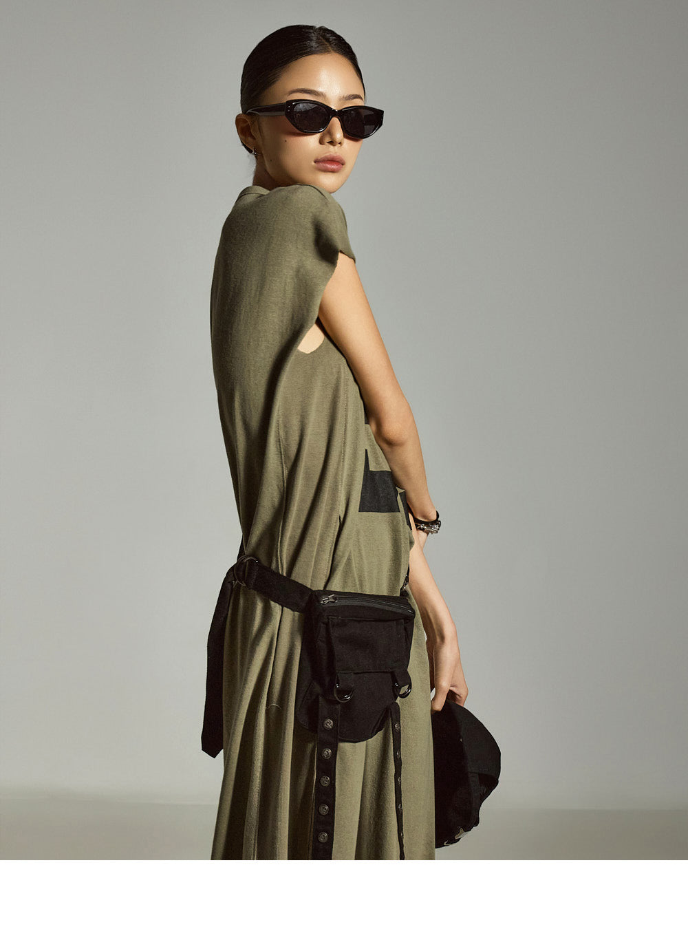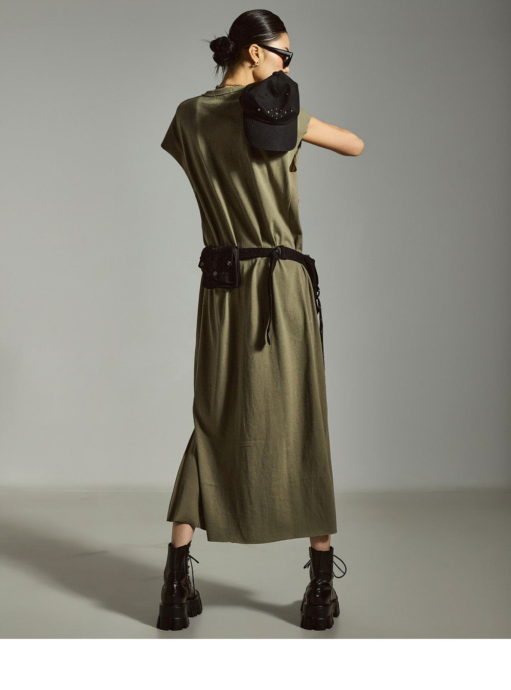 このロングドレスは、ユニークで気取らないスタイリッシュな外観が特徴です。