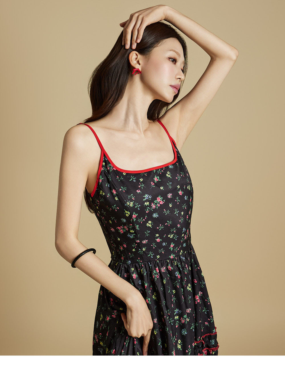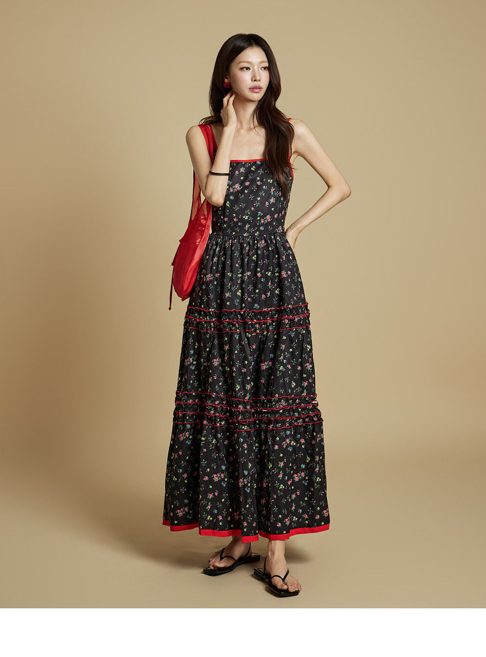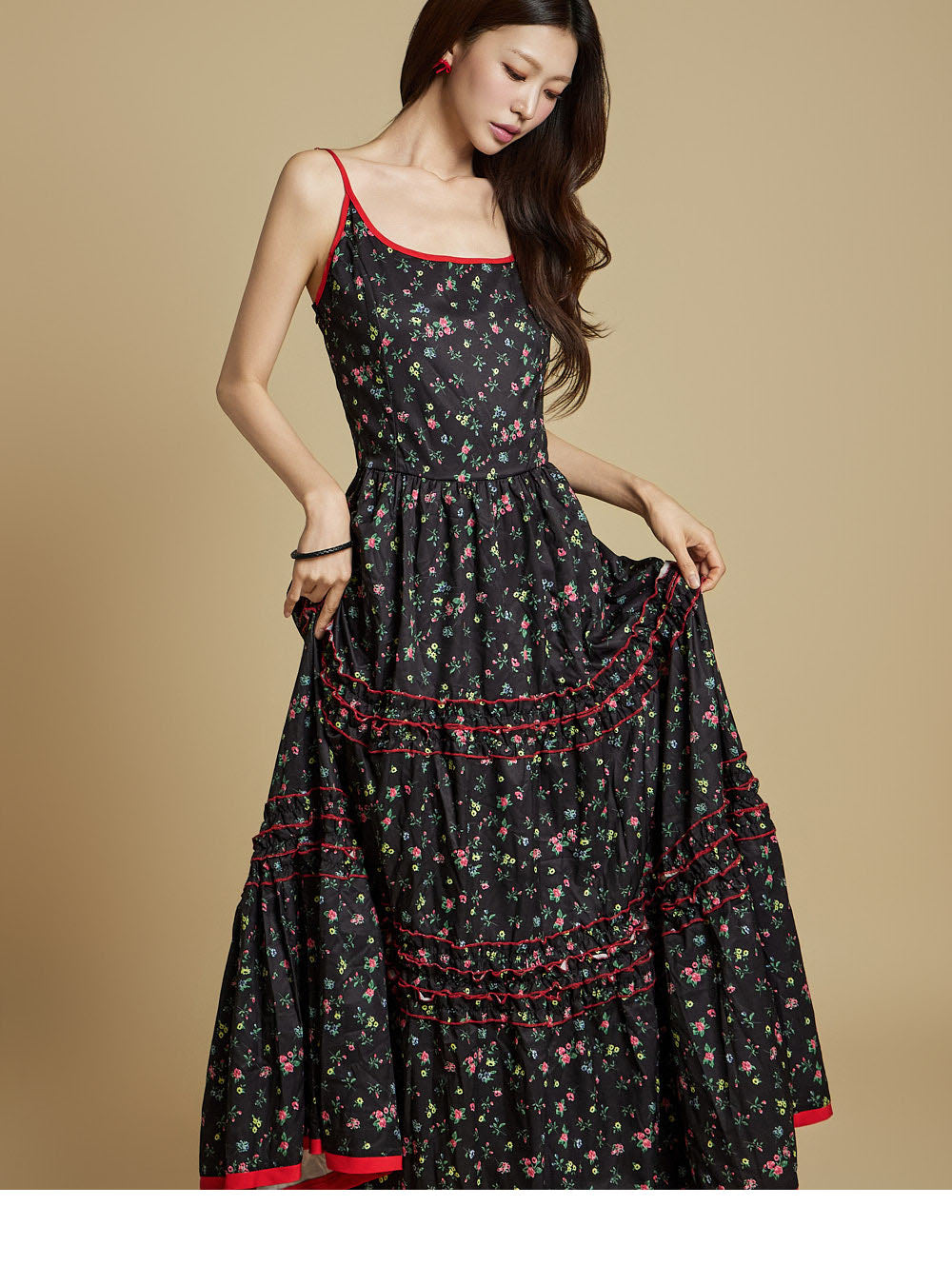 この花柄のカラーブロックドレスは、活気とさわやかな雰囲気をもたらします。