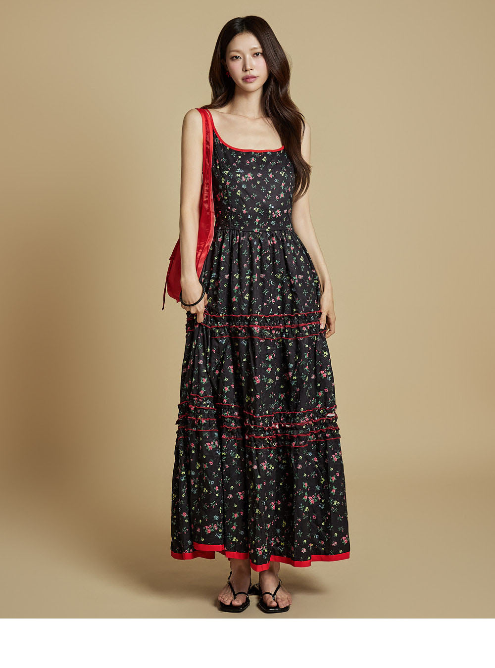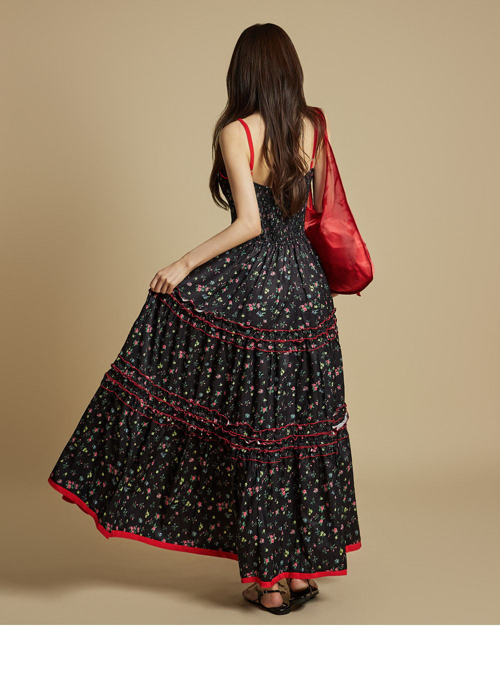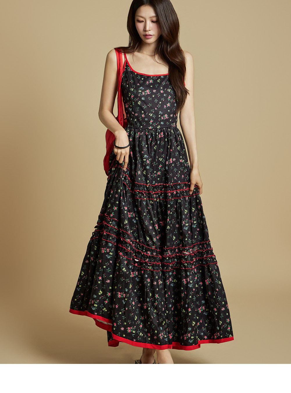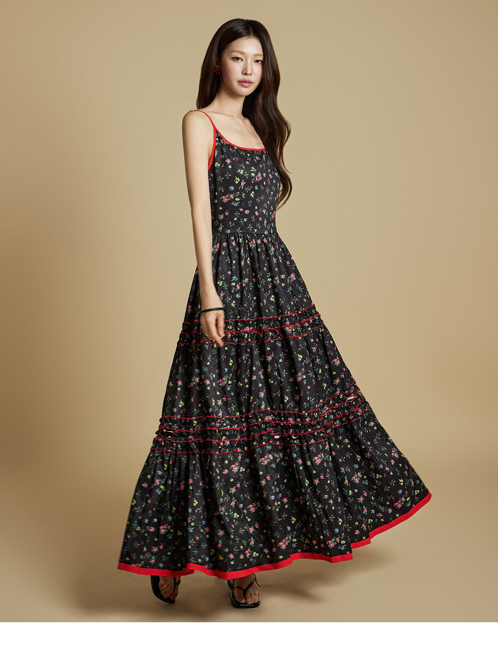 この花柄のカラーブロックドレスは、活気とさわやかな雰囲気をもたらします。