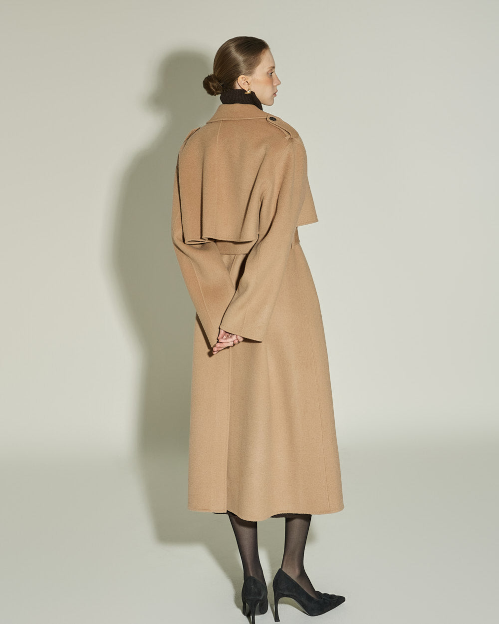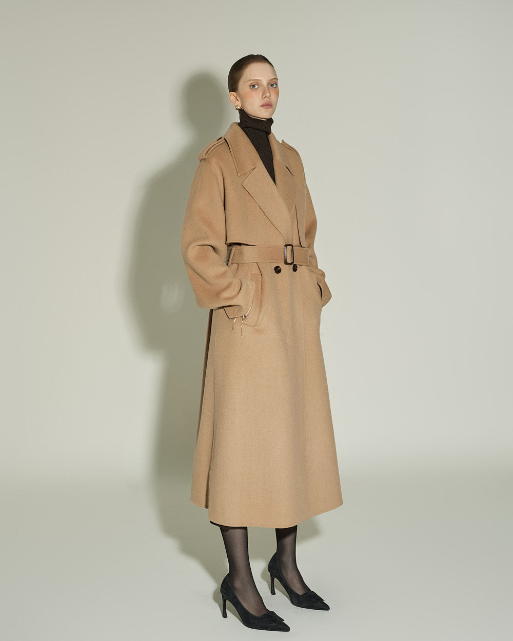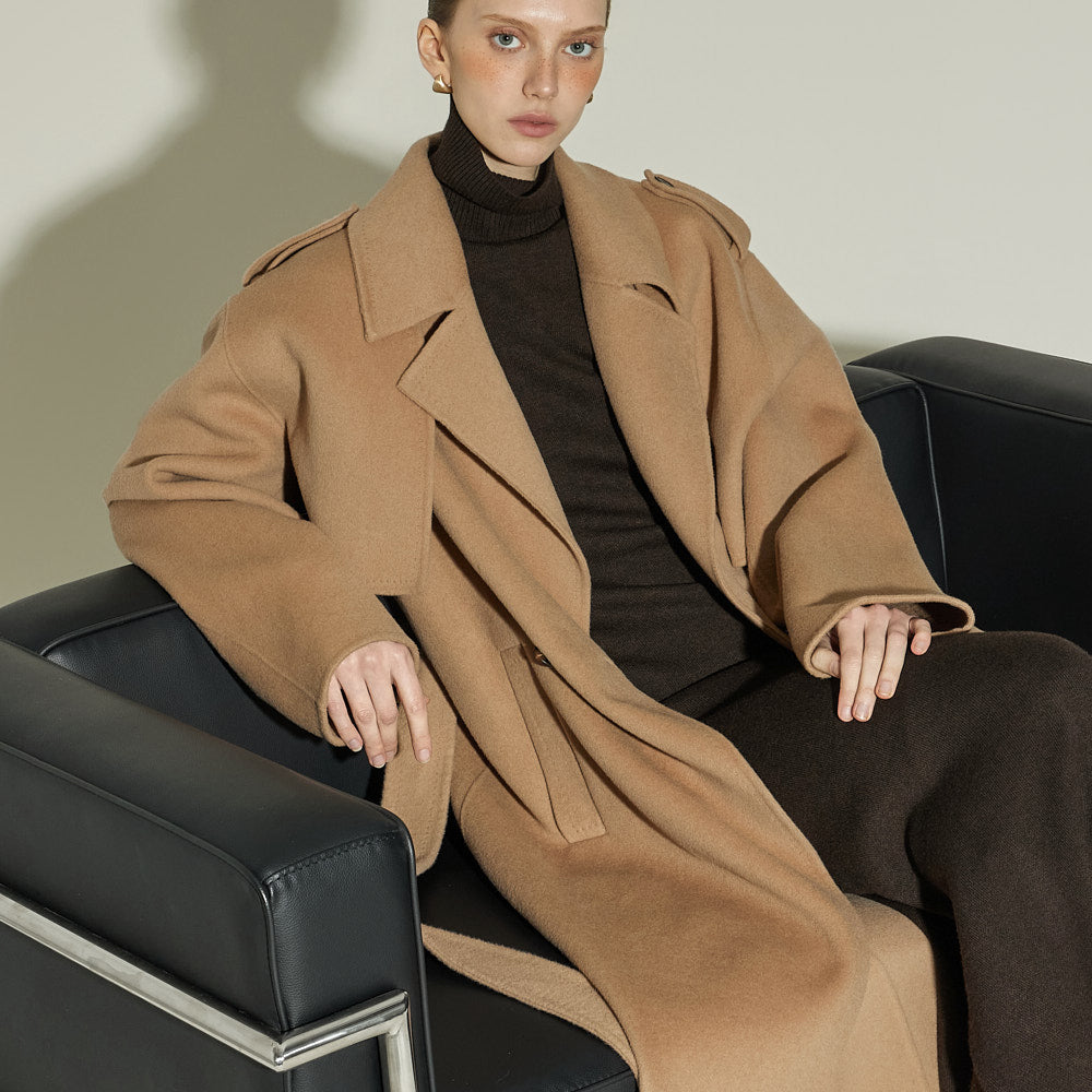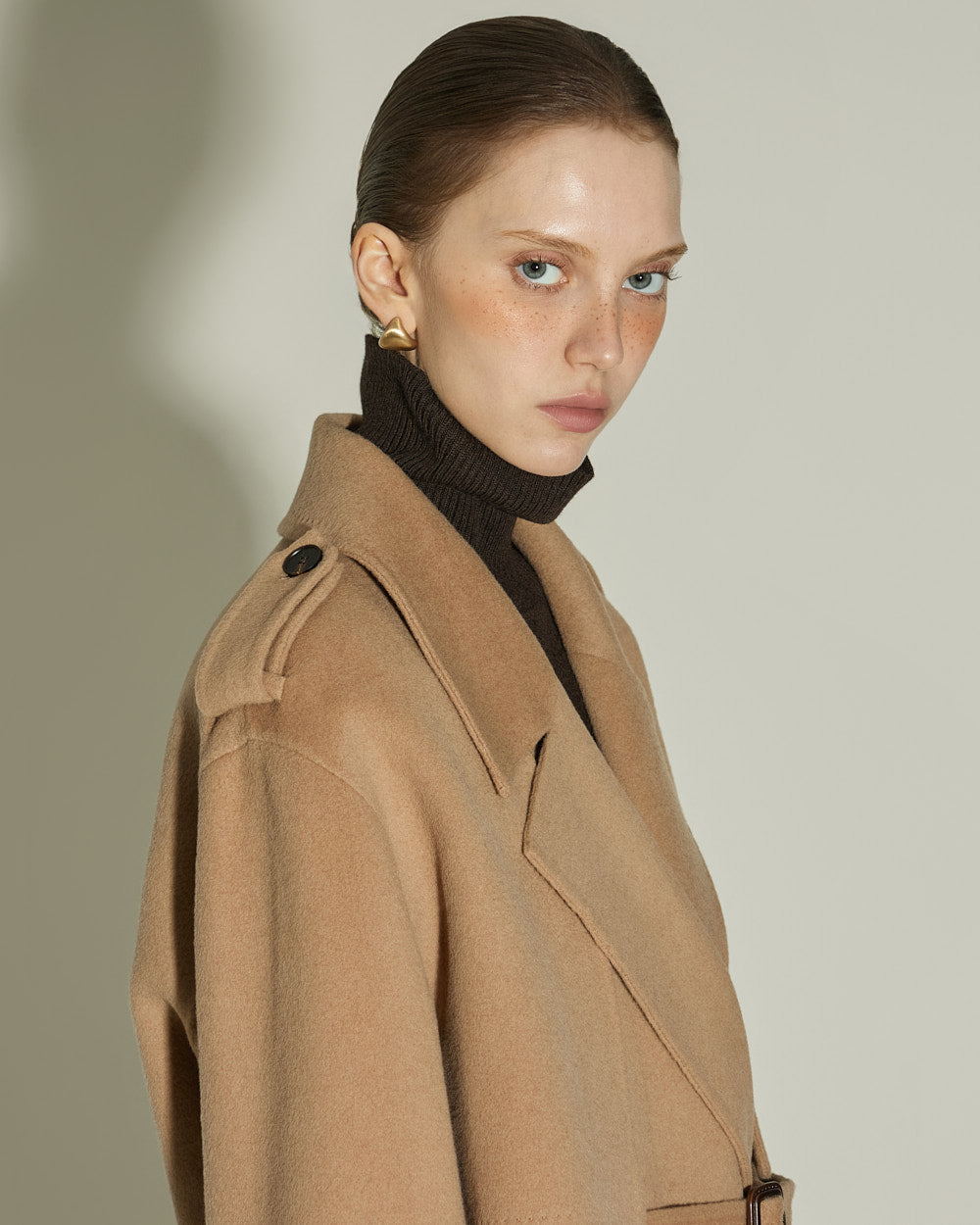 The 174cm model is wearing size ONE in DARK BROWN.