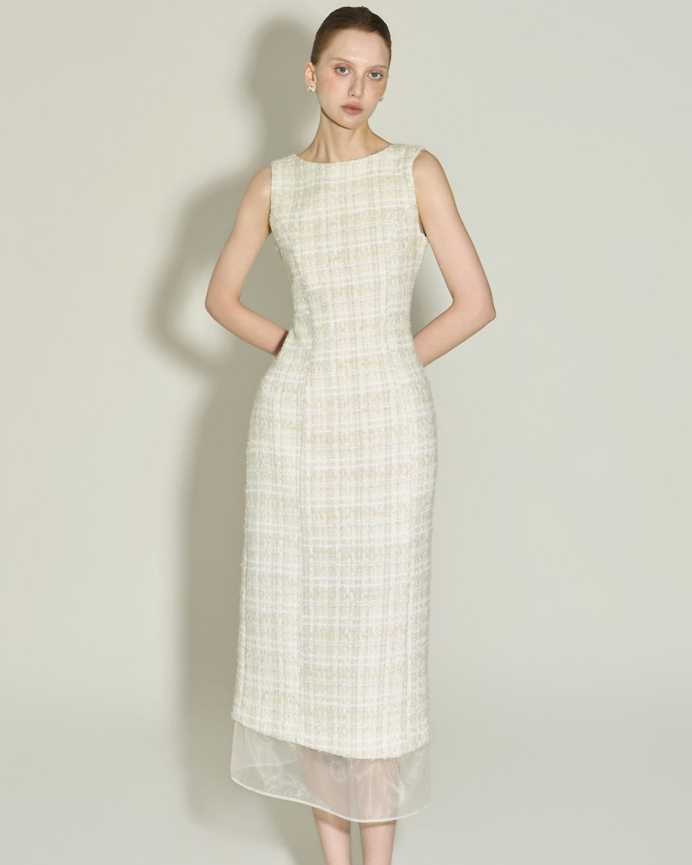 This elegant wool tweed dress.