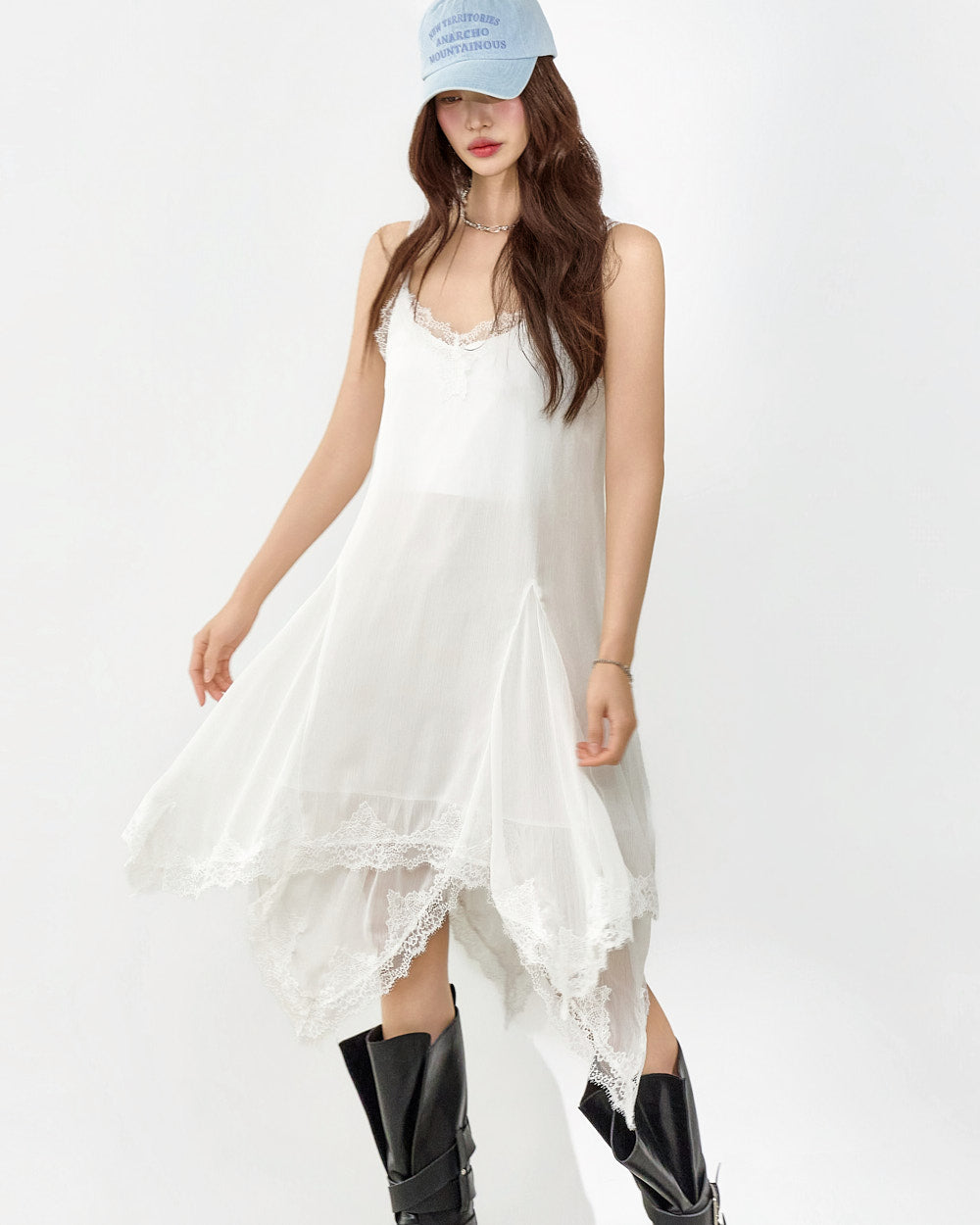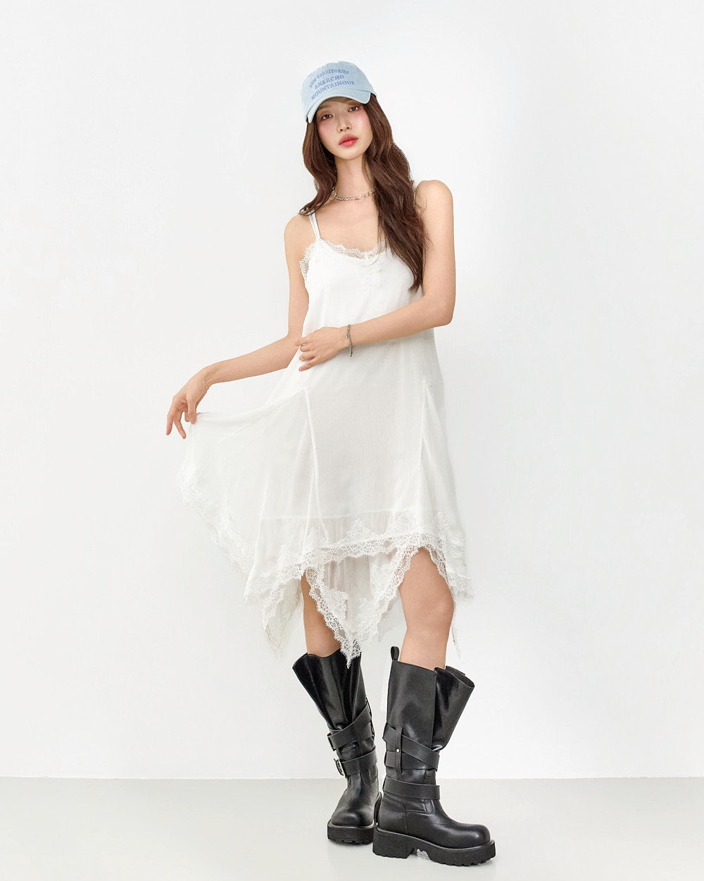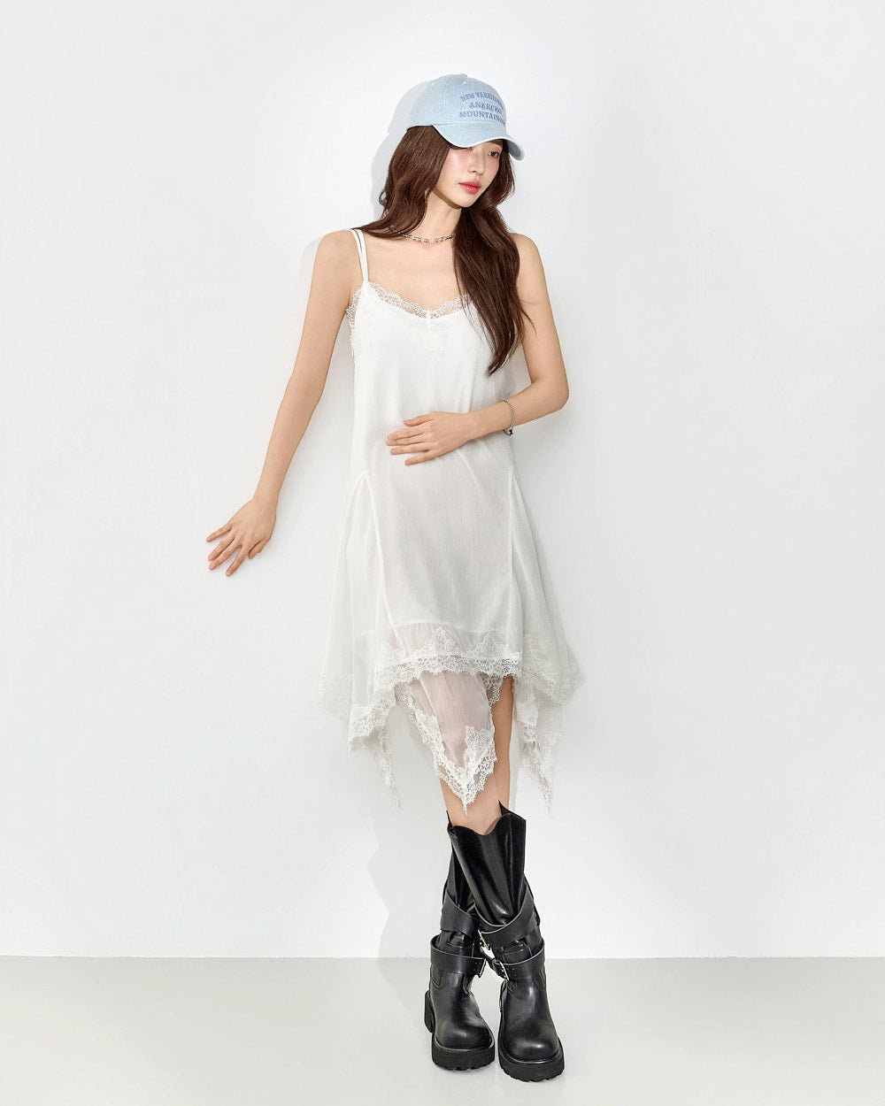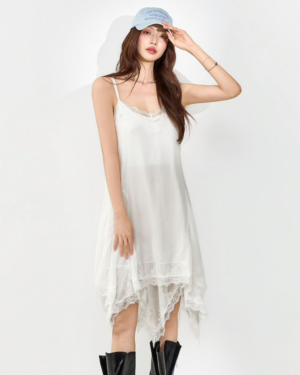 This slip dress exudes a unique style.