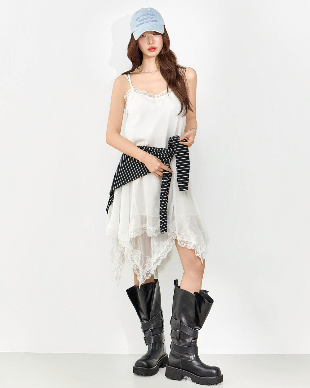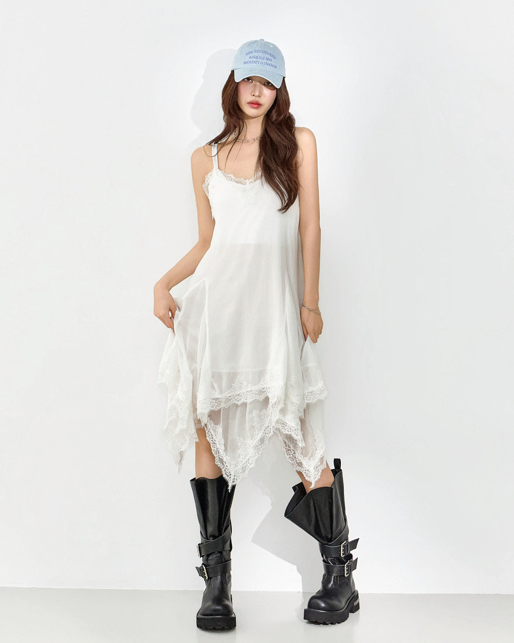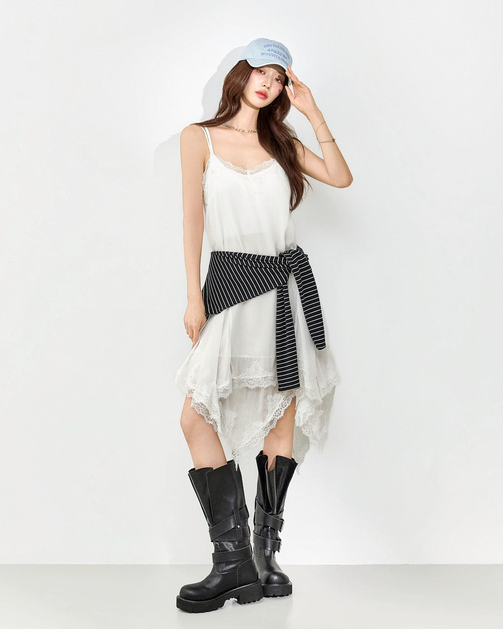 This slip dress exudes a unique style.