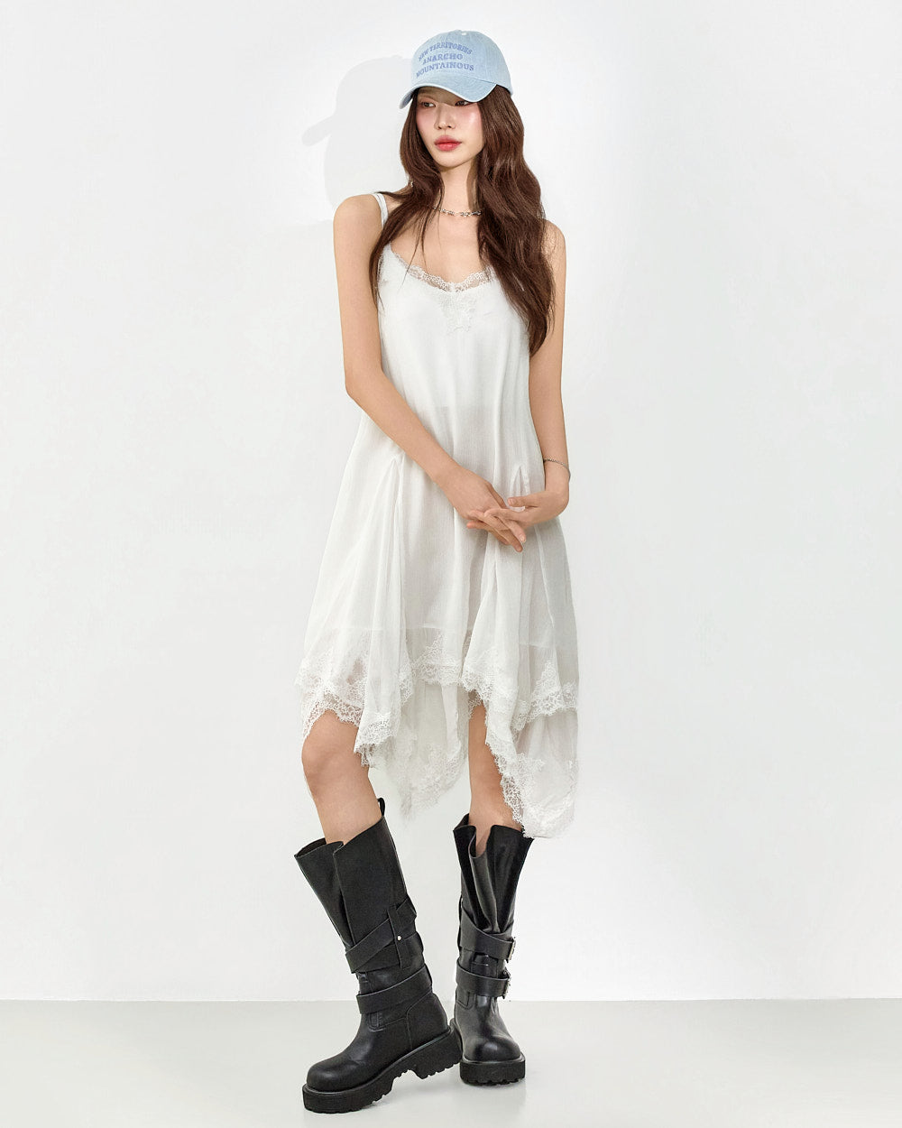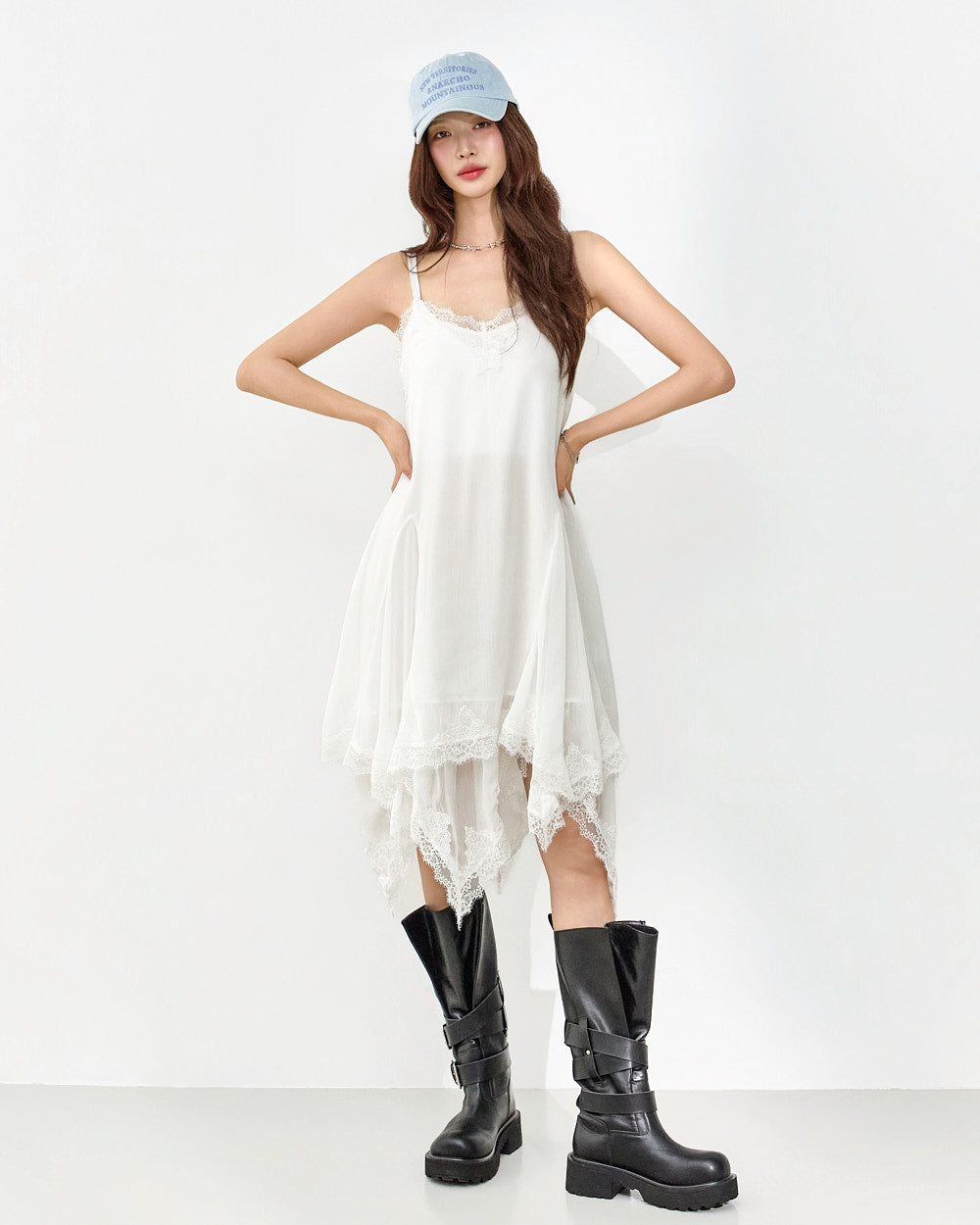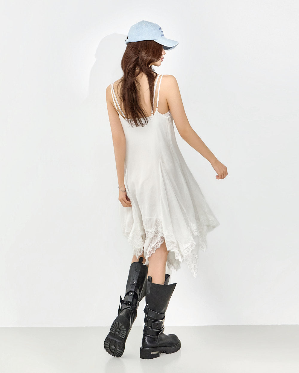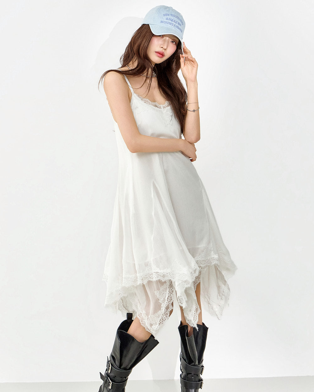 This slip dress exudes a unique style.