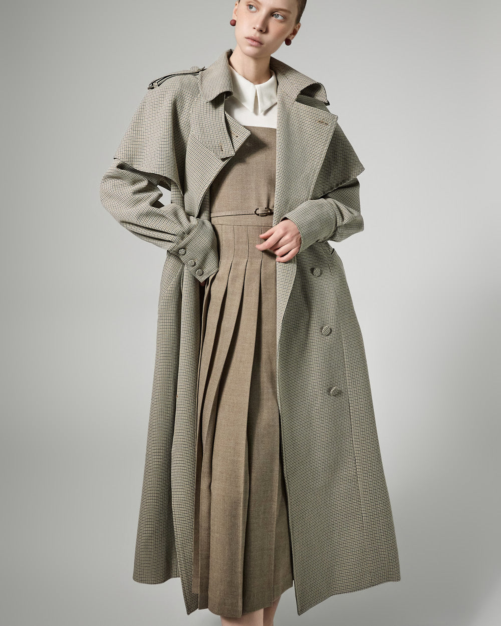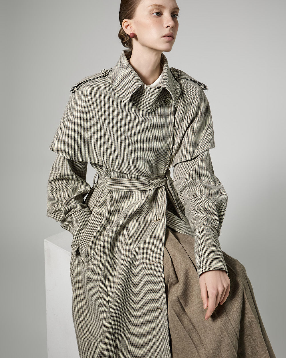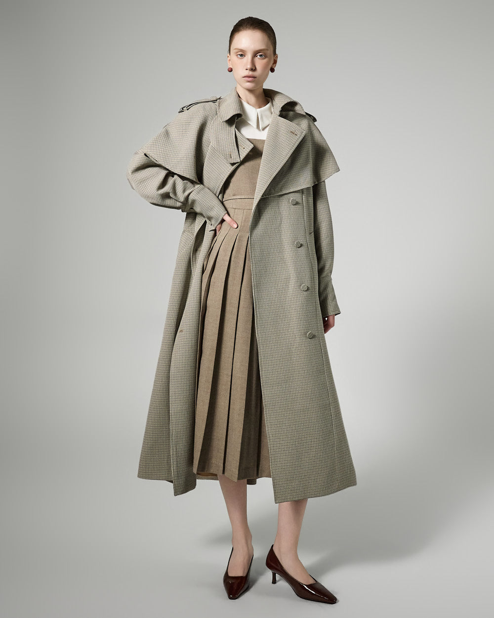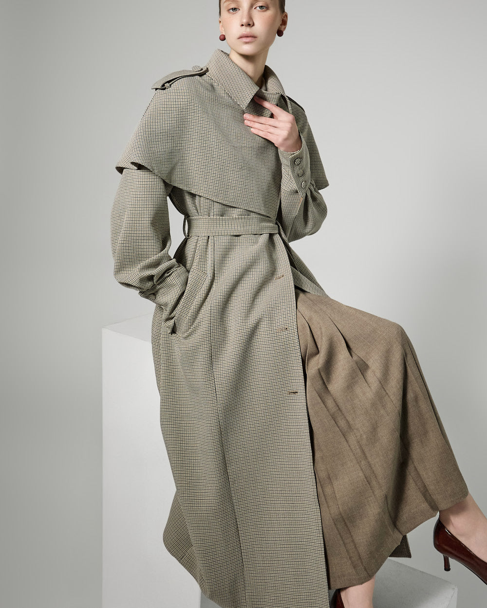 This two-tone dress with a belt set exudes a feminine and modern vibe.