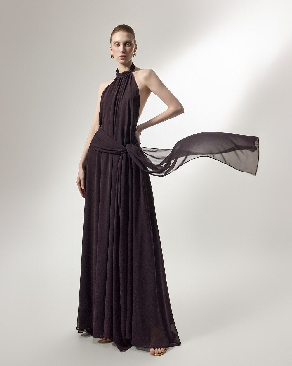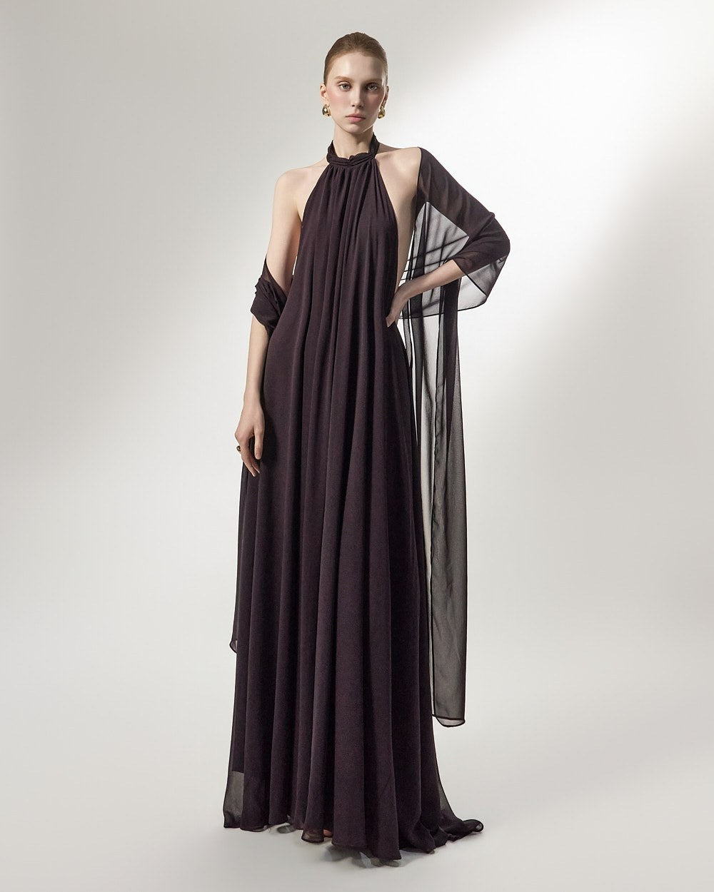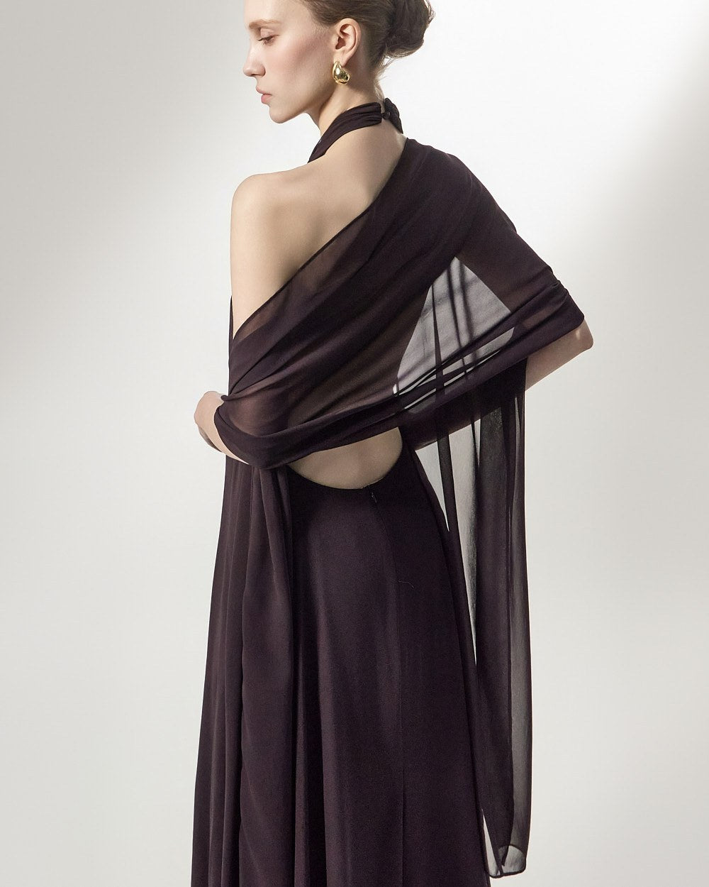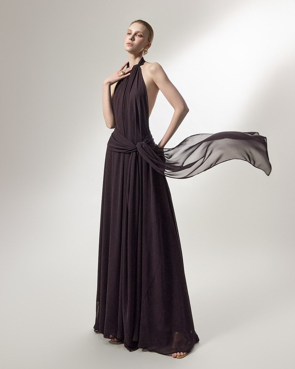 the softly flowing silhouette adds a luxurious atmosphere,