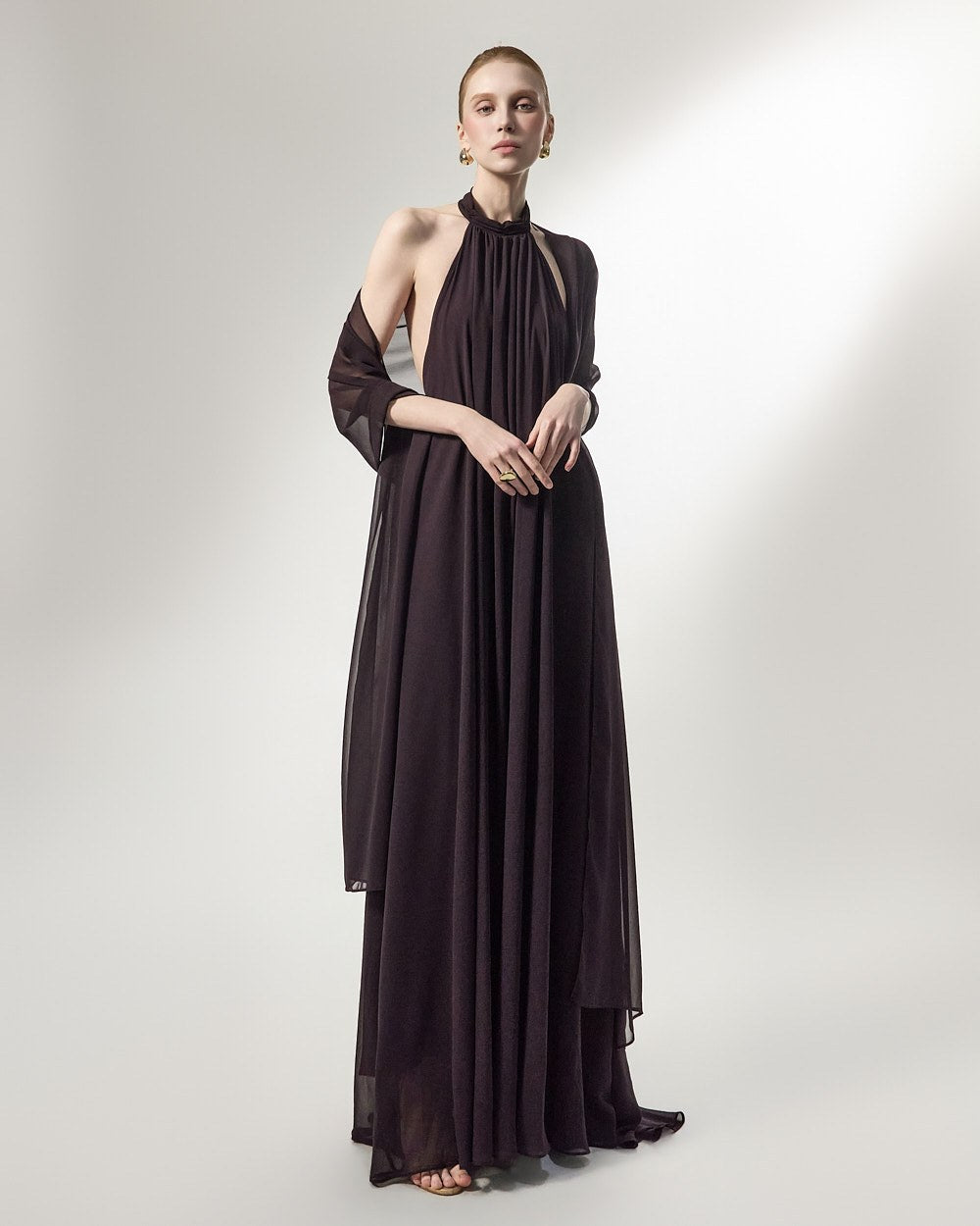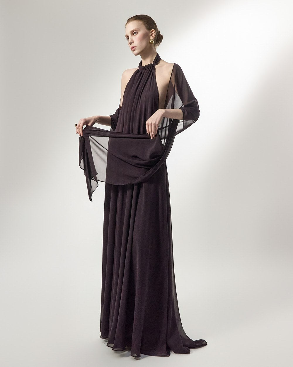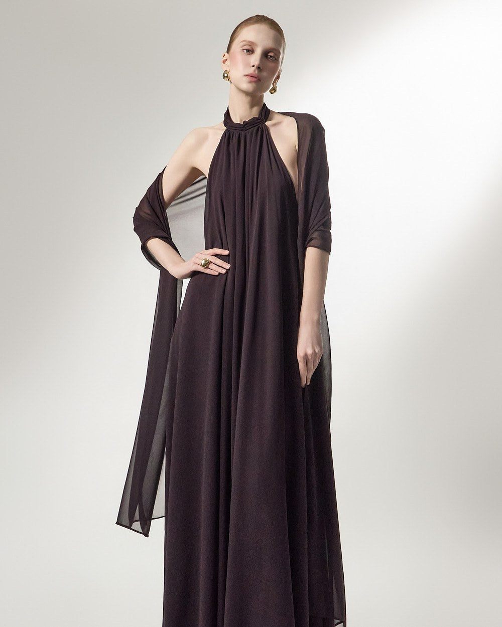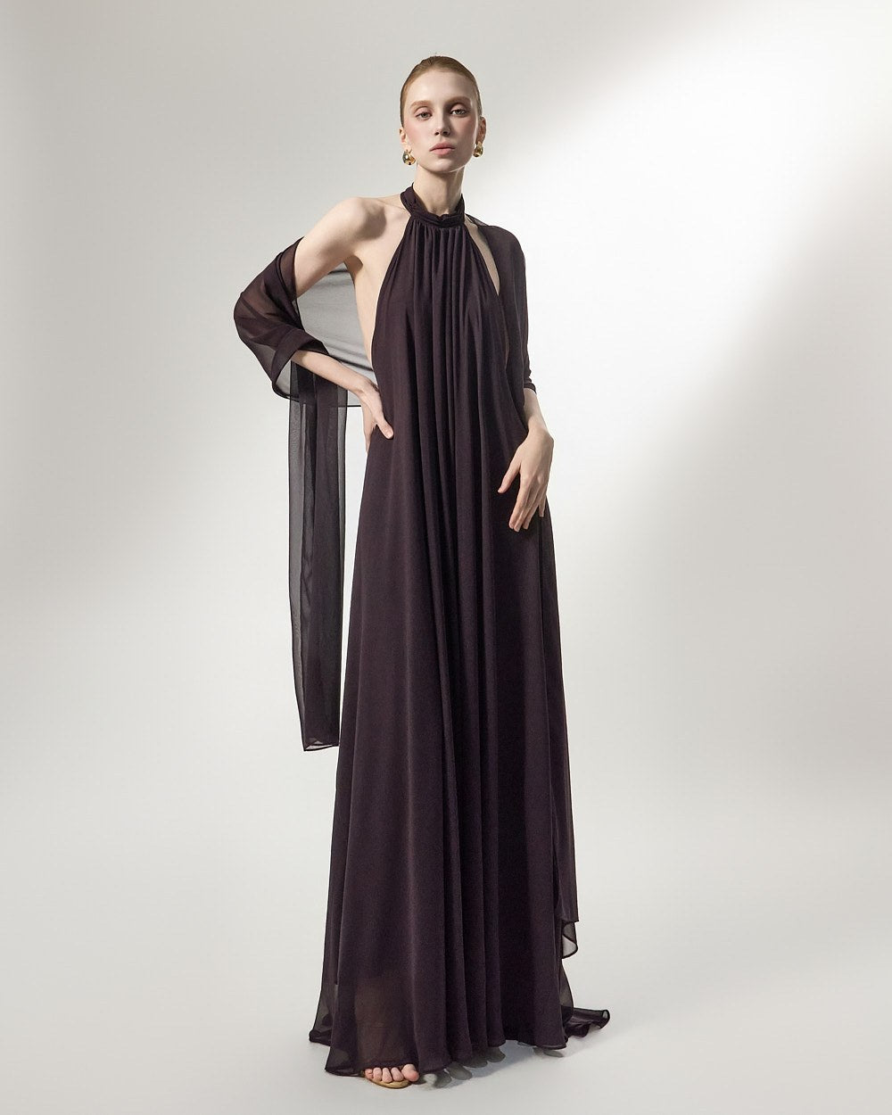 the softly flowing silhouette adds a luxurious atmosphere,