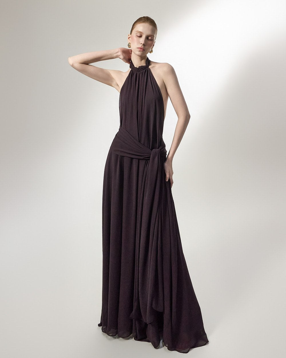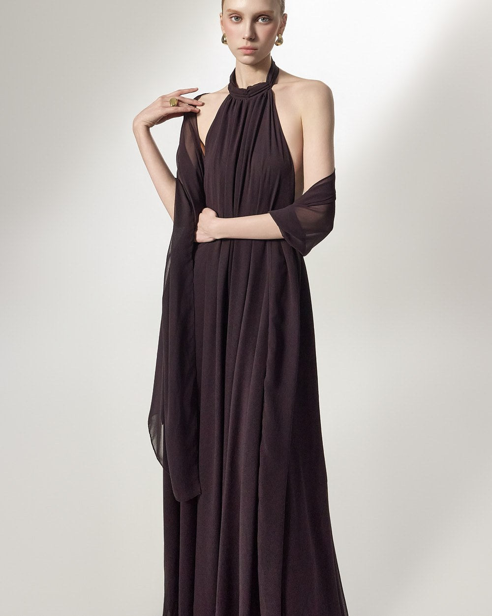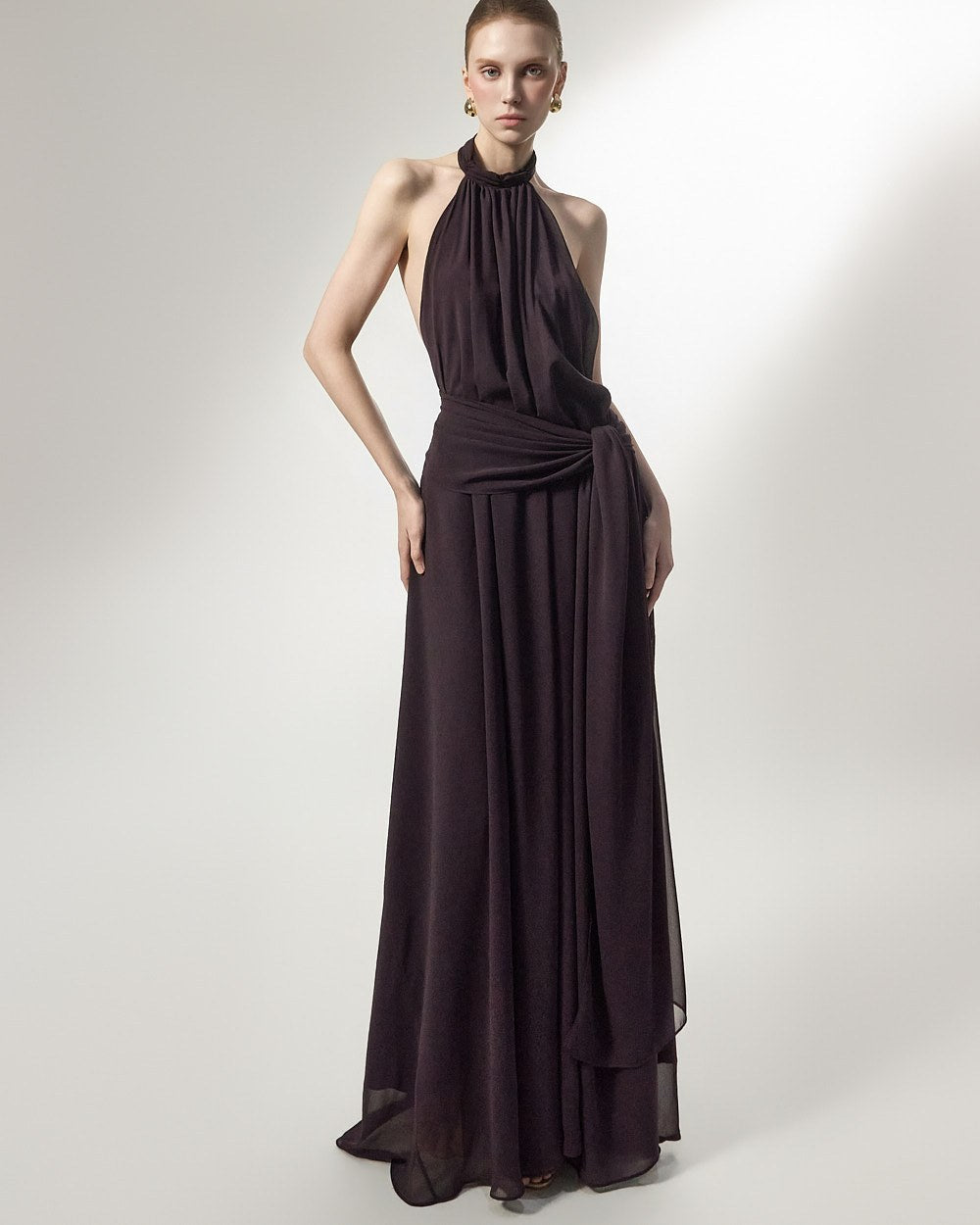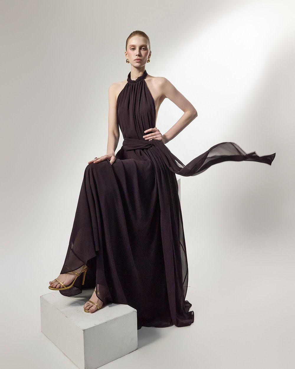 the softly flowing silhouette adds a luxurious atmosphere,