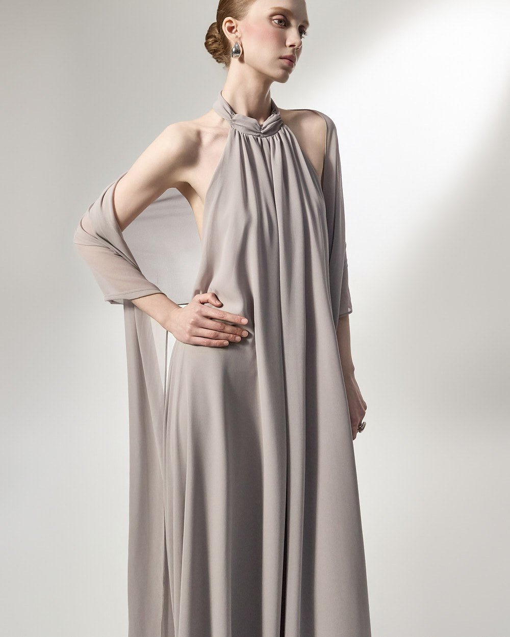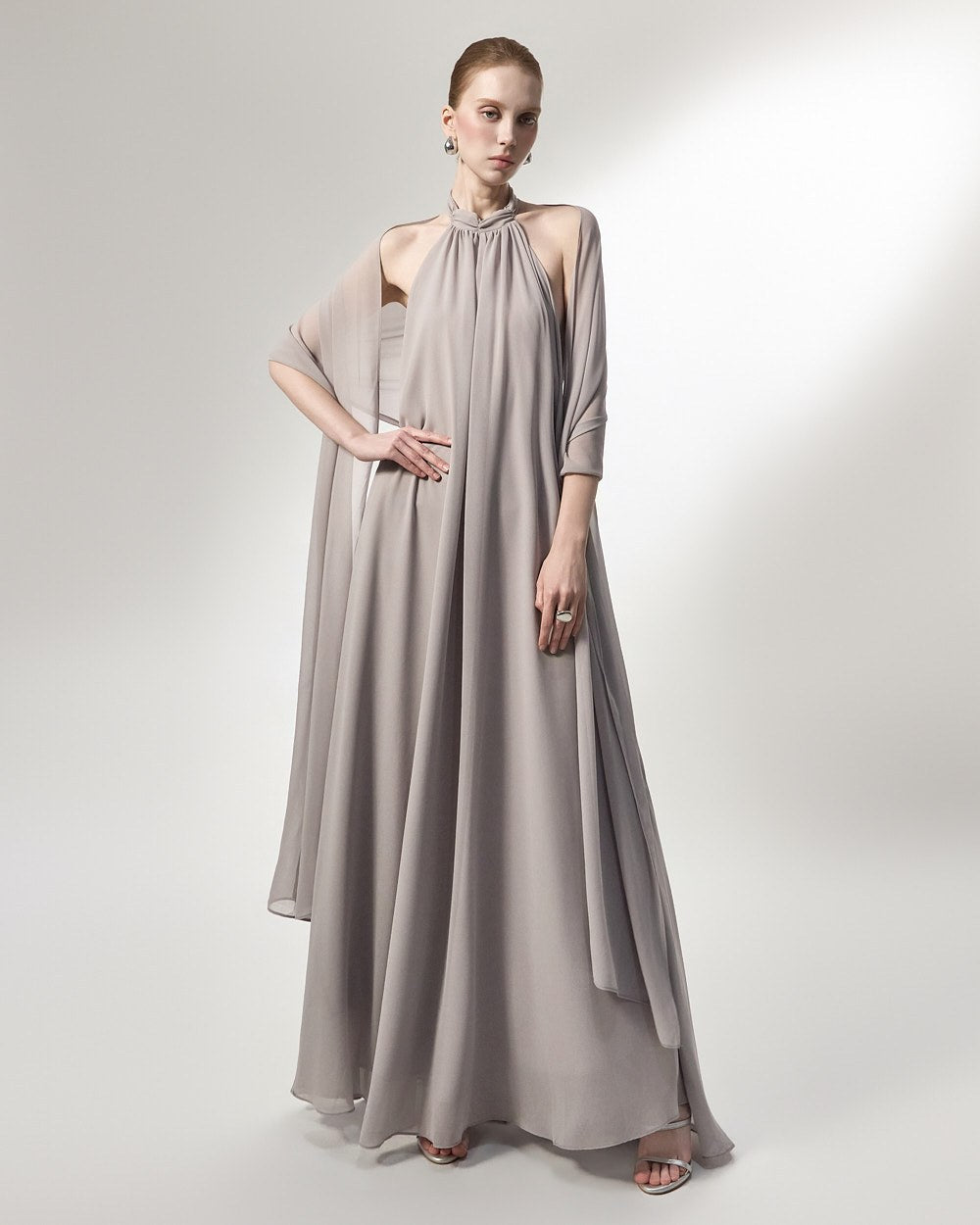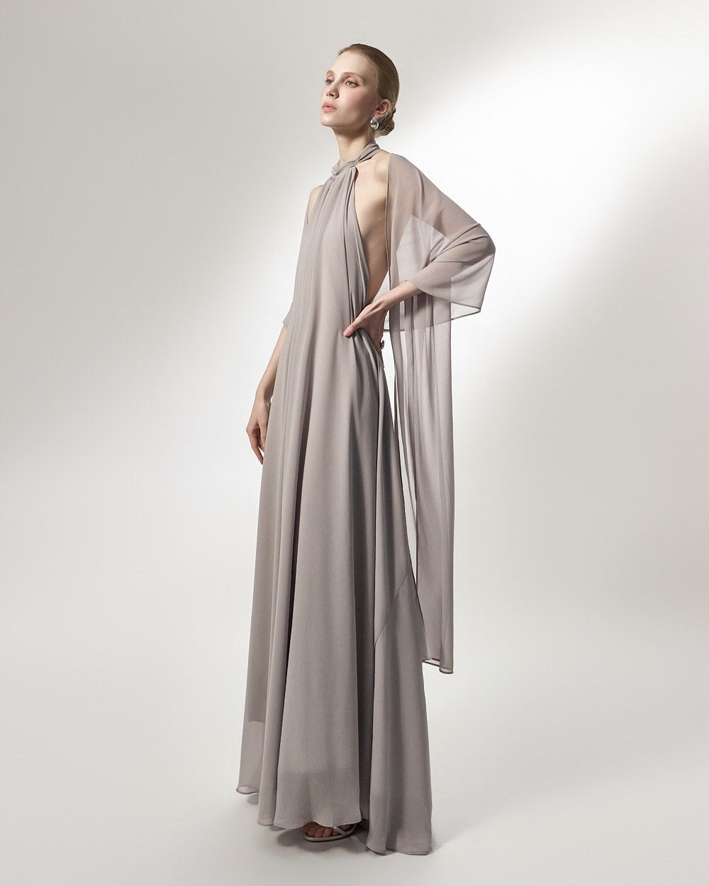 the softly flowing silhouette adds a luxurious atmosphere,