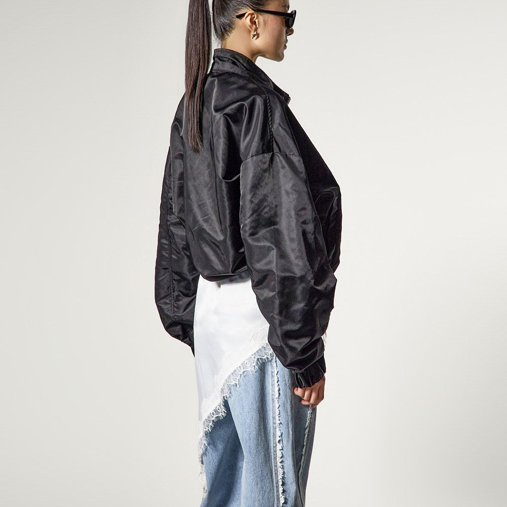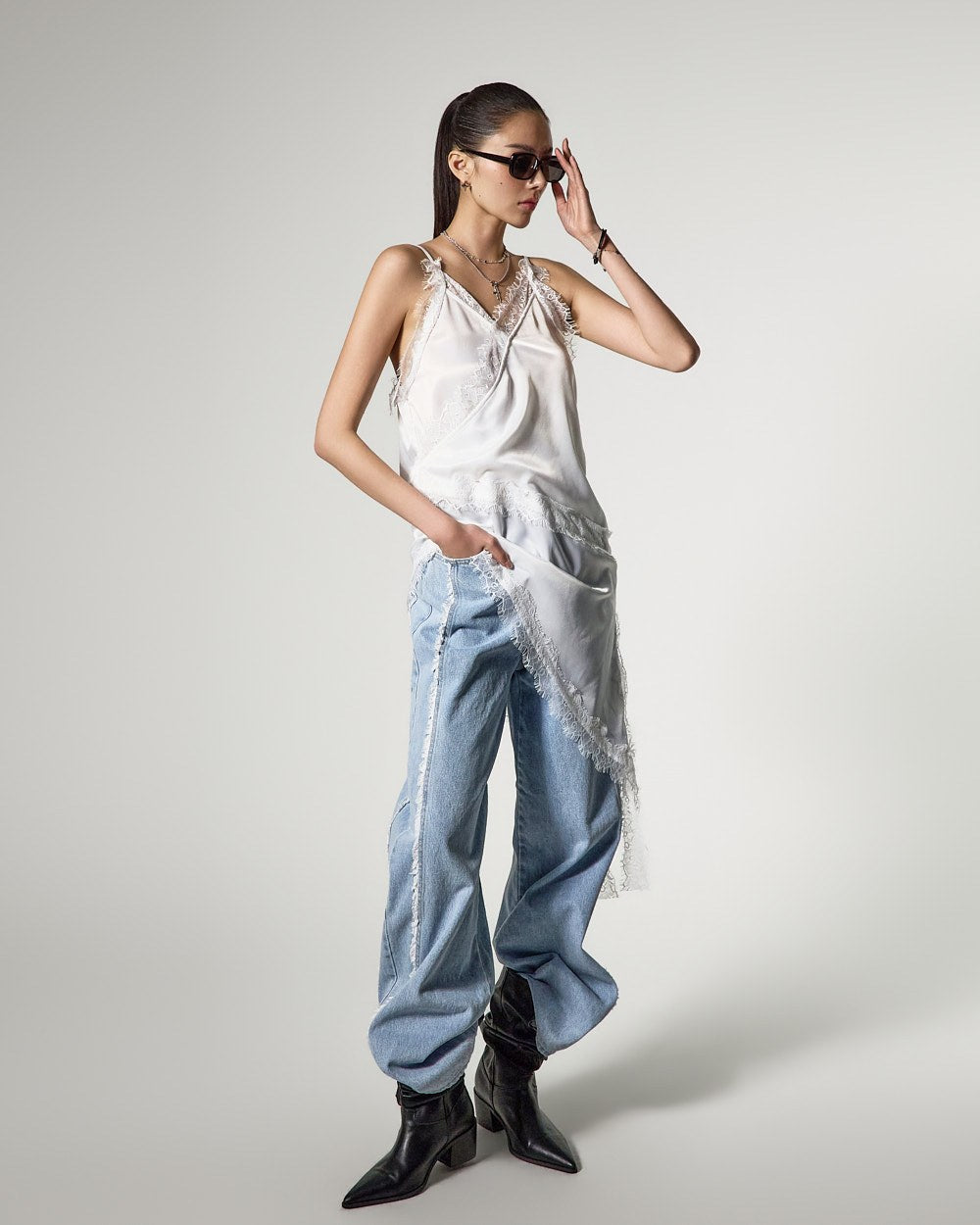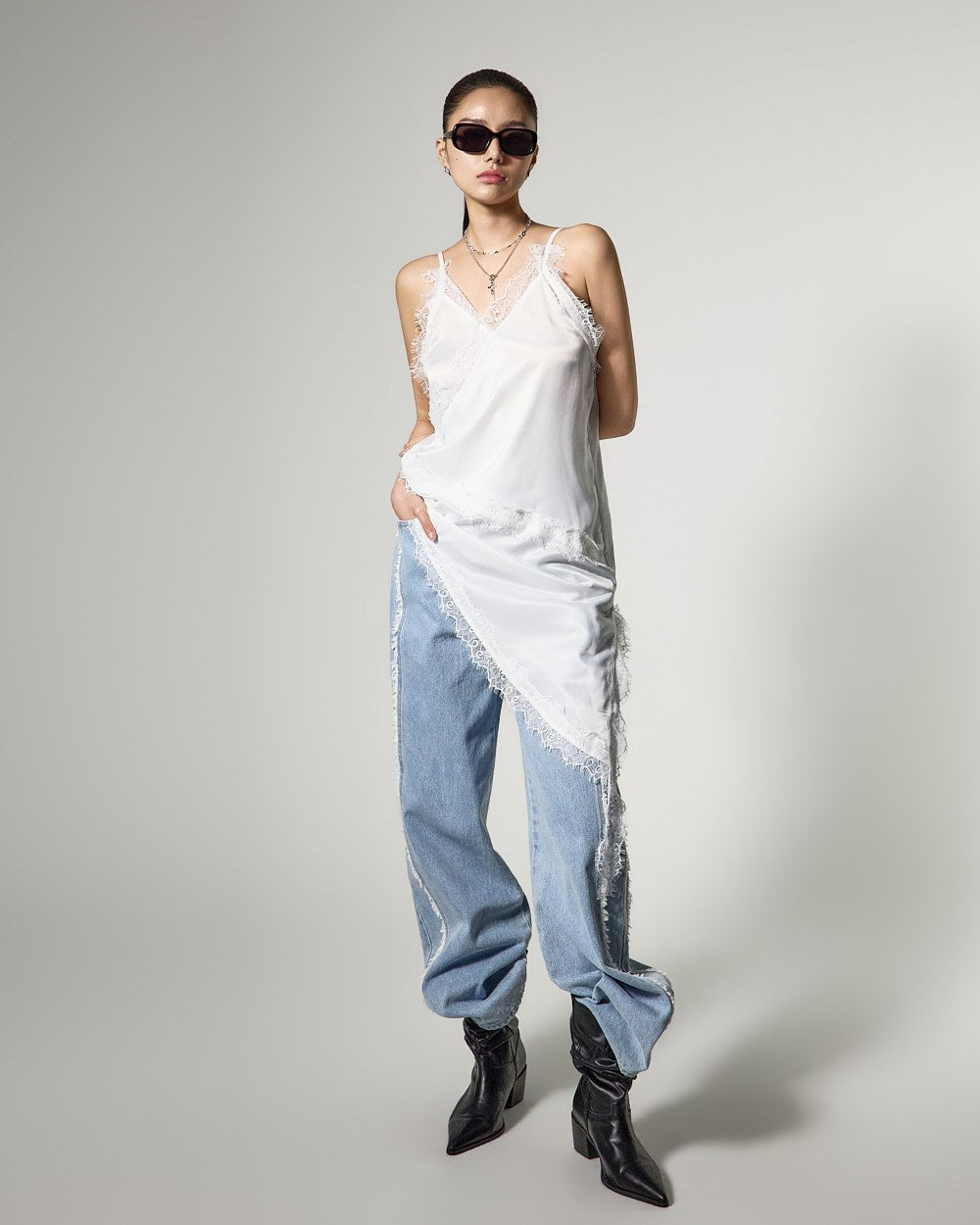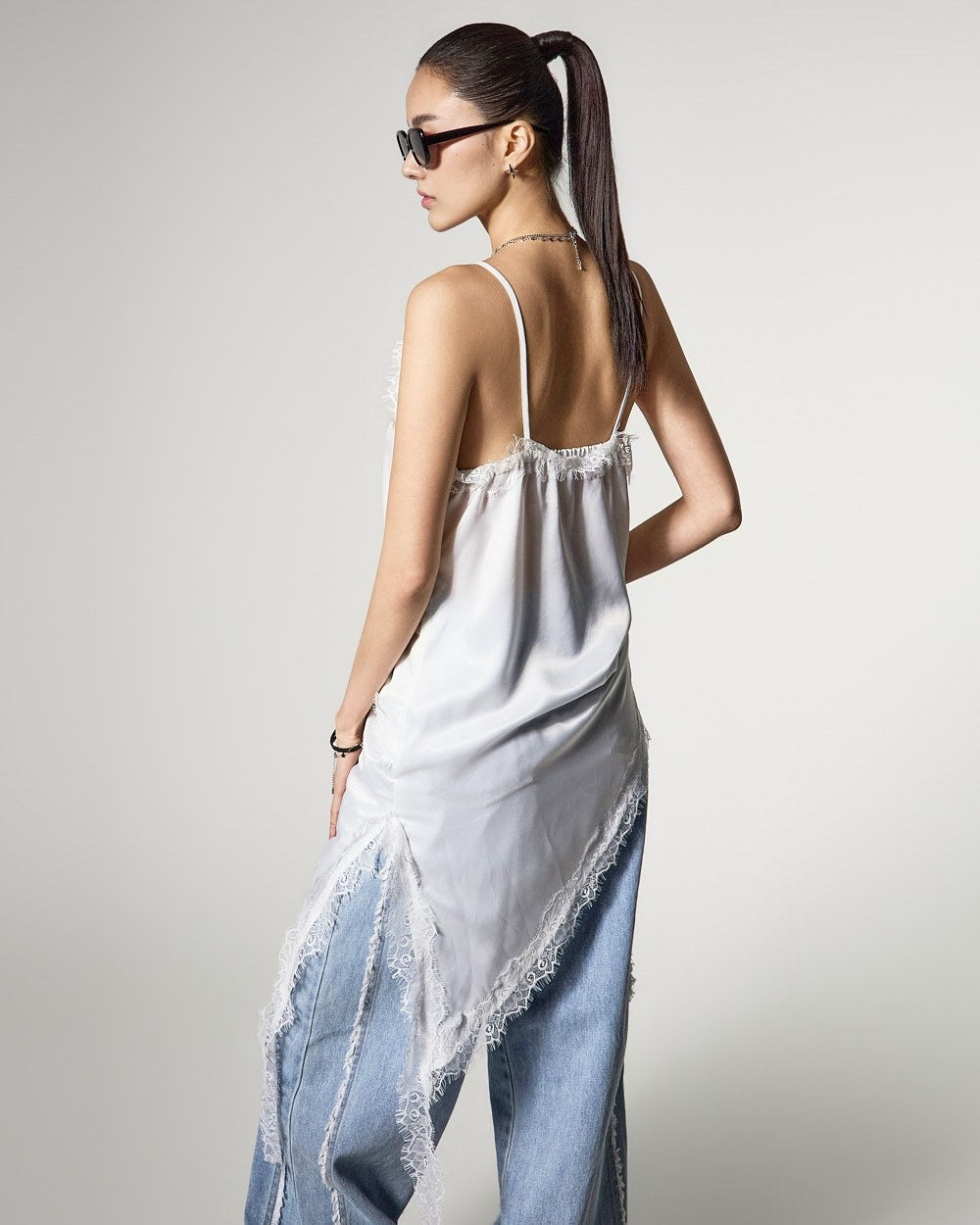 アシンメトリーなヘムラインで、スタイリッシュでおしゃれなシルエットを完成させます。