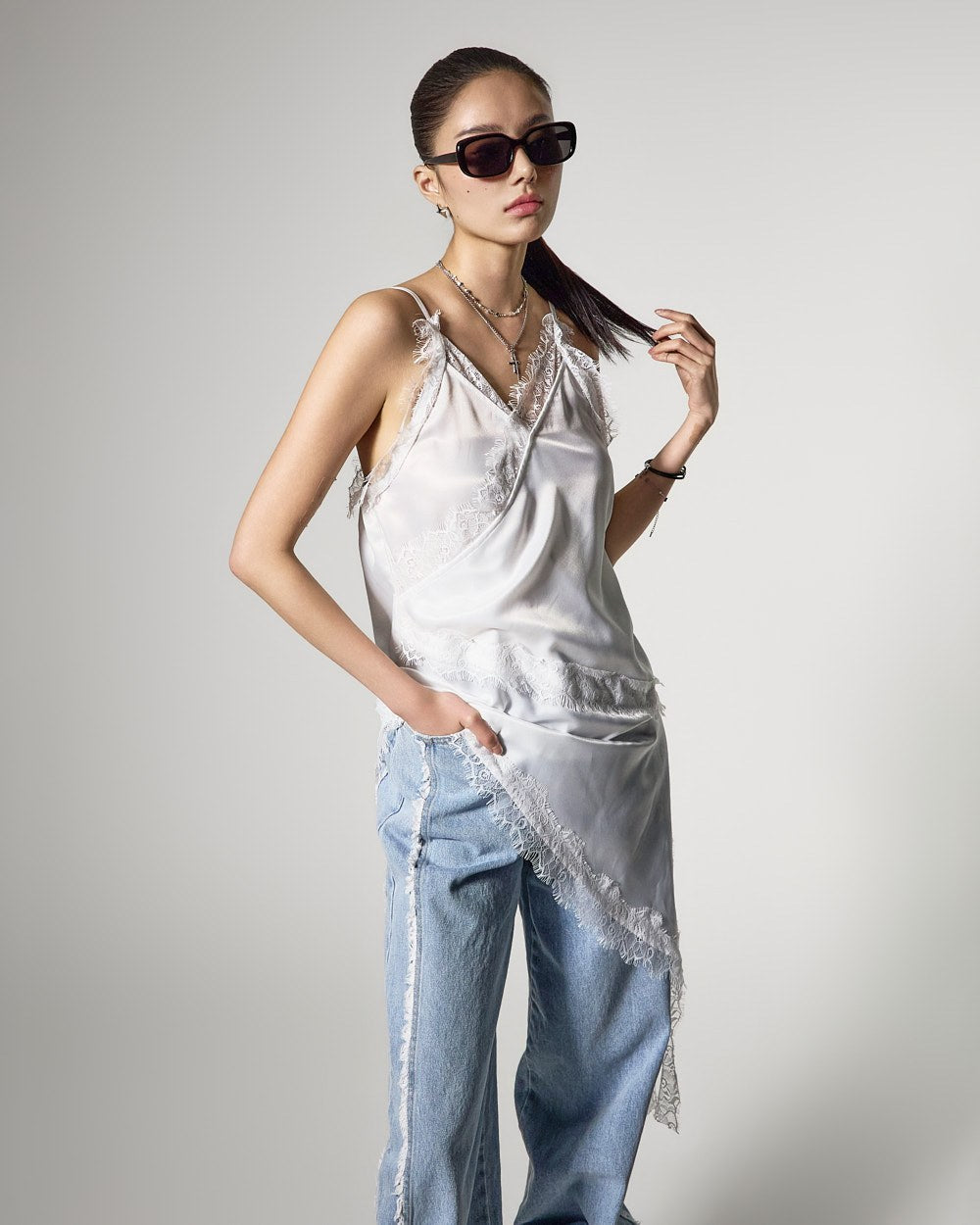 レース素材を加え、華奢で洗練された雰囲気を演出します。