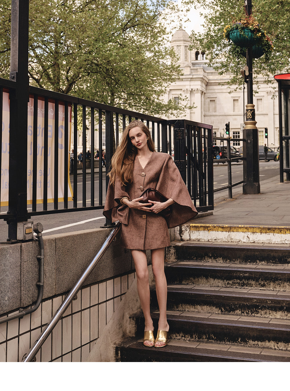 モデルは身長174cm、ブラウンのSサイズを着用。