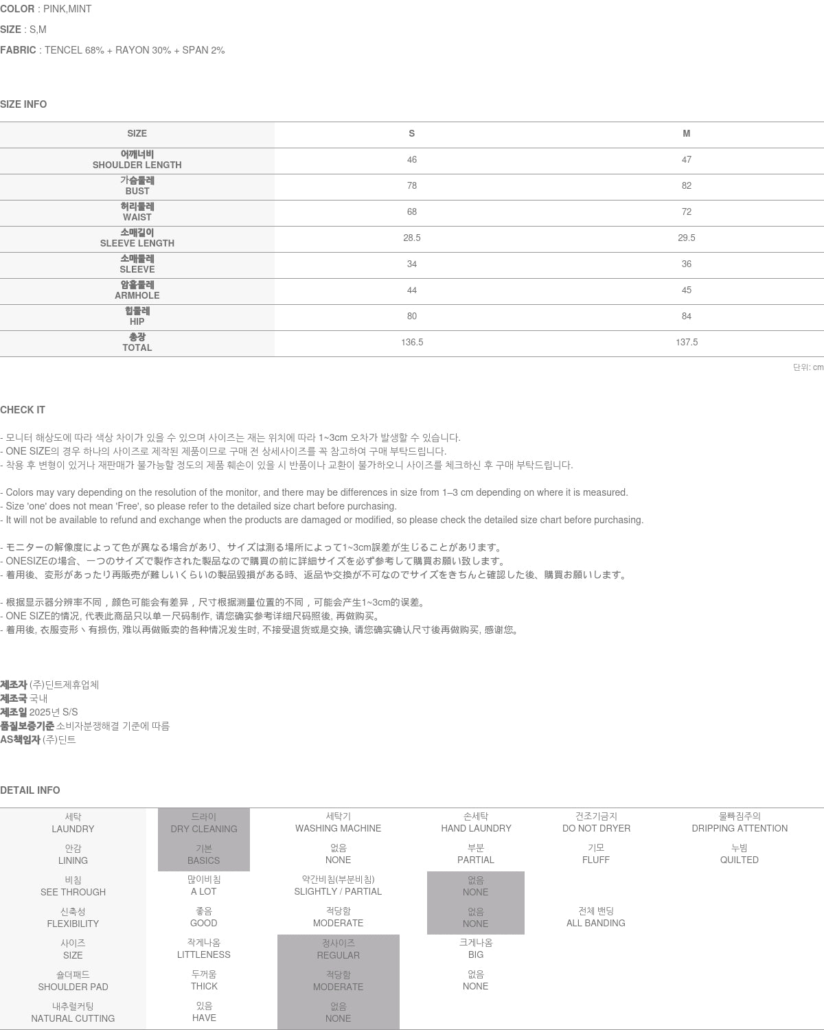 モデルの身長は174cmで、MINTのSサイズを着用しています。