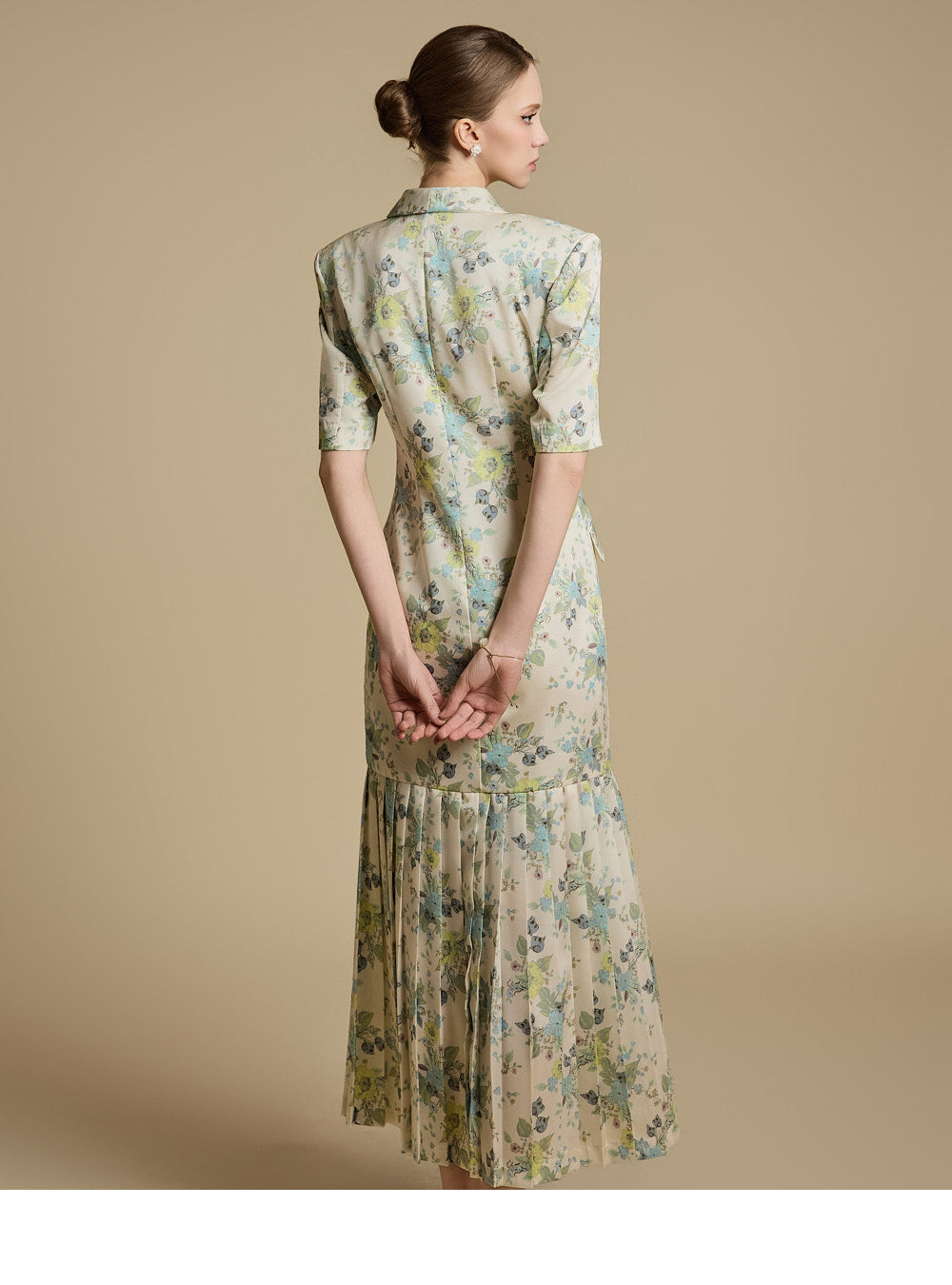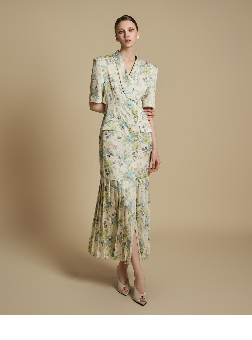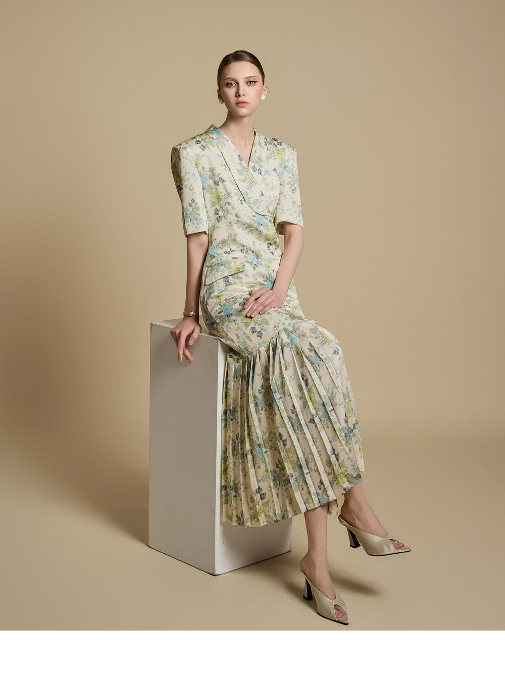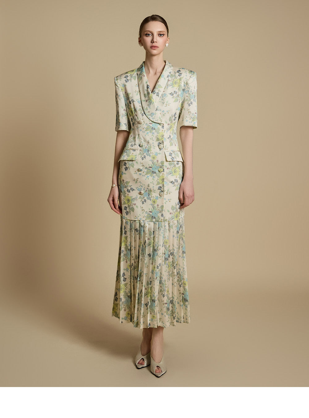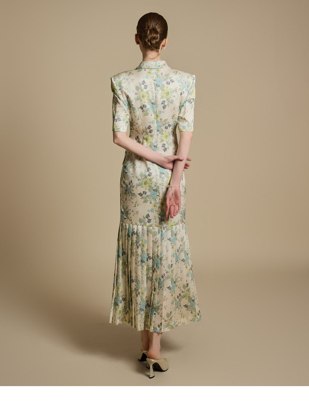 裾のプリーツディテールが優雅な動きと洗練さを演出します。