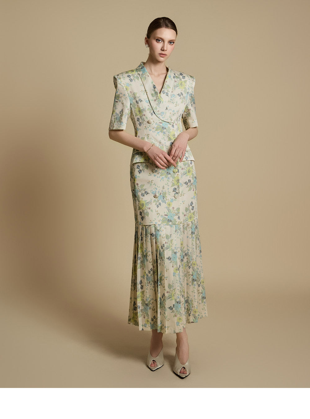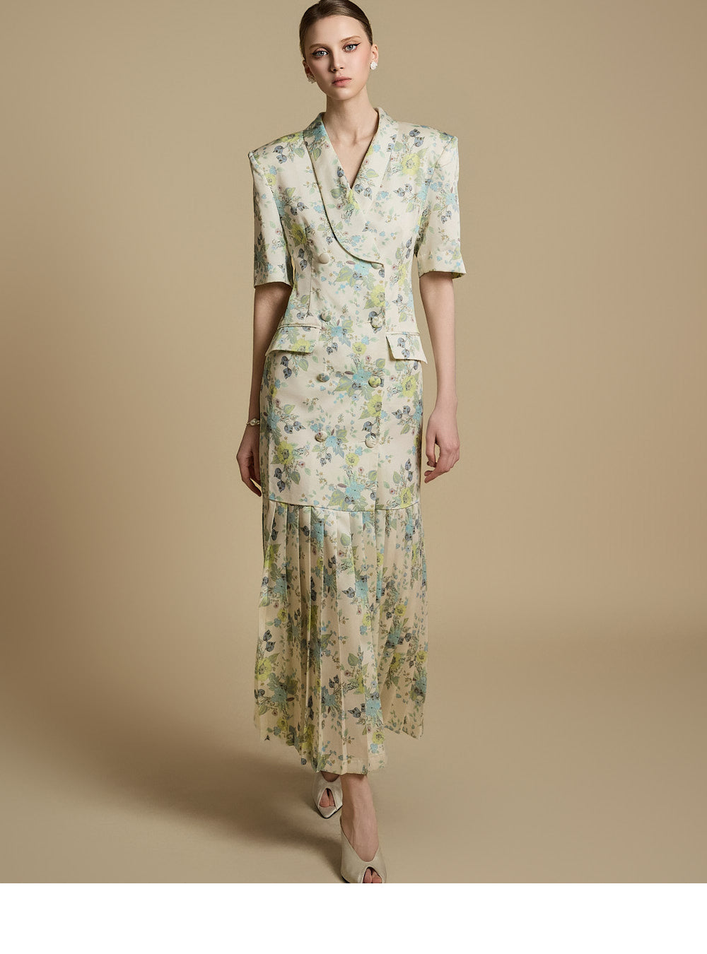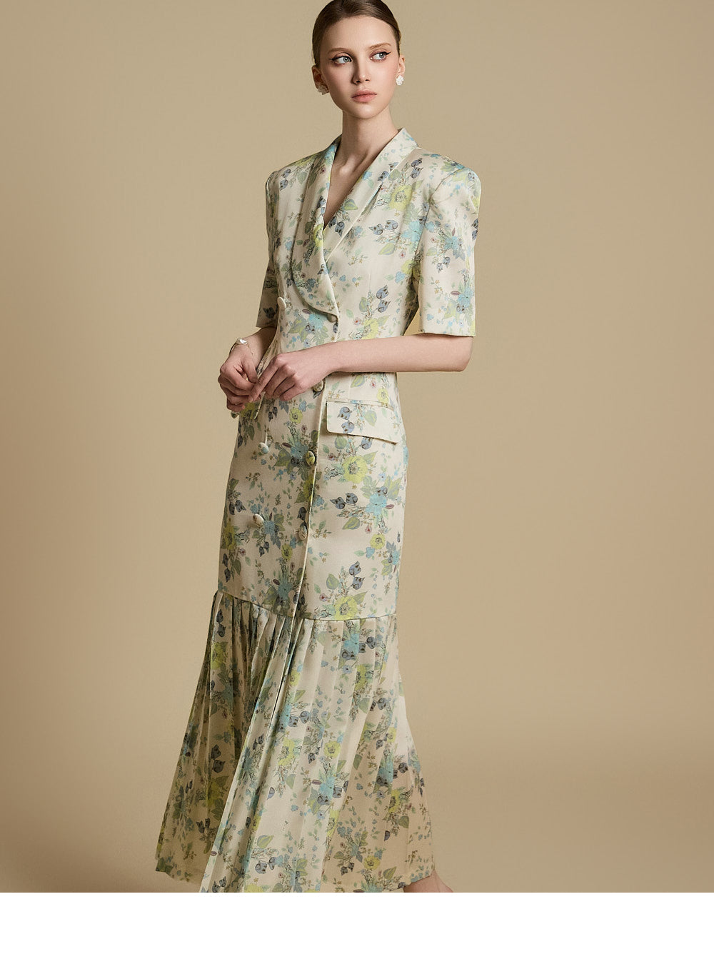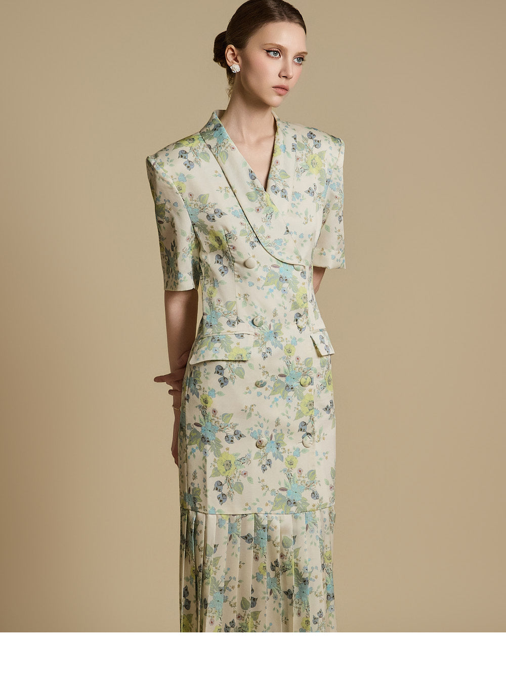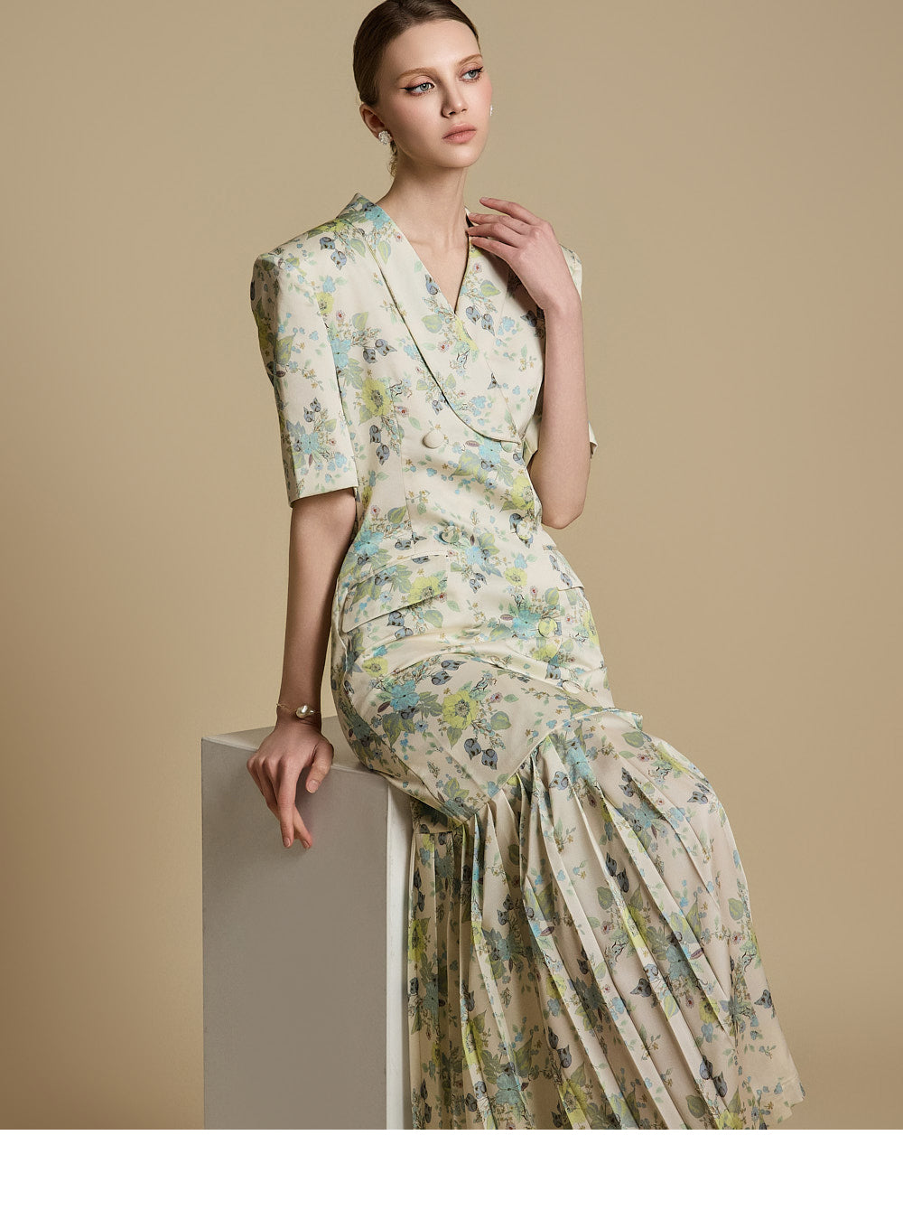 裾のプリーツディテールが優雅な動きと洗練さを演出します。