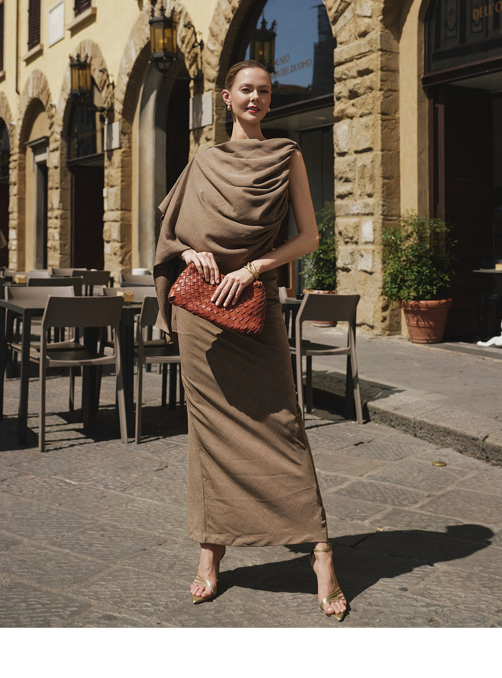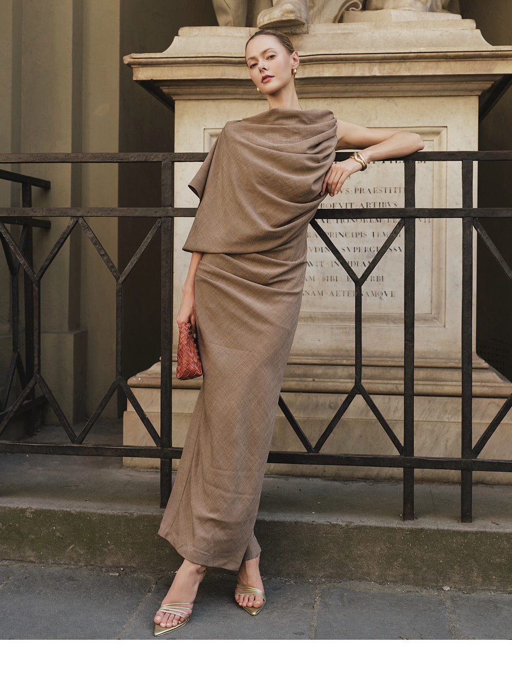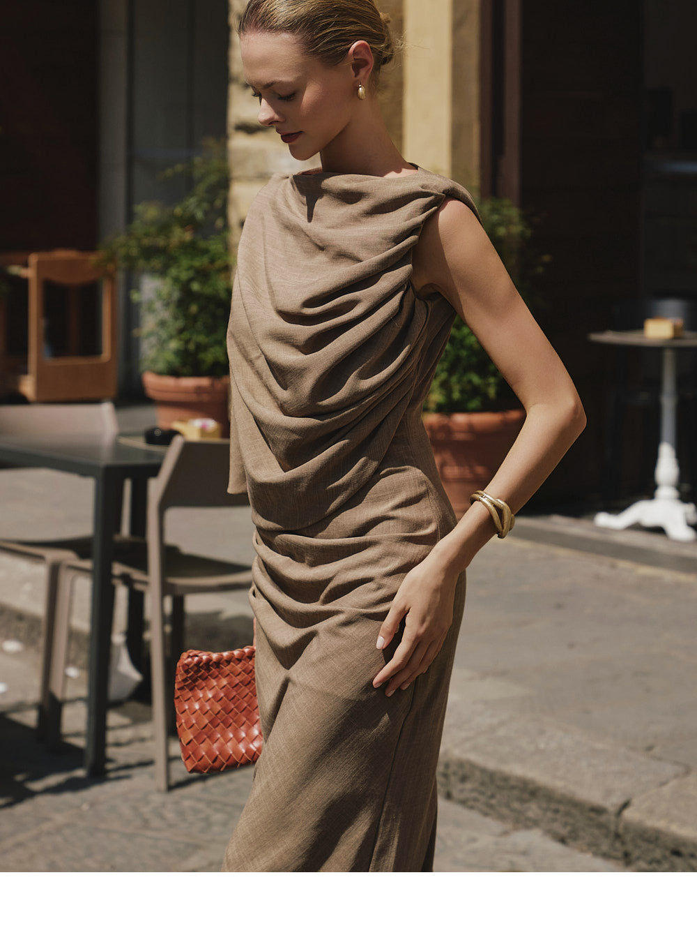 ドレープ感のあるドレスは洗練された雰囲気を醸し出します。