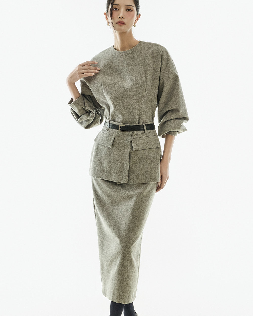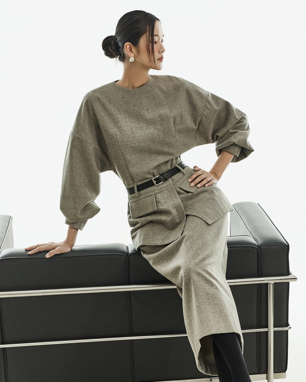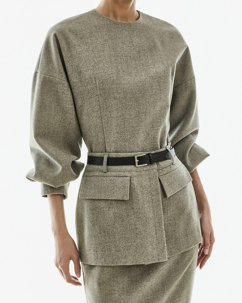 This modern-style belt set layered dress.
