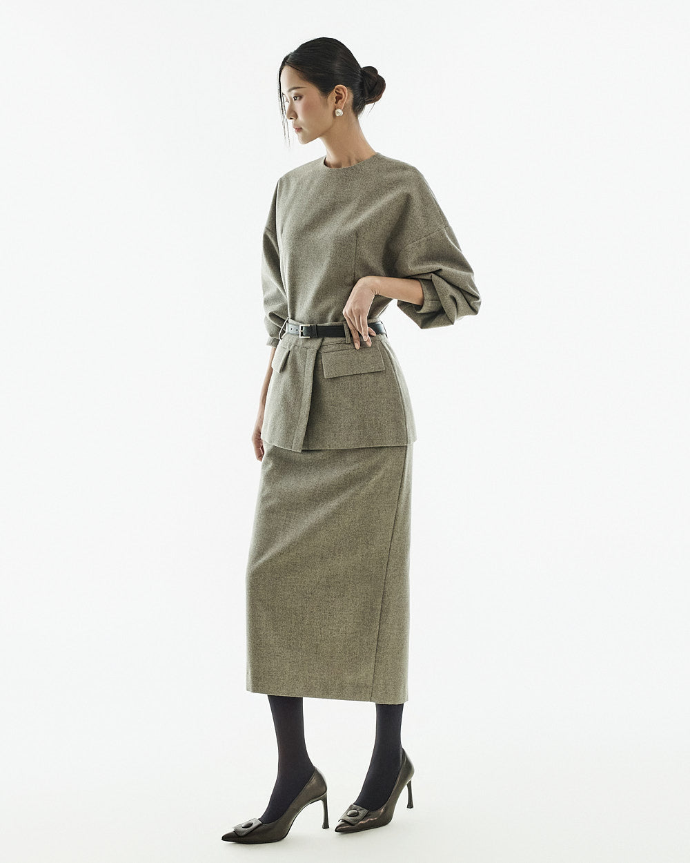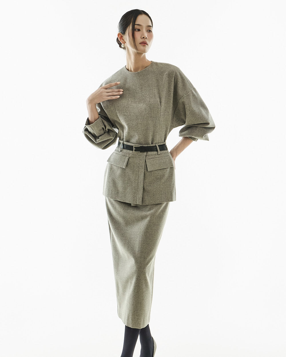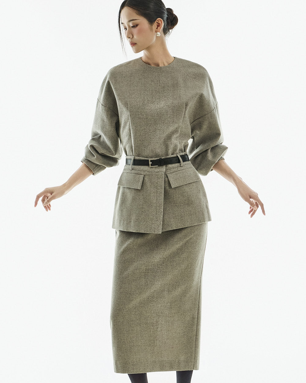 This modern-style belt set layered dress.